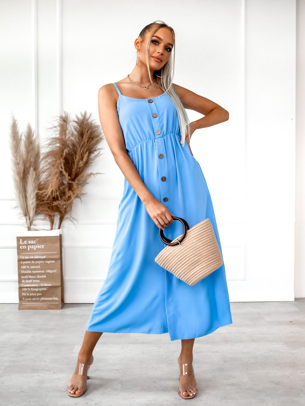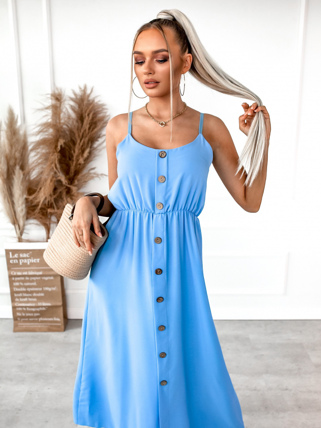 Světle modré dlouhé šaty GROOVES s knoflíky