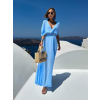 Světle modré elegantní šaty PARFOMELLE s výsřihem do V