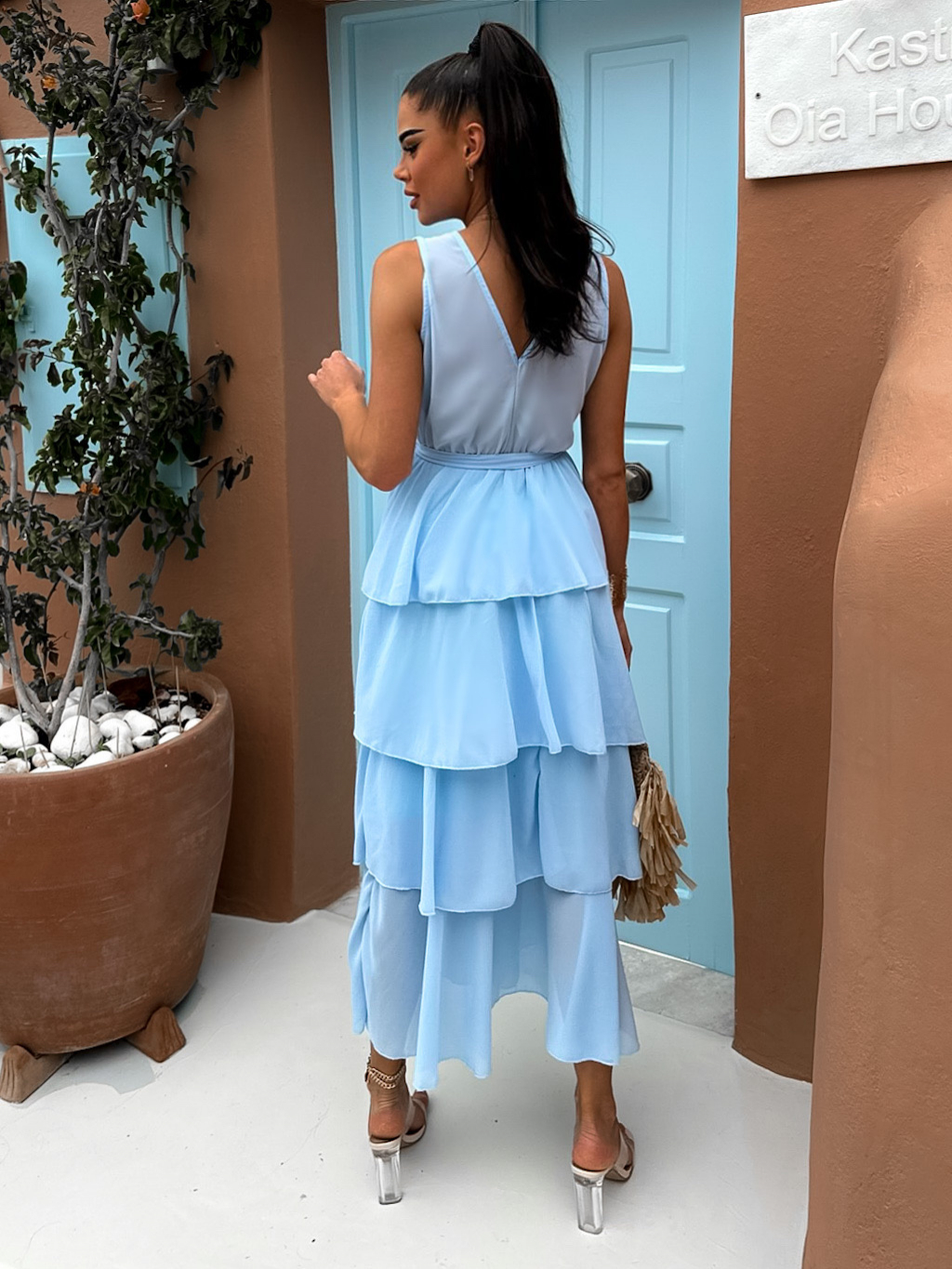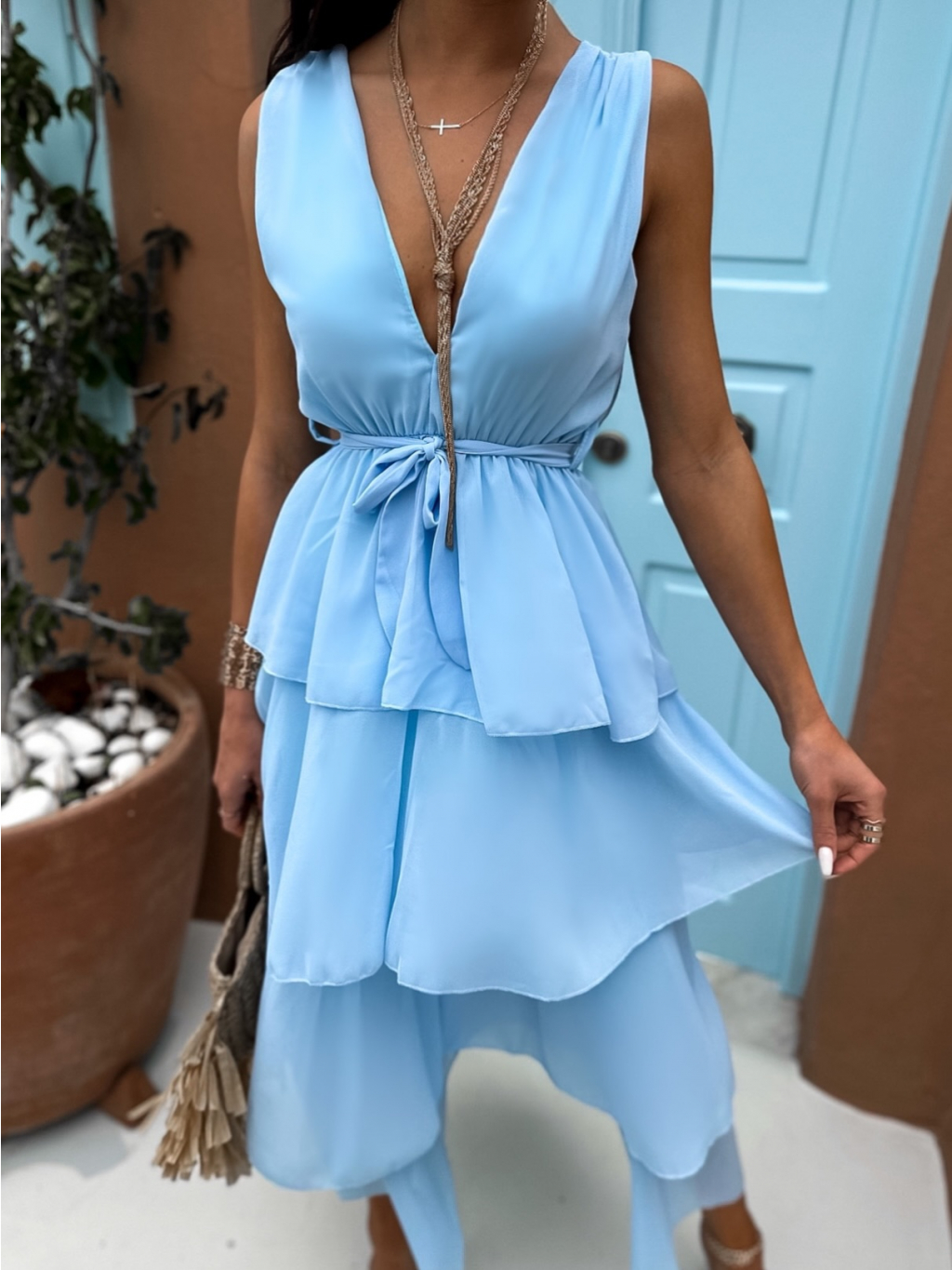 Světle modré elegantní šaty SUSANI s volánky