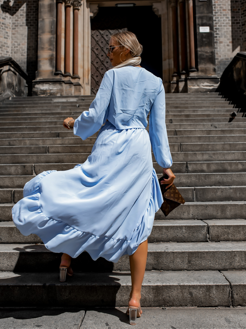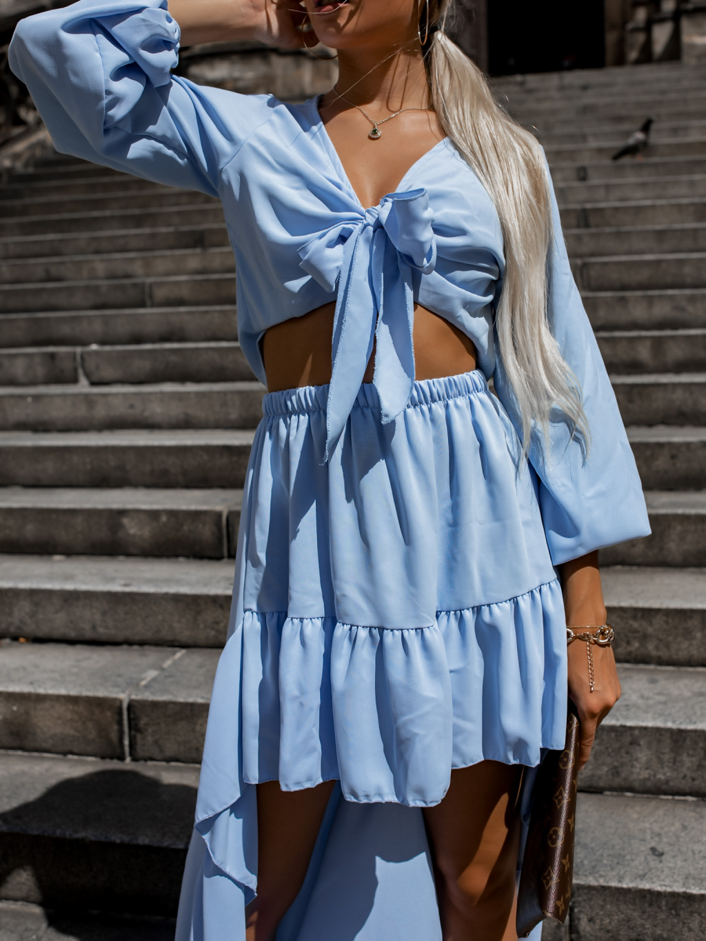 Světle modrý dvoudílný komplet GIANNA s volánky