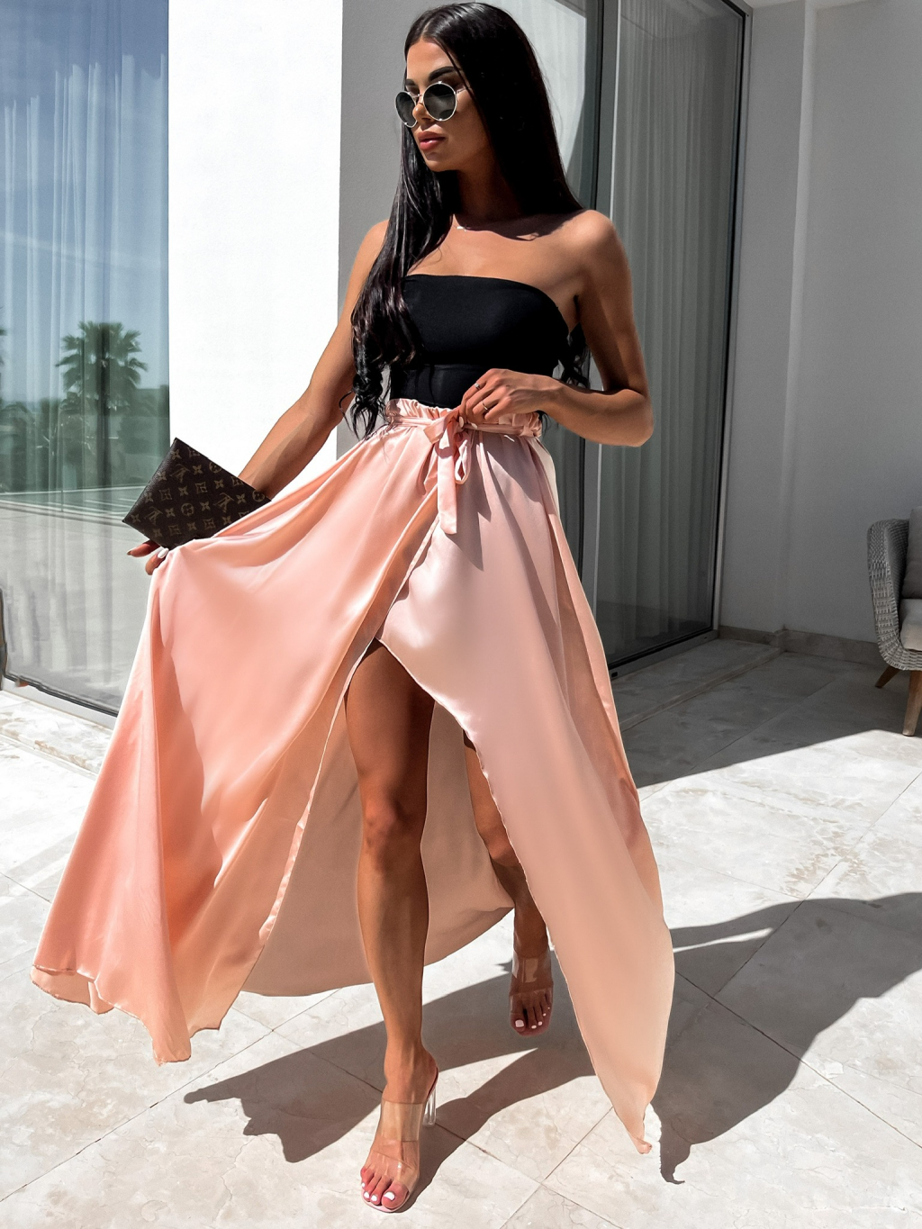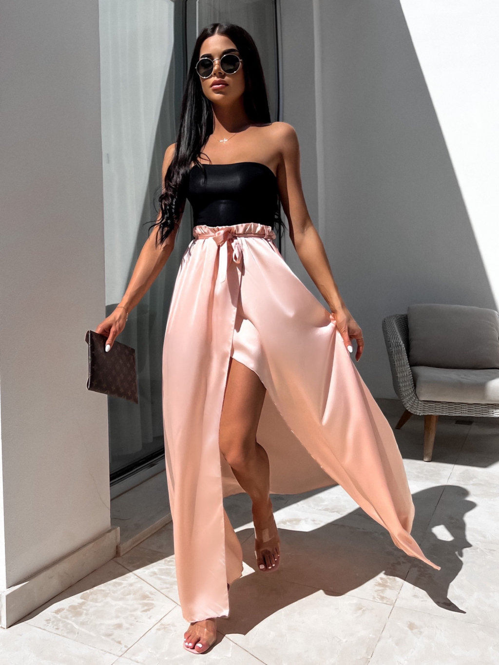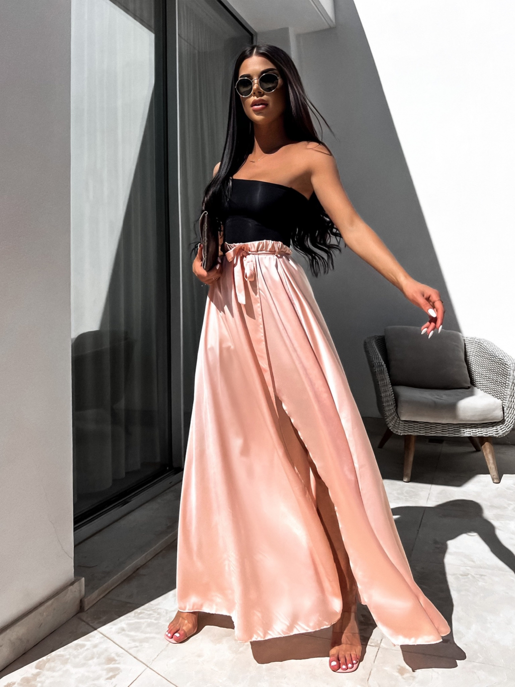 Světle růžová dlouhá sukně DENISE s rozparkem