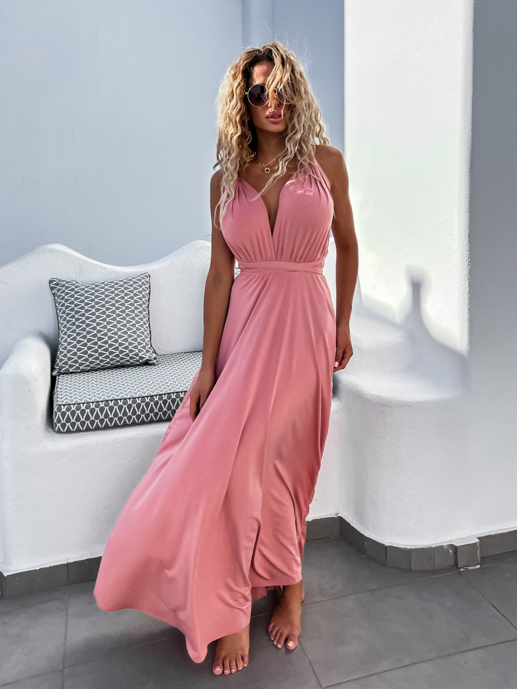 Světle růžové elegantní šaty BEATRICE s vázáním