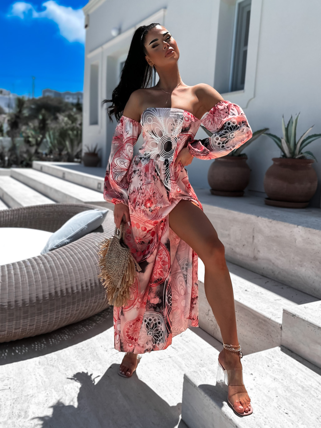 Světle růžové šaty LUBIS s dlouhým rukávem