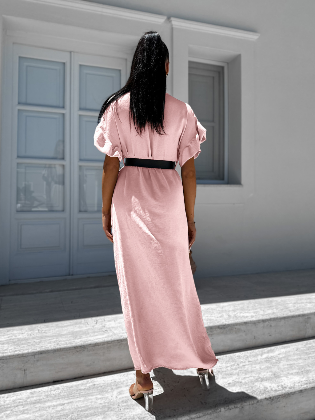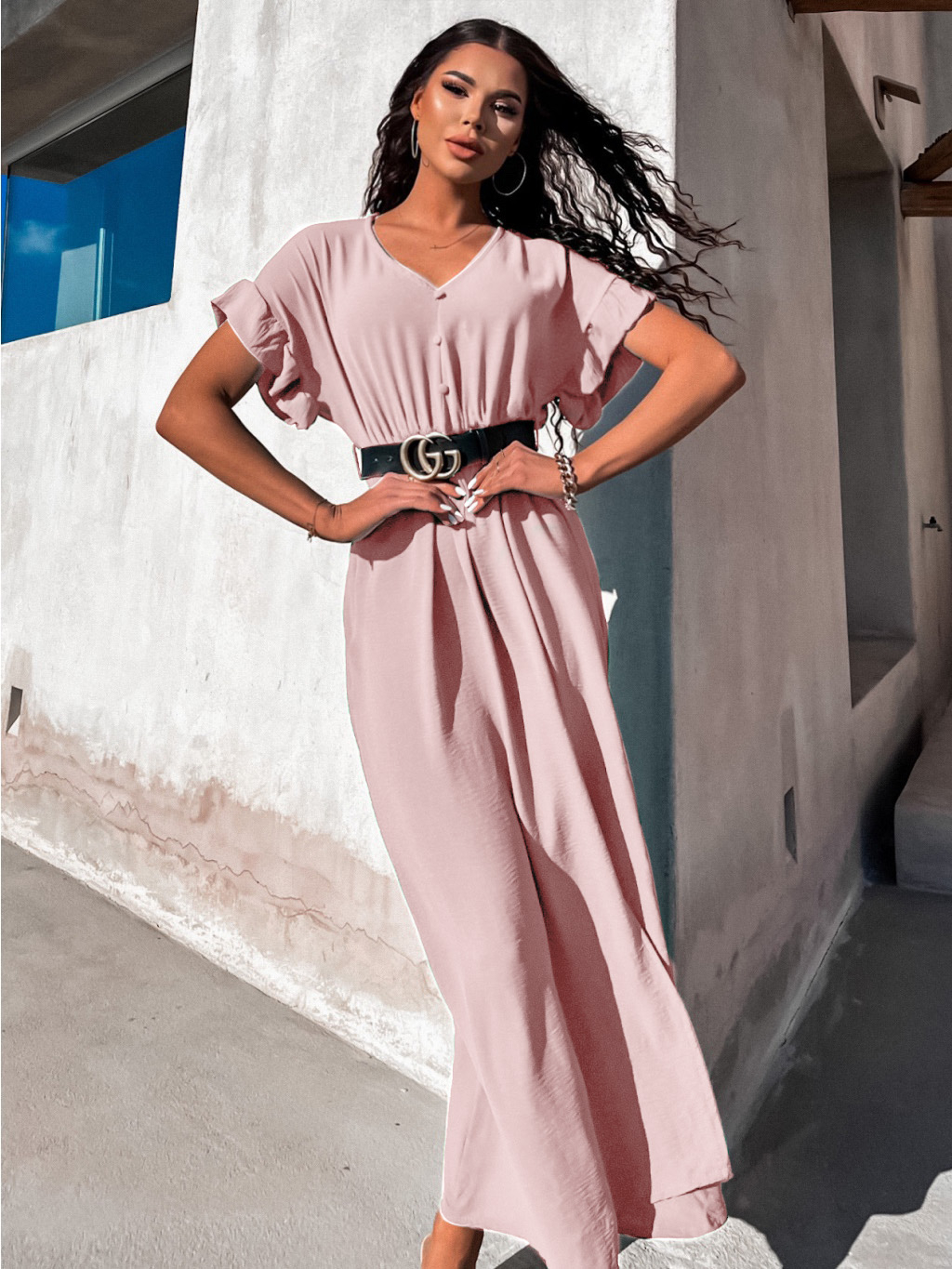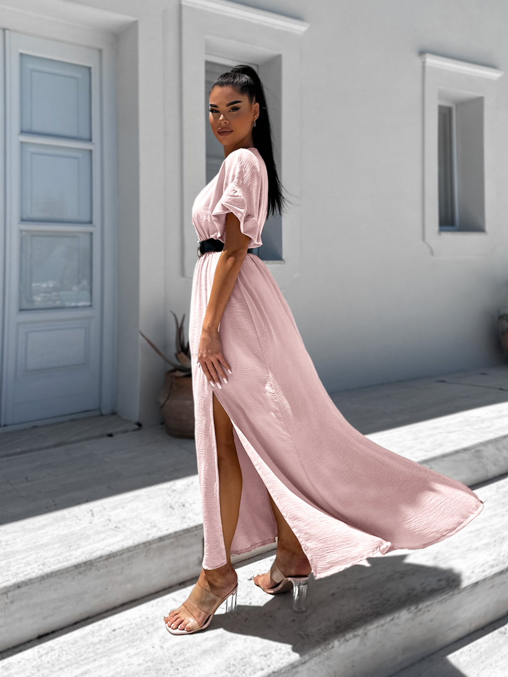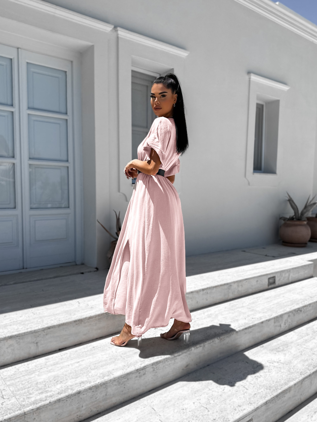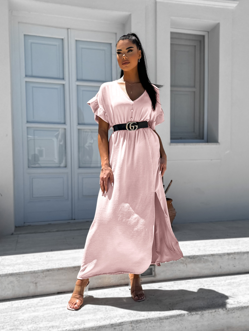 Světle růžové šaty STROLLY s rozparkem