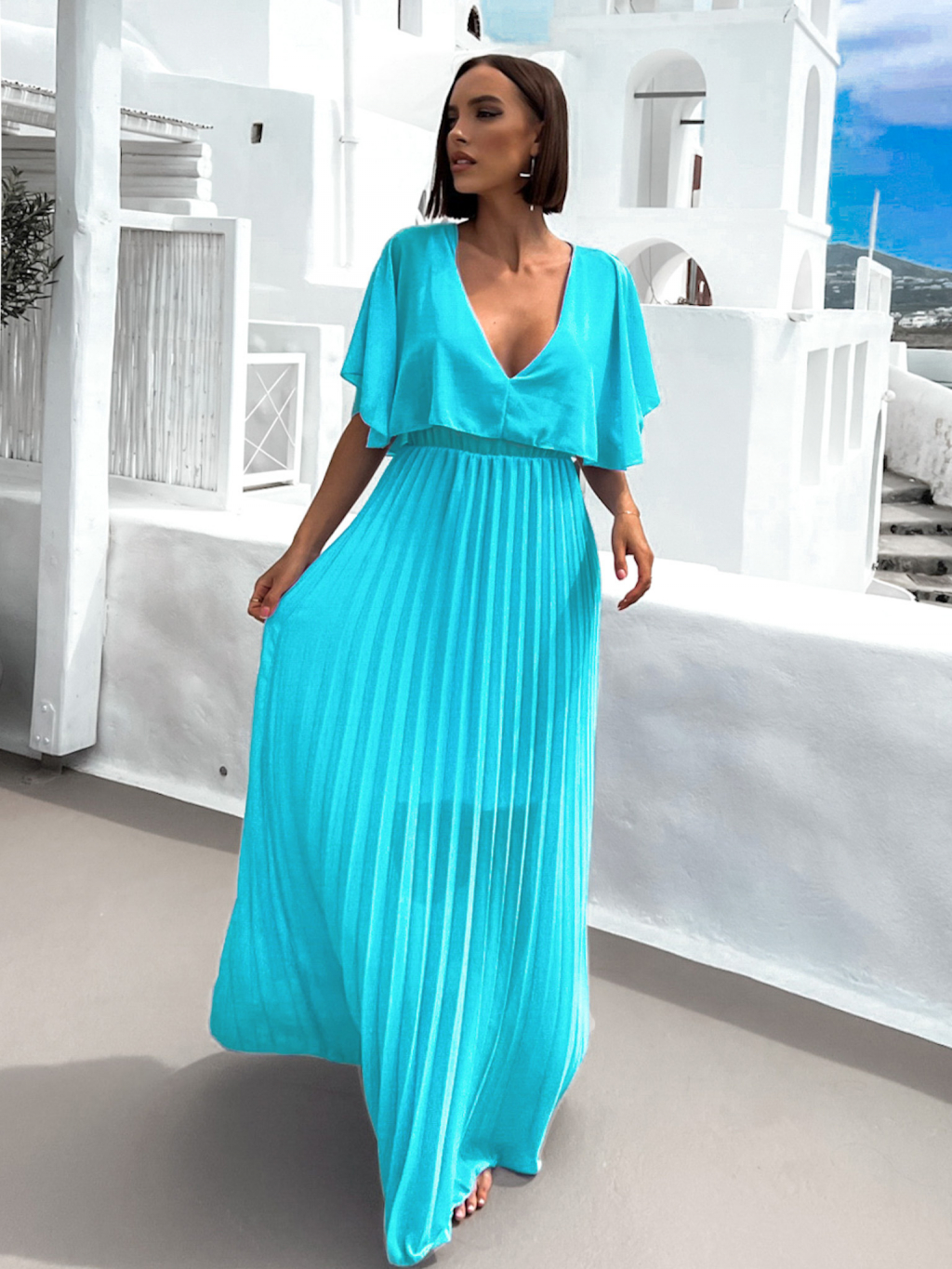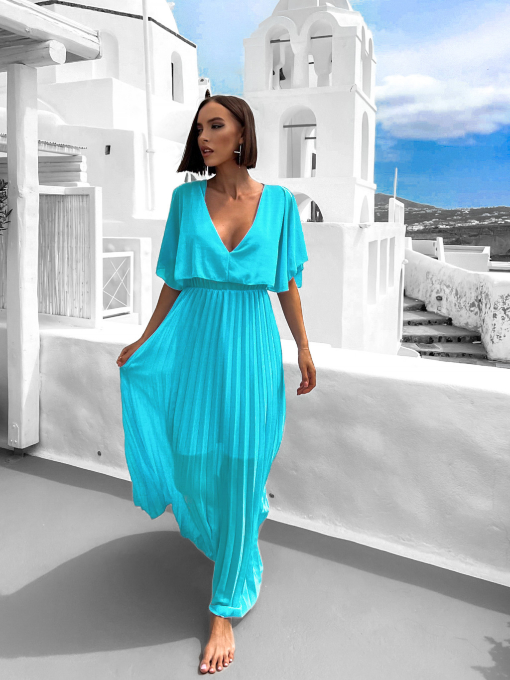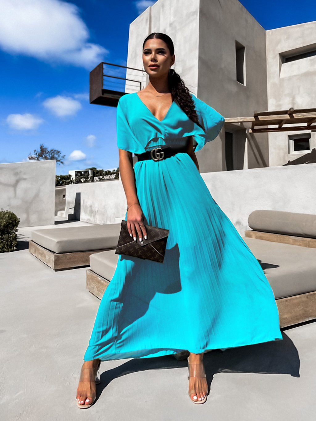 Světle tyrkysové elegantní šaty PARFOMELLE s výsřihem do V