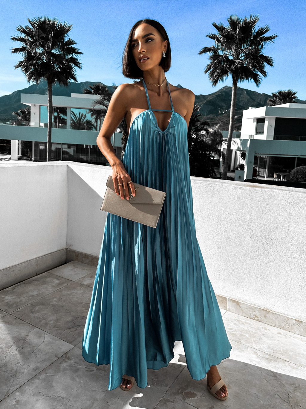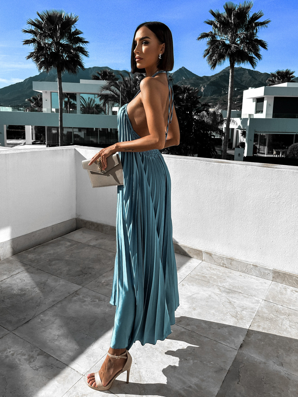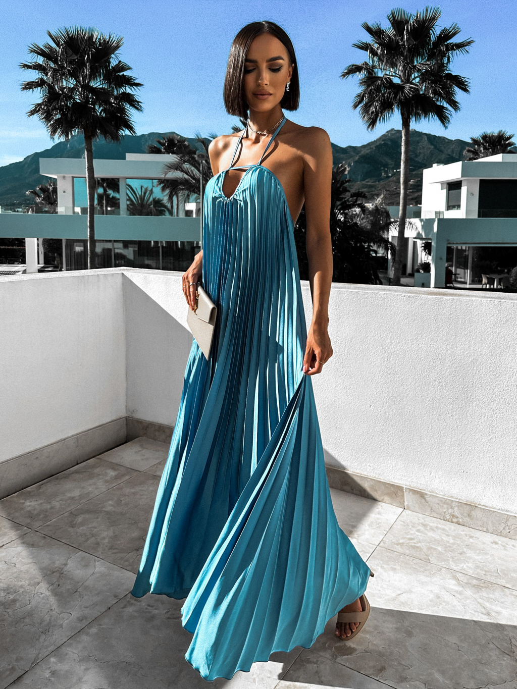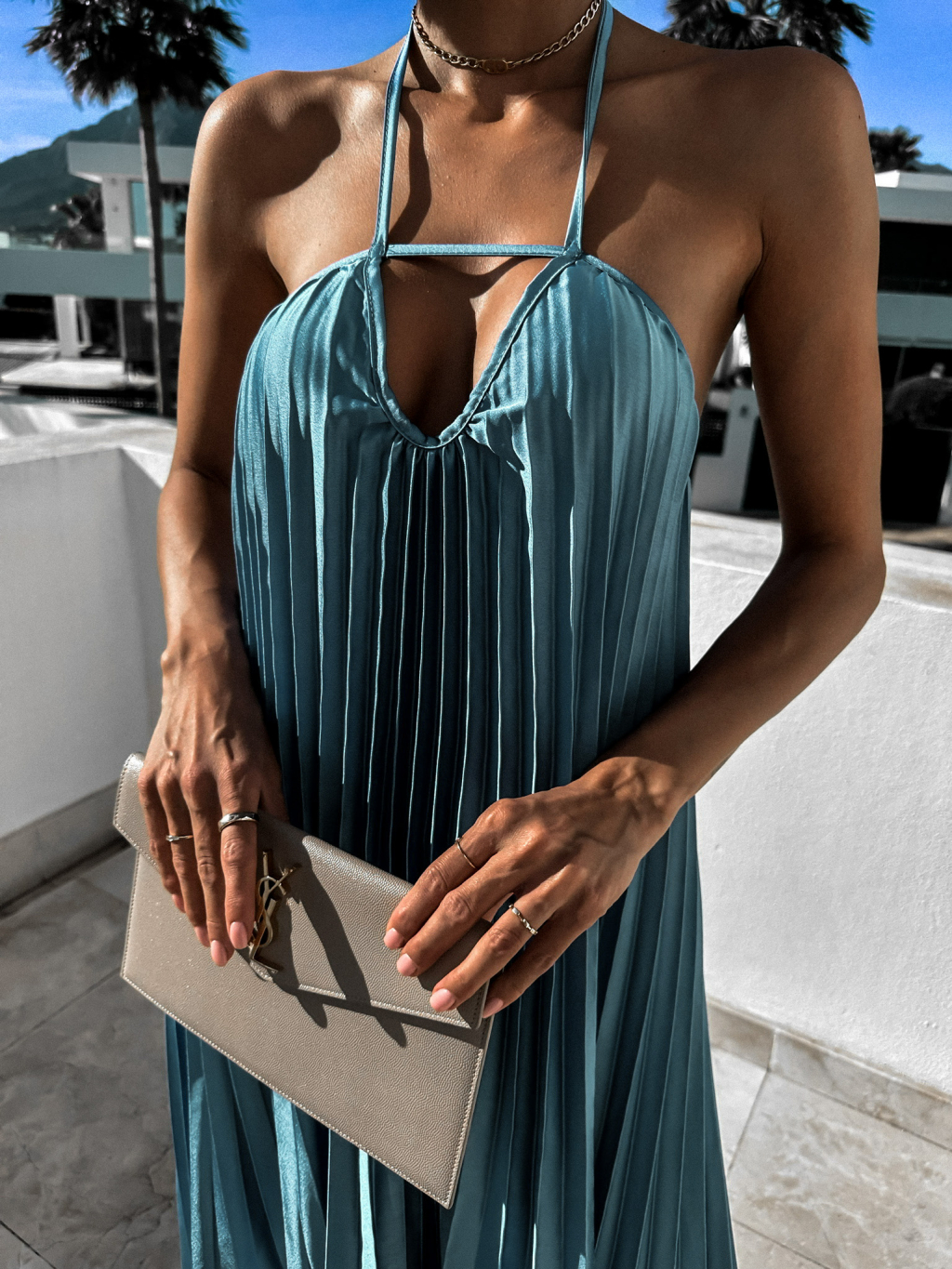 Světle tyrkysové lesklé elegantní šaty AUSTERE