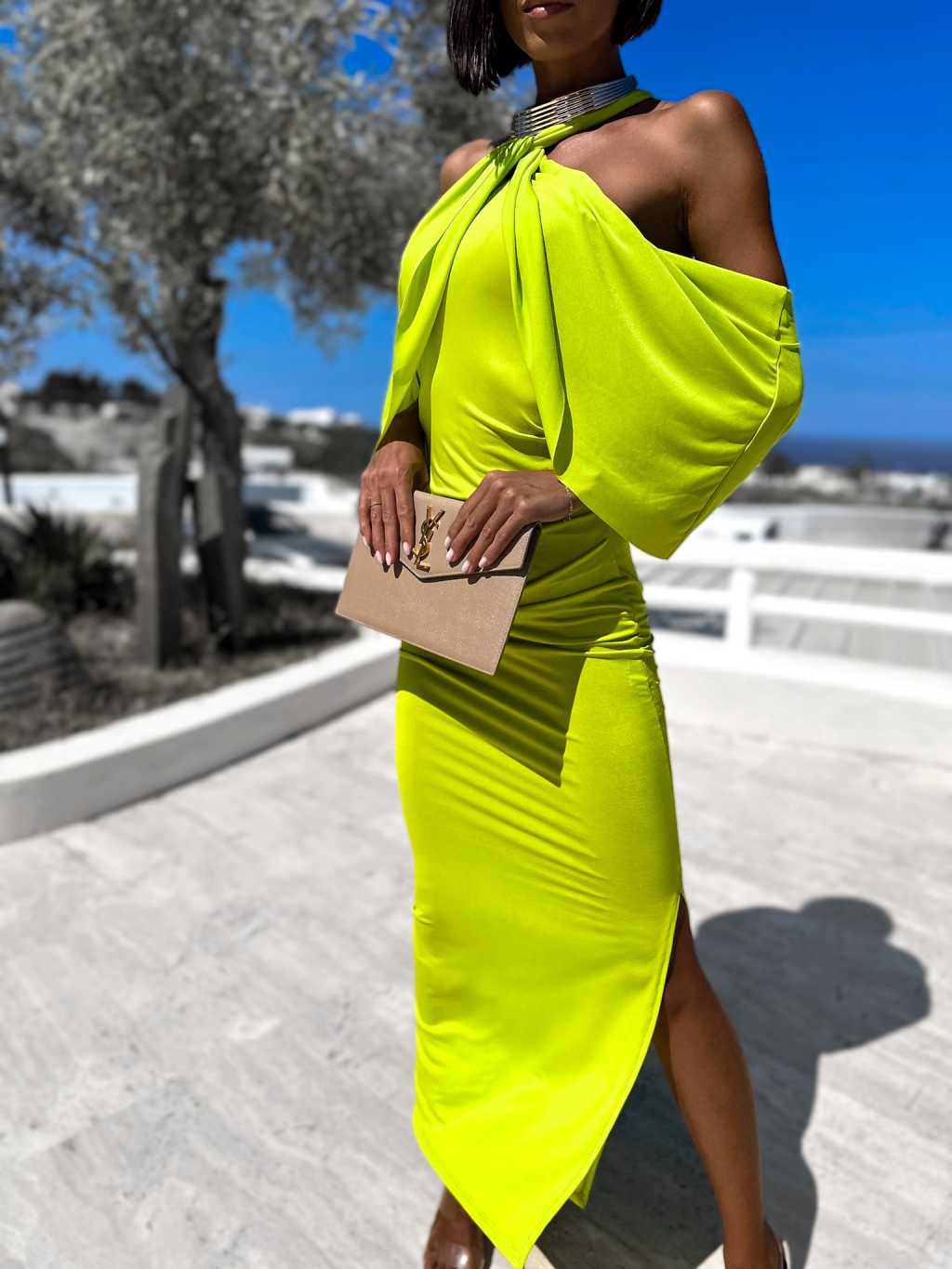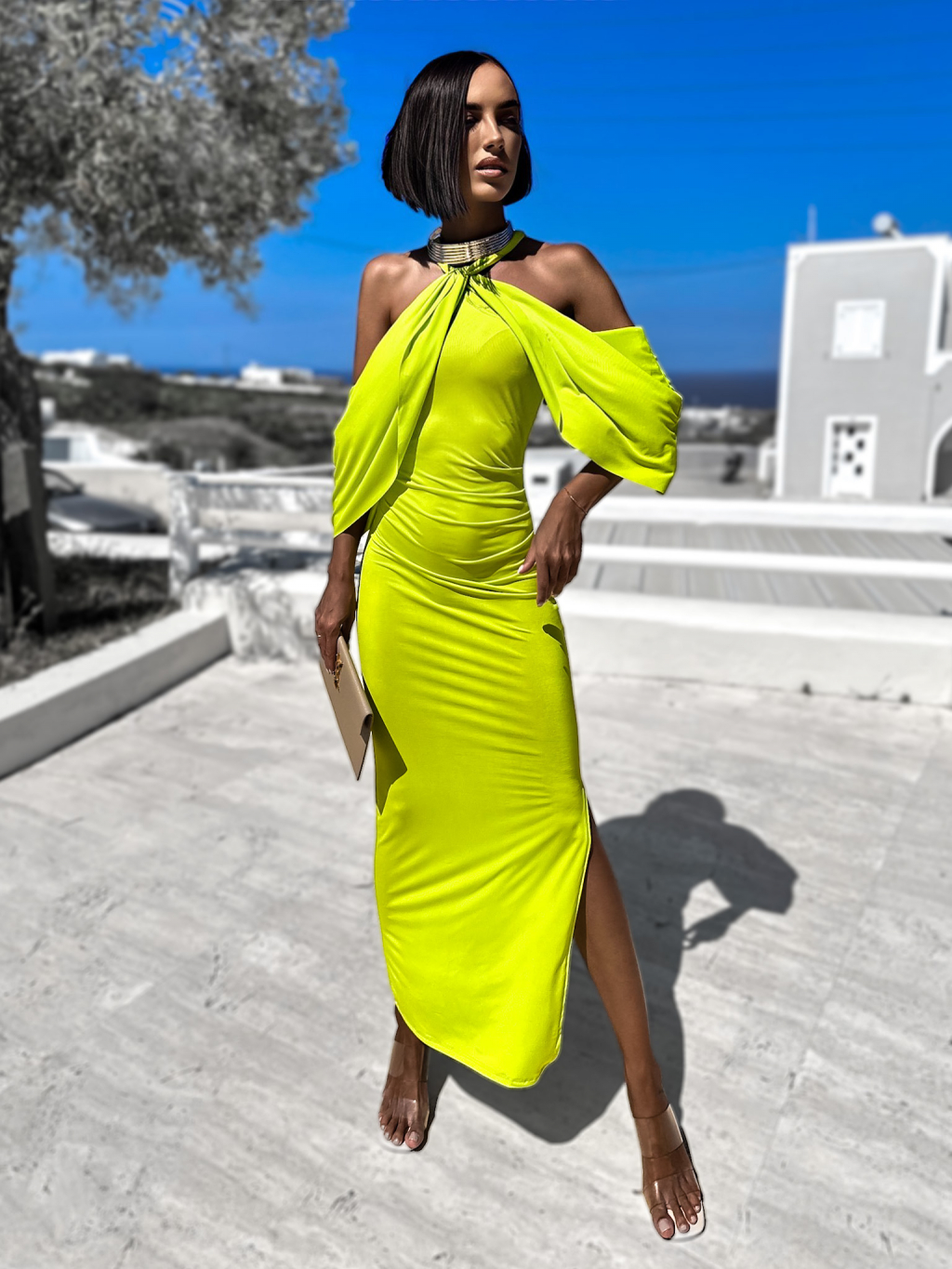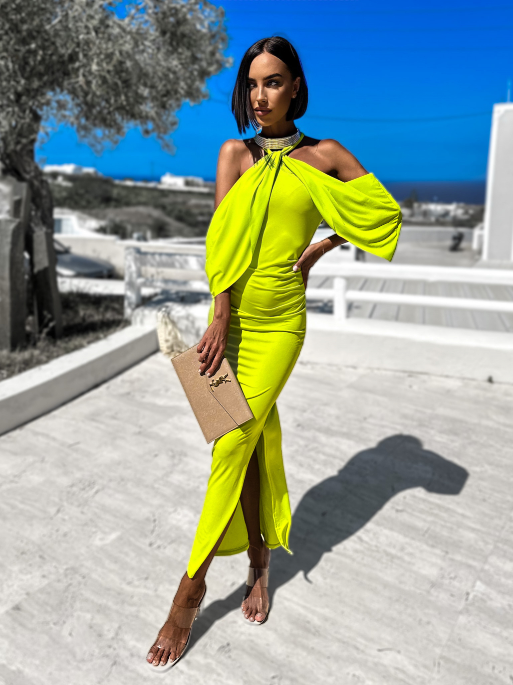 Světle zelené elegantní šaty LOYLENE s rozparkem