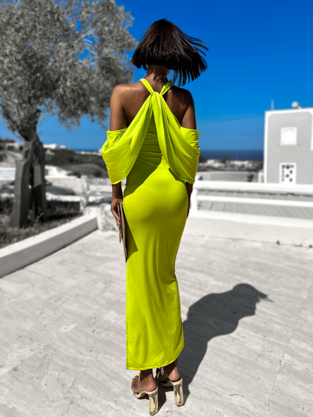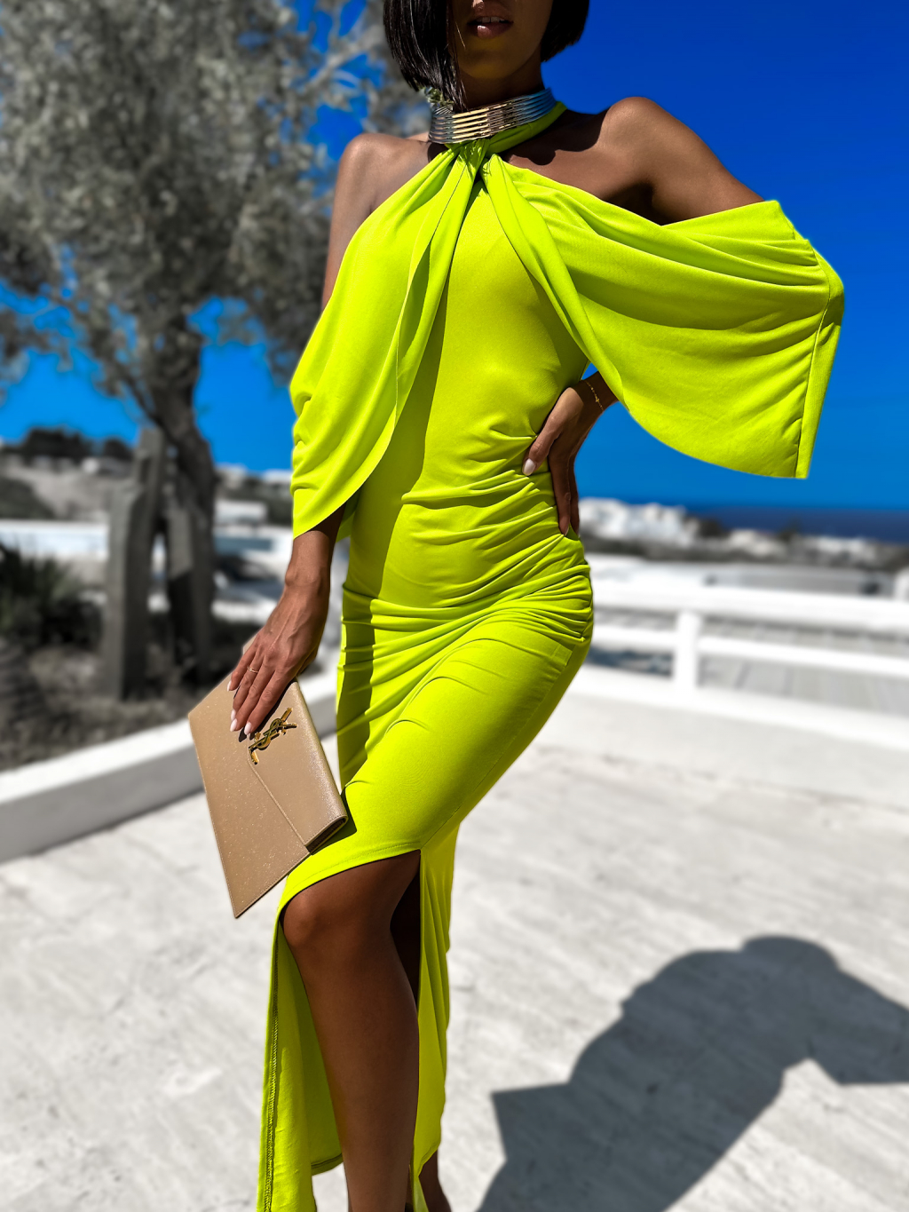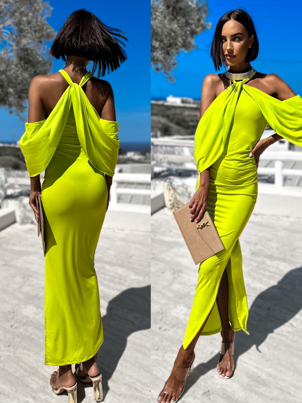 Světle zelené elegantní šaty LOYLENE s rozparkem