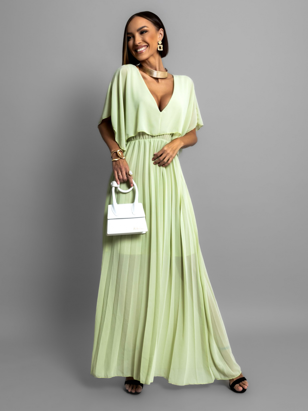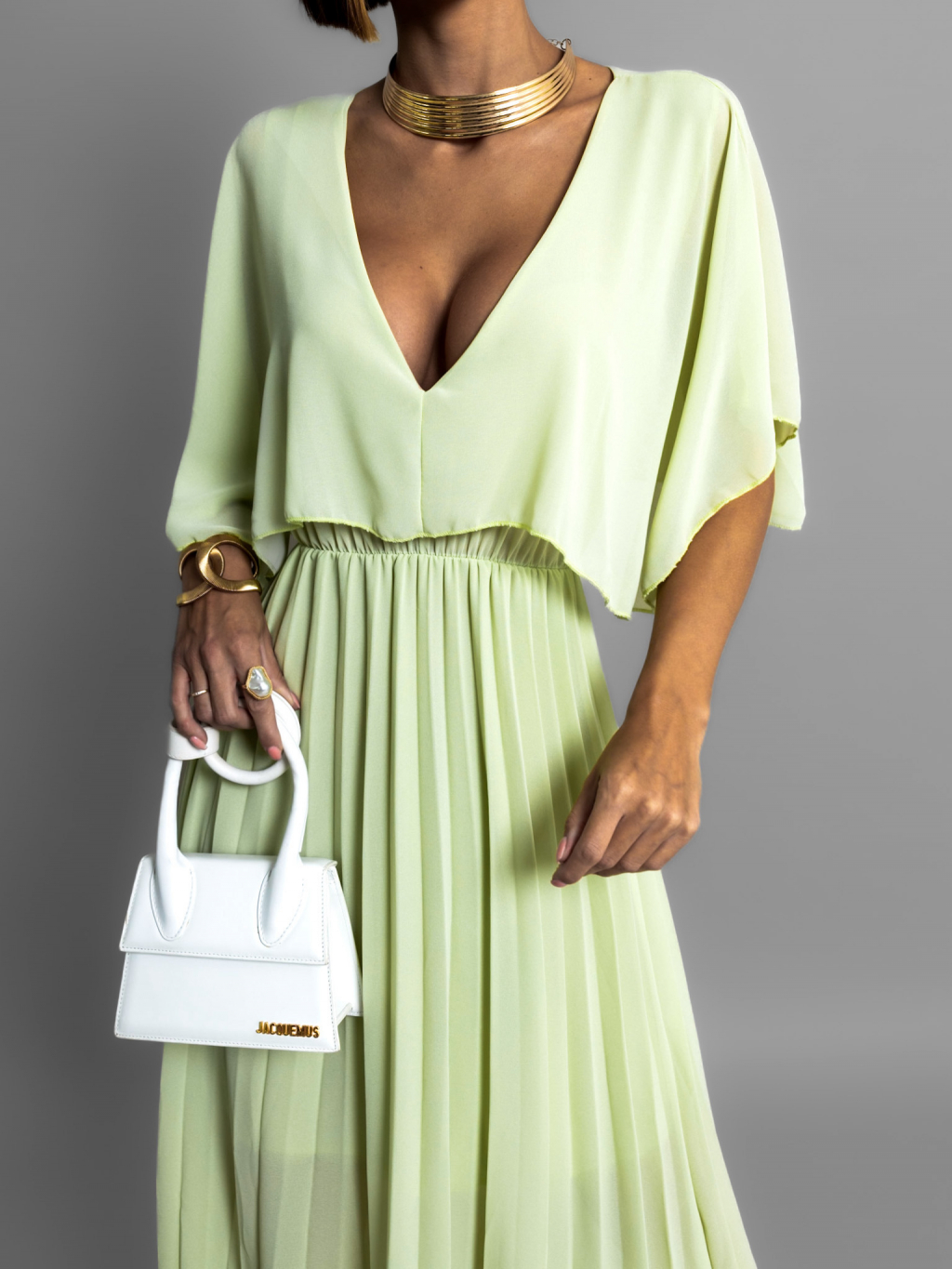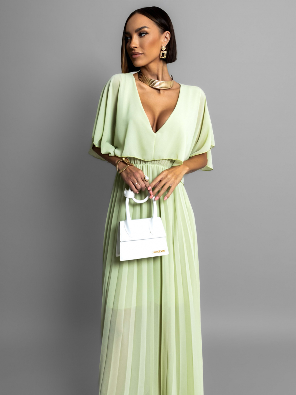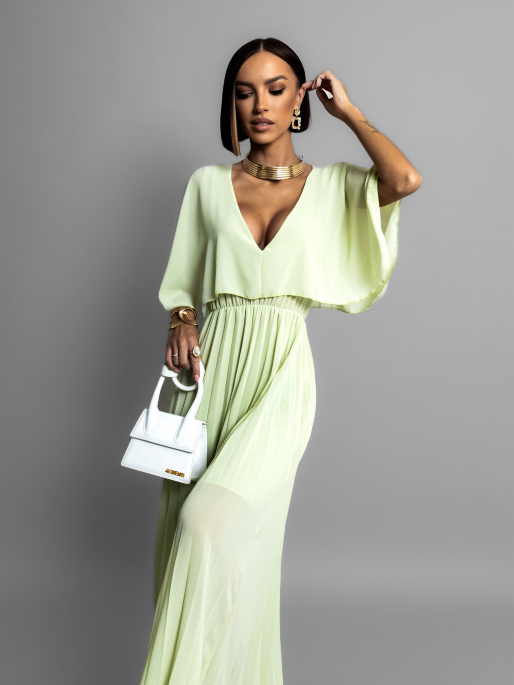 Světle zelené elegantní šaty PARFOMELLE s výsřihem do V