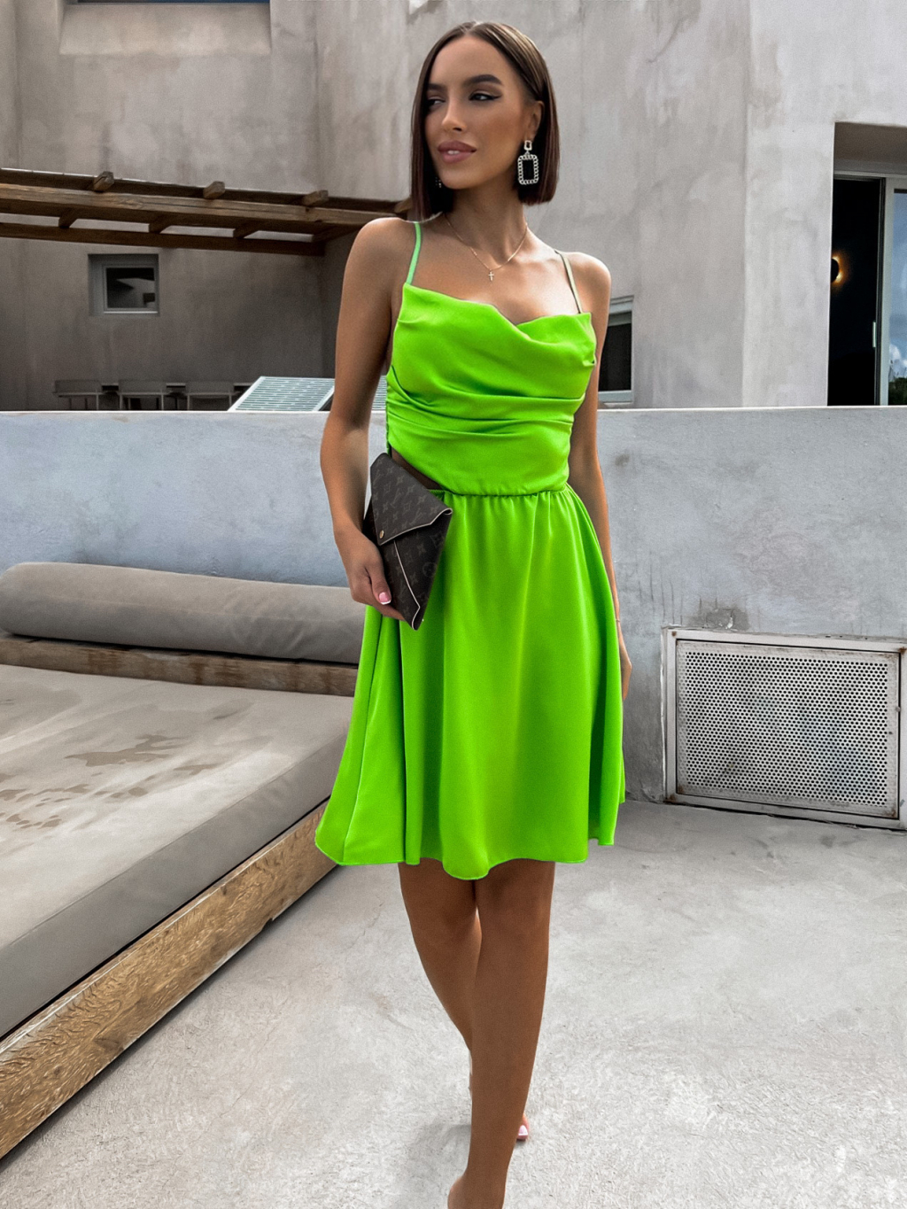 Světle zelené lesklé elegantní šaty JEWELRY s průstřihy