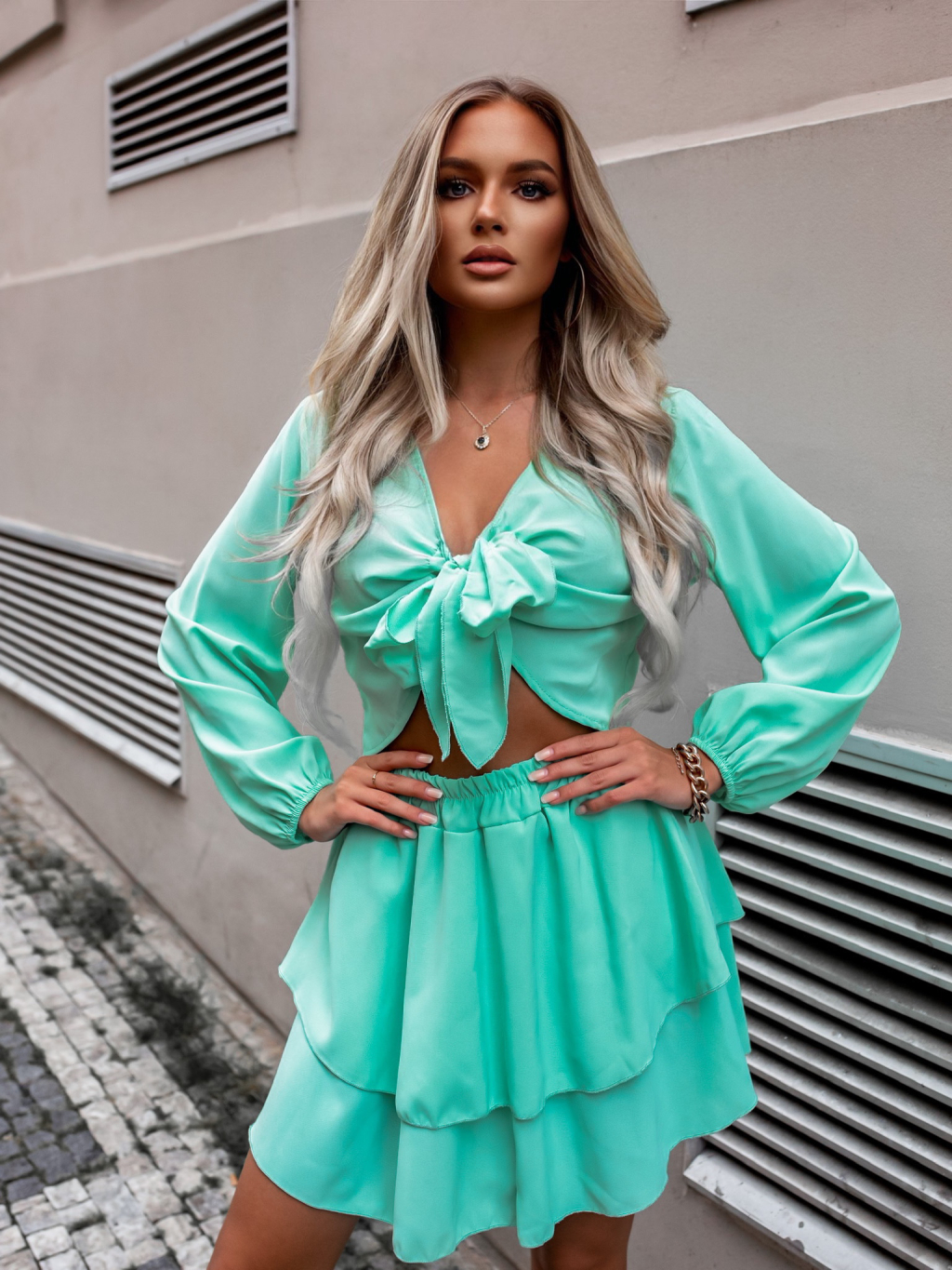 Světle zelený dvoudílný komplet TWELVE s vázáním