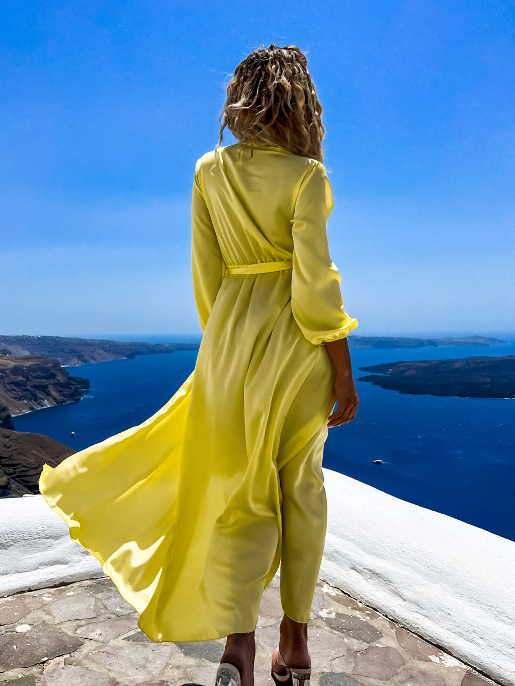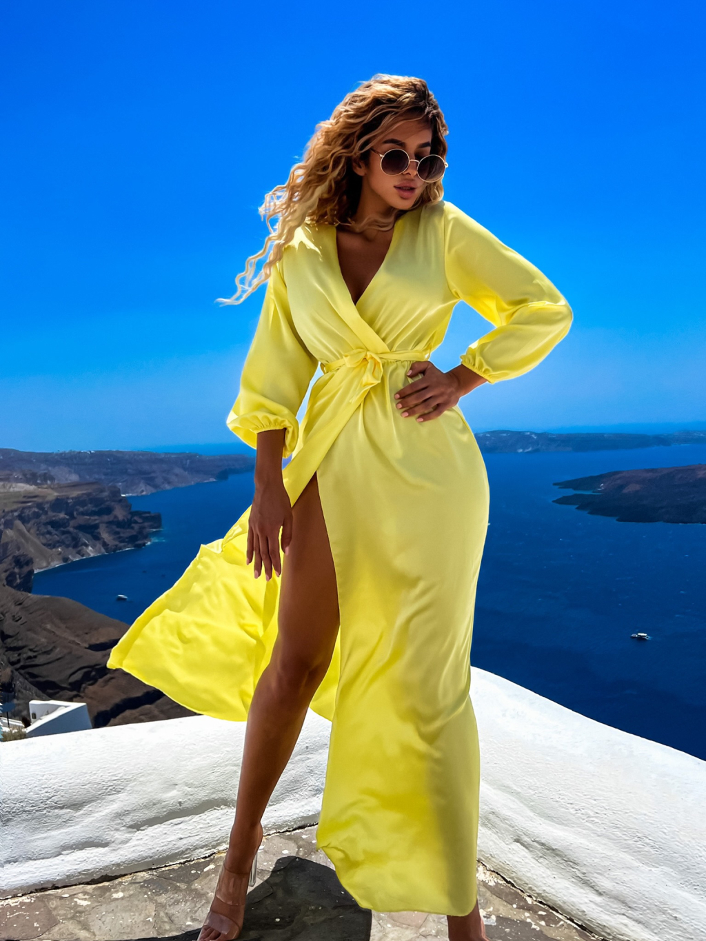 Elegantní saténové maxi šaty, které okouzlí svou lehkostí a ženskostí. Hladký lesklý materiál jemně splývá po postavě a vytváří luxusní efekt při každém kroku. Zavazování v pase krásně zvýrazní siluetu a dodá modelu sofistikovaný nádech. Výrazný rozparek na sukni působí svůdně a zároveň zajišťuje maximální pohodlí a volnost pohybu. Perfektní volba pro společenské události, večírky či slavnostní příležitosti.