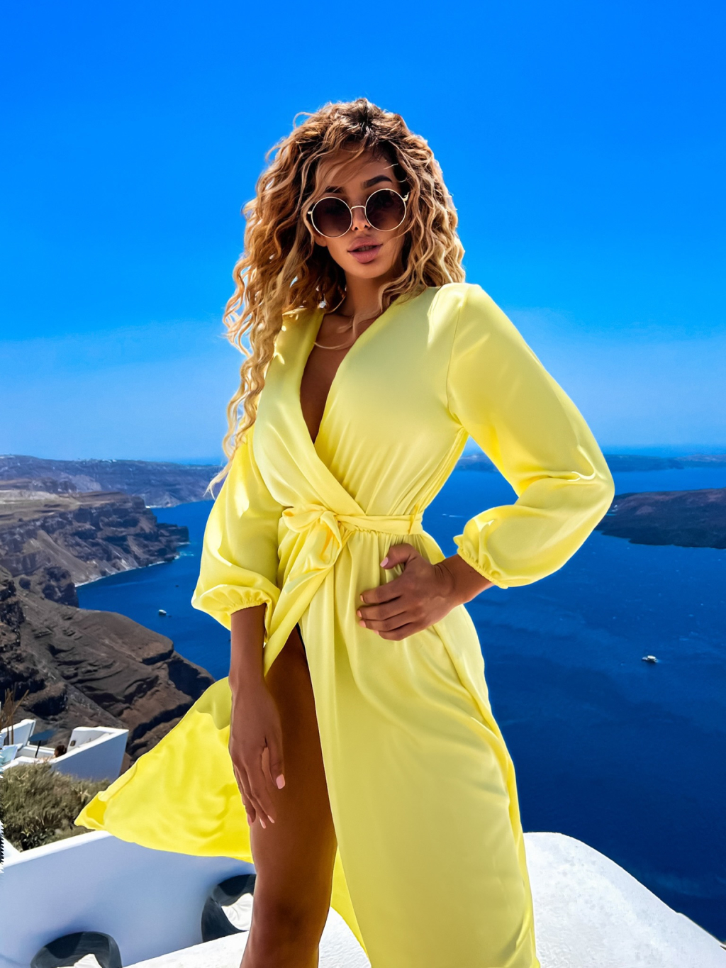 Světle žluté elegantní šaty WOMAN s dlouhým rukávem