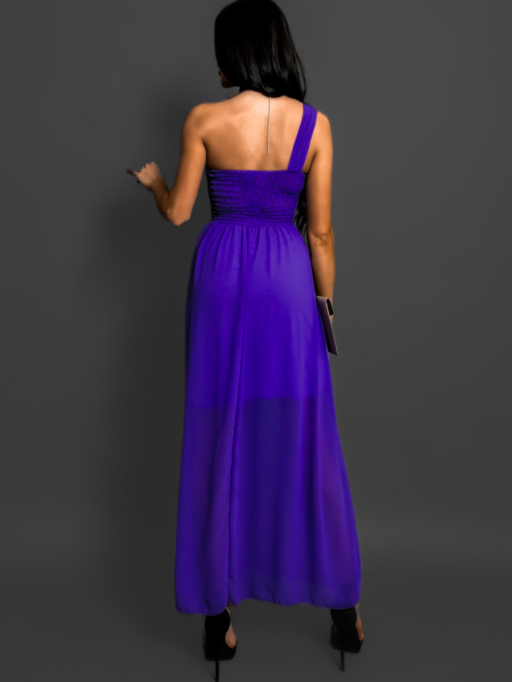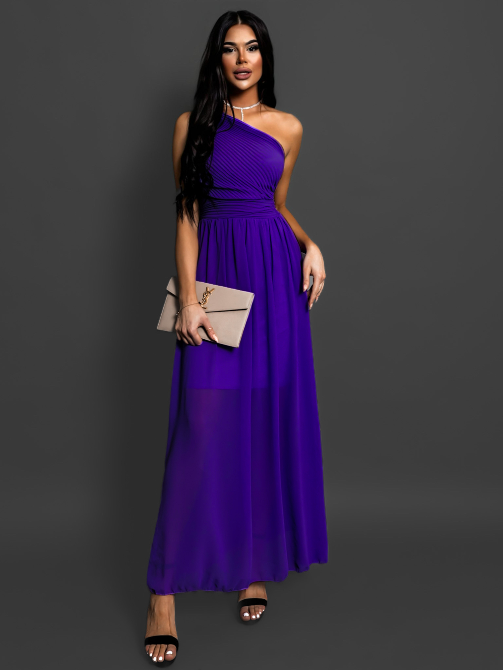 Tmavě fialové společenské dlouhé šaty FLOAT