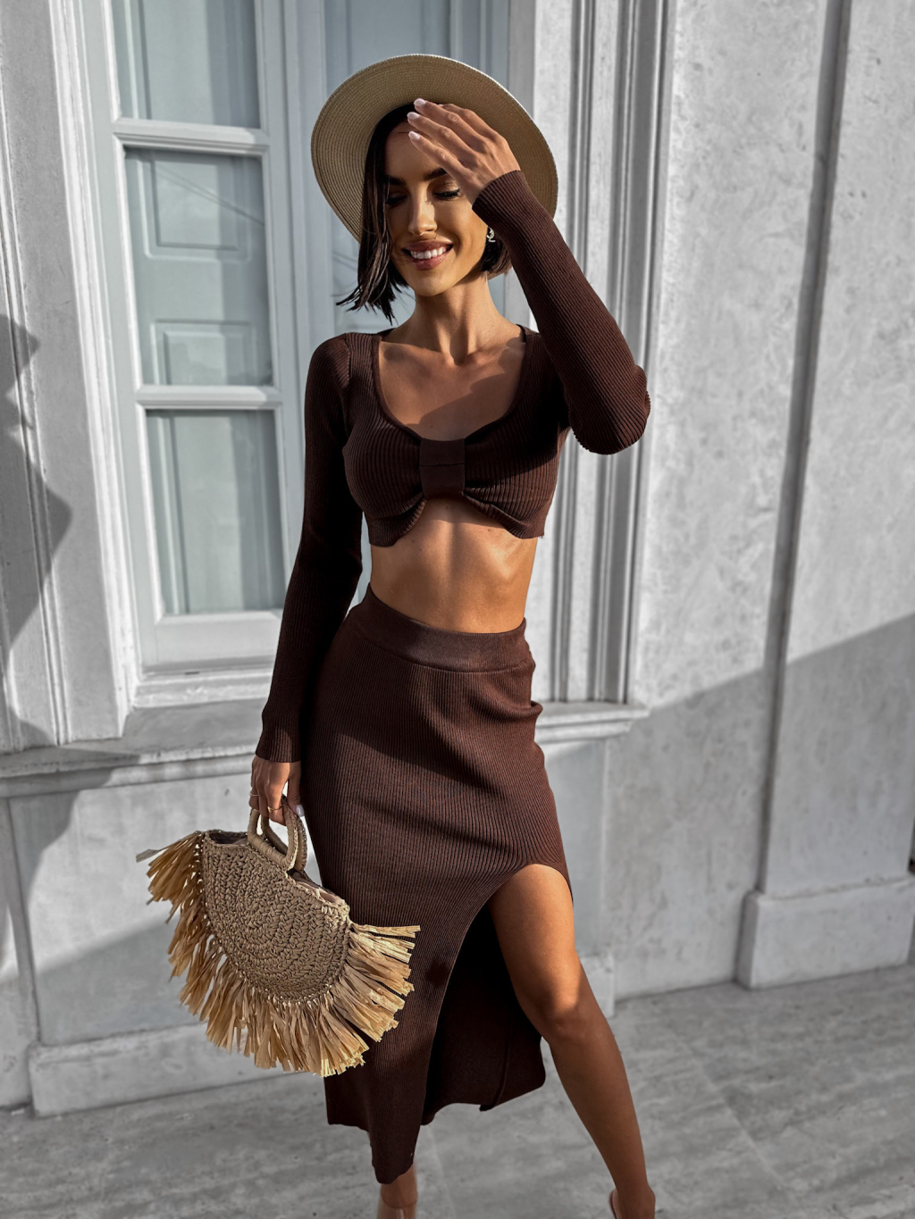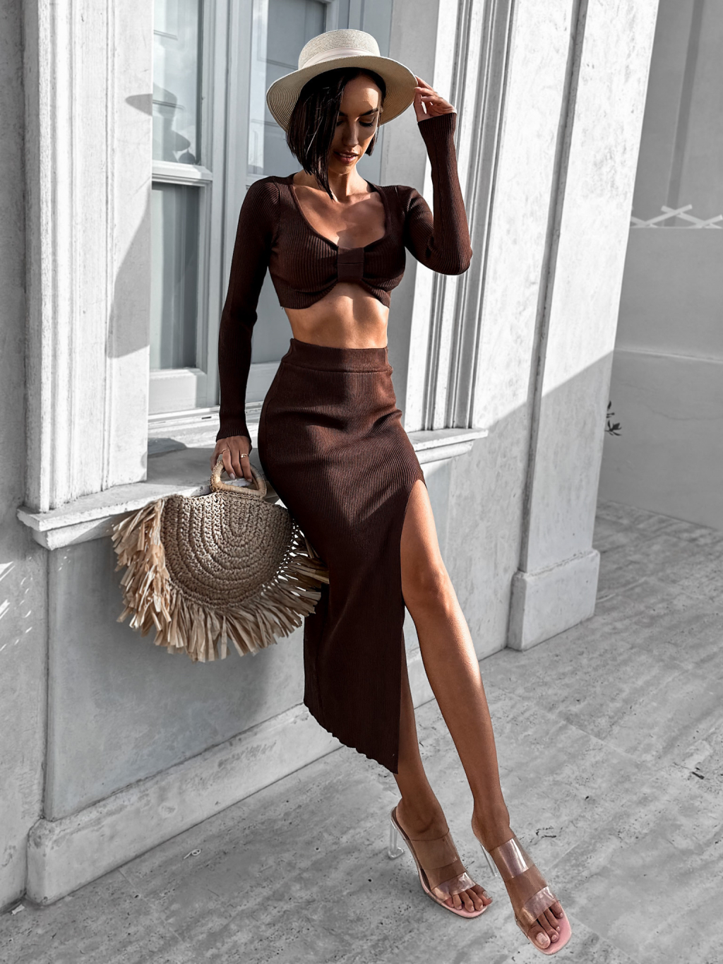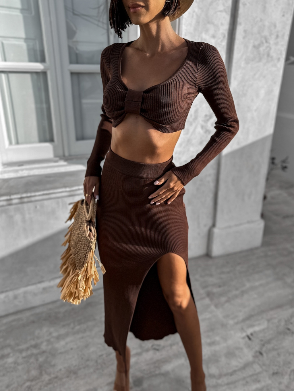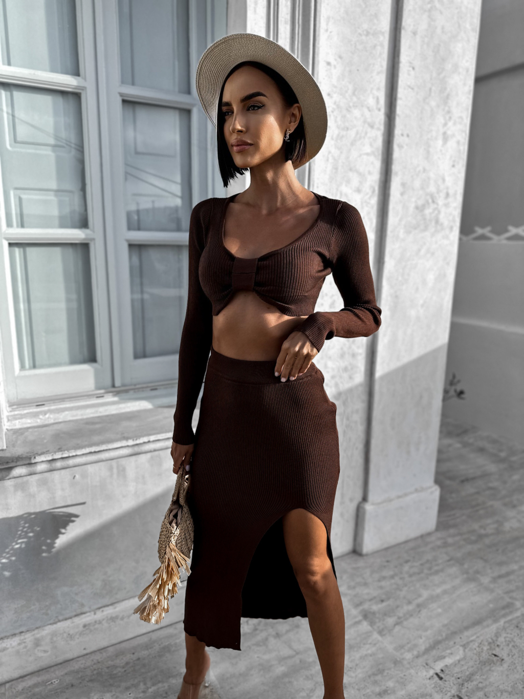 Tmavě hnědý dvoudílný komplet LAWENETY