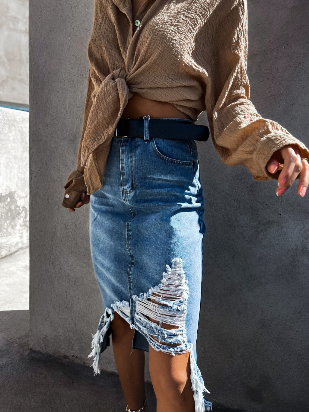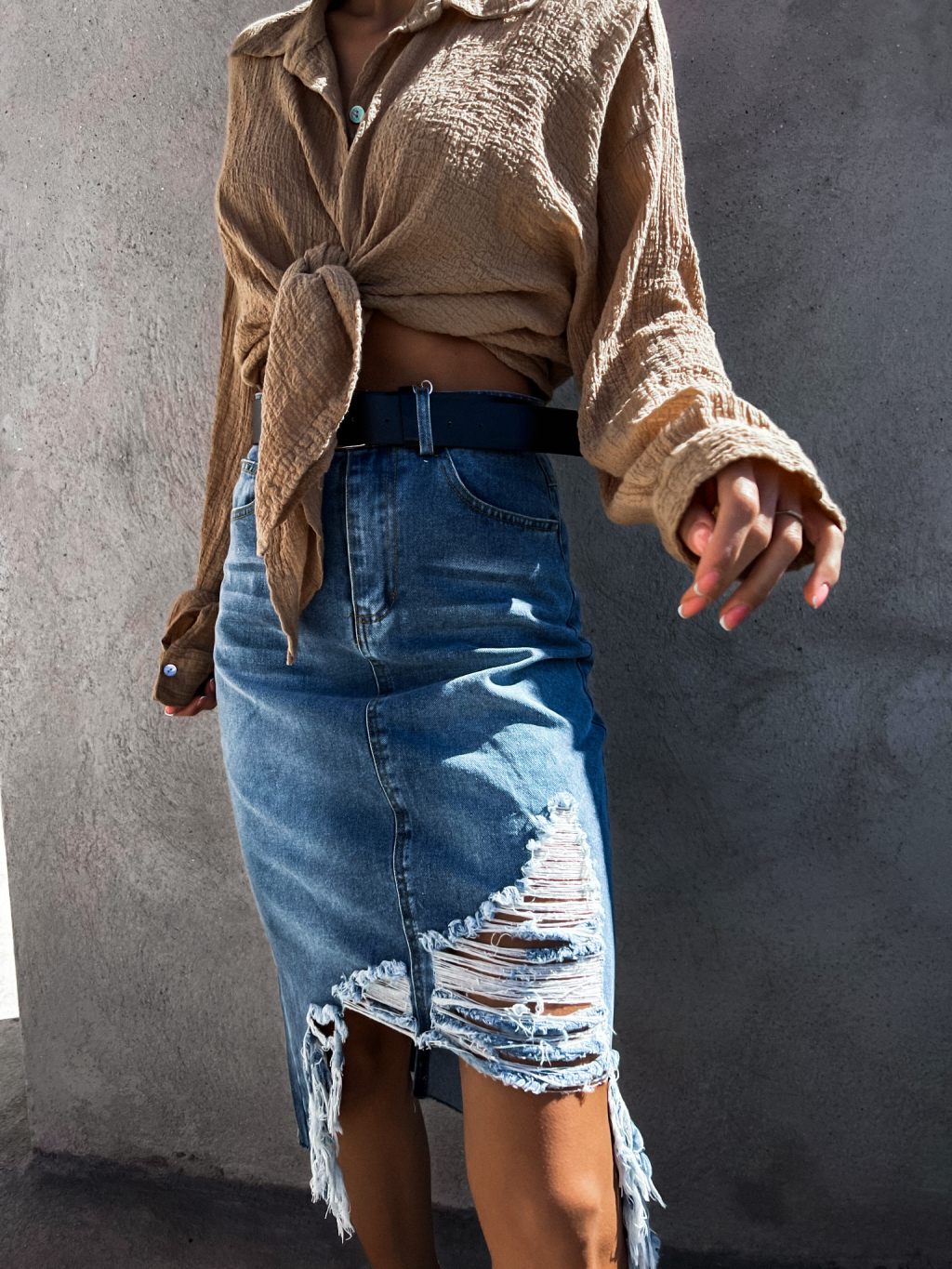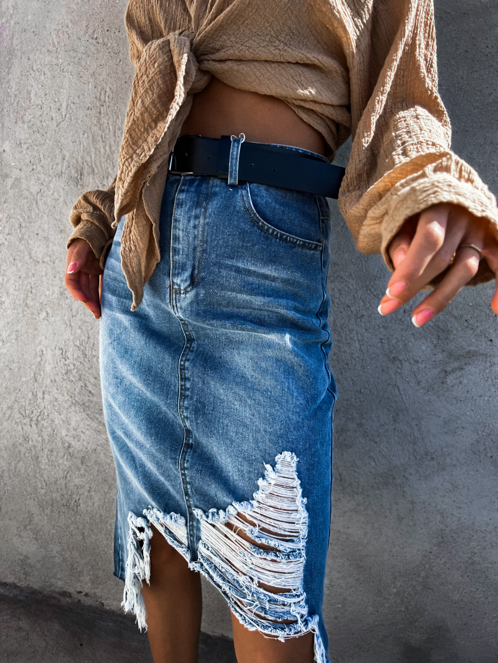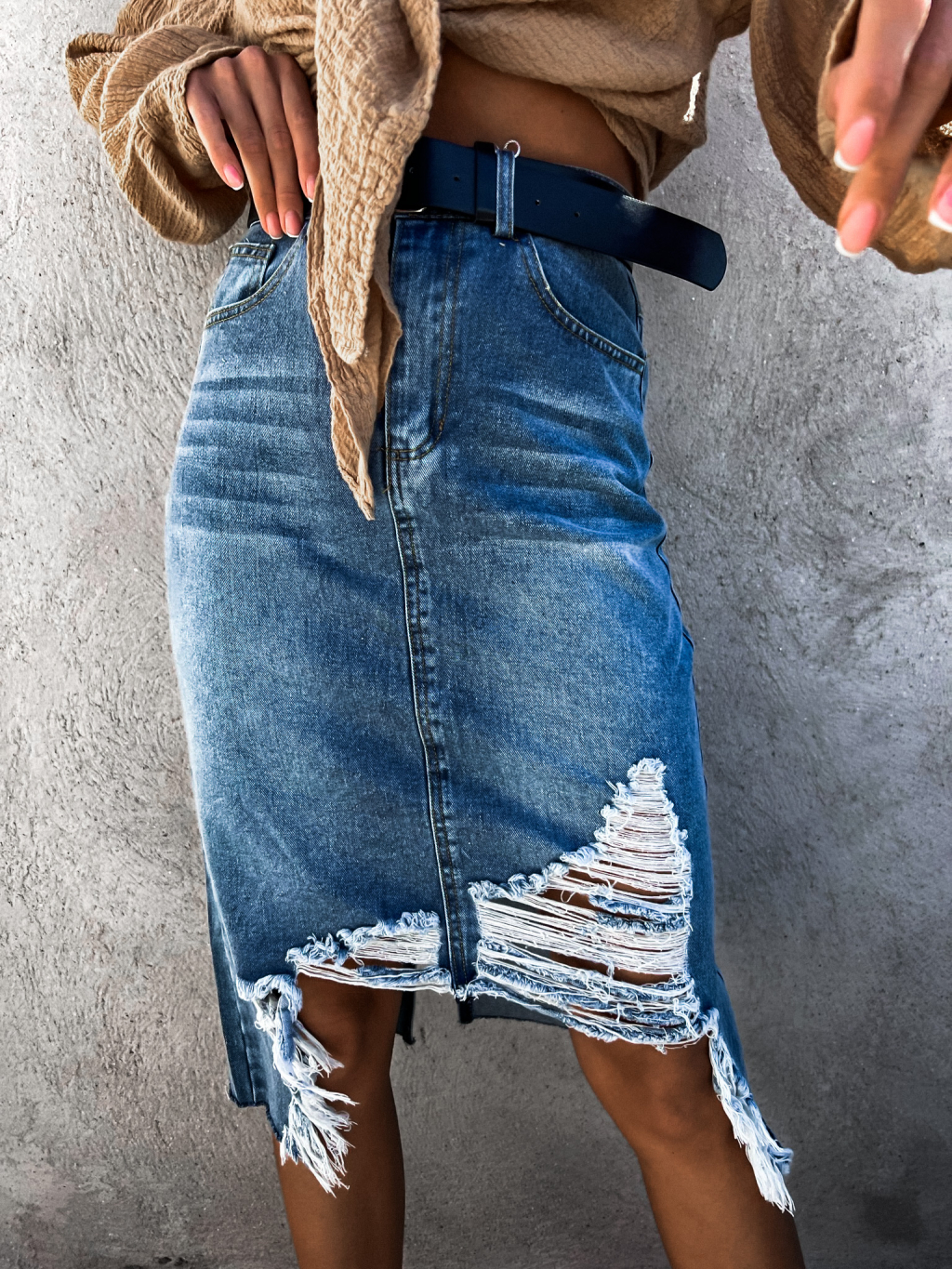 Tmavě modrá potrhaná džínová sukně ADRIENA