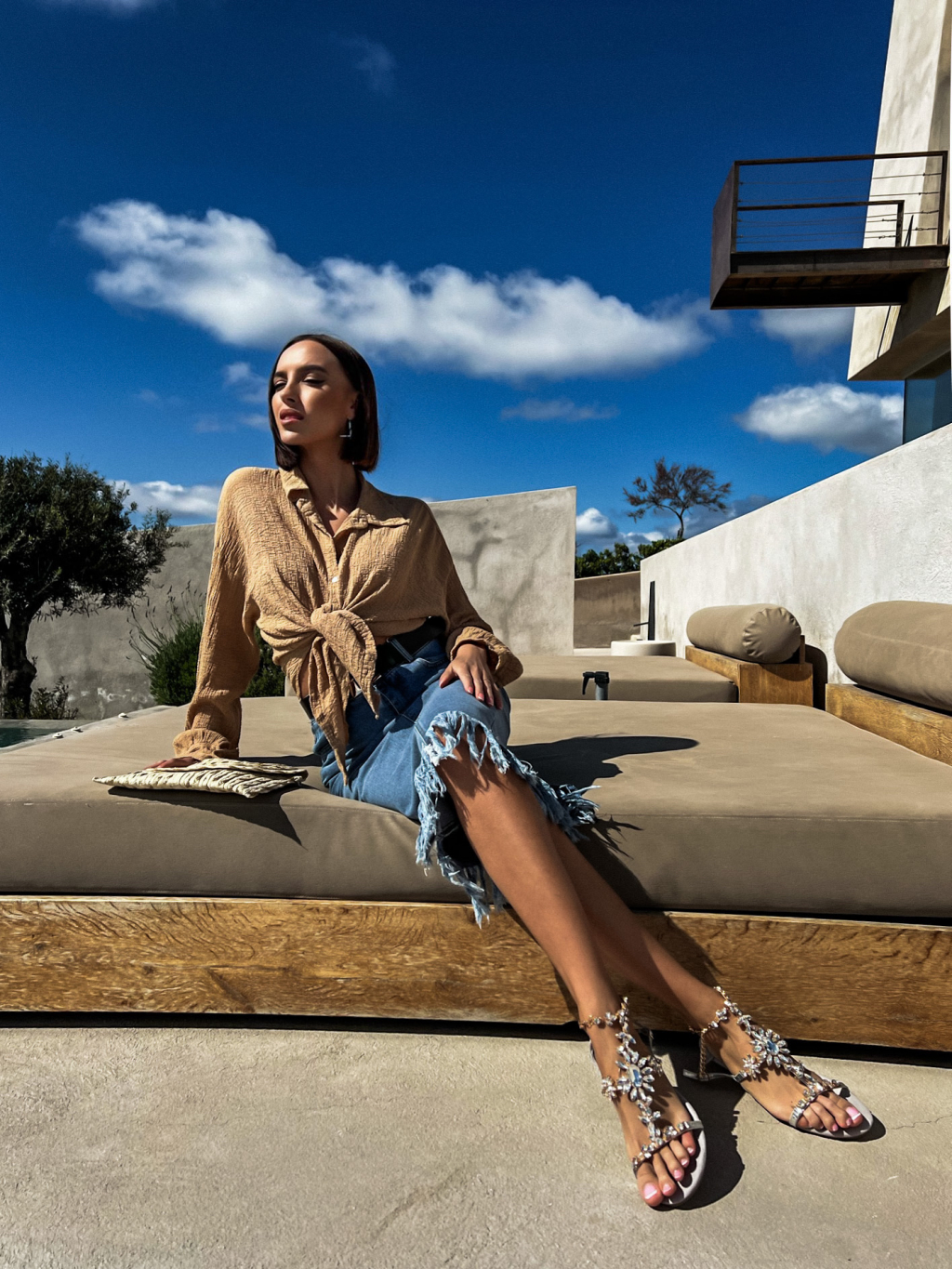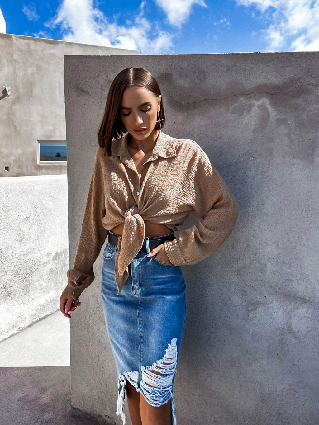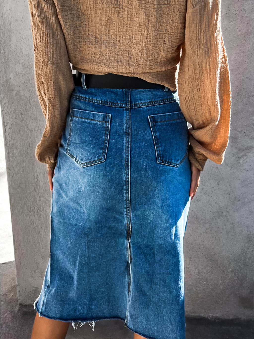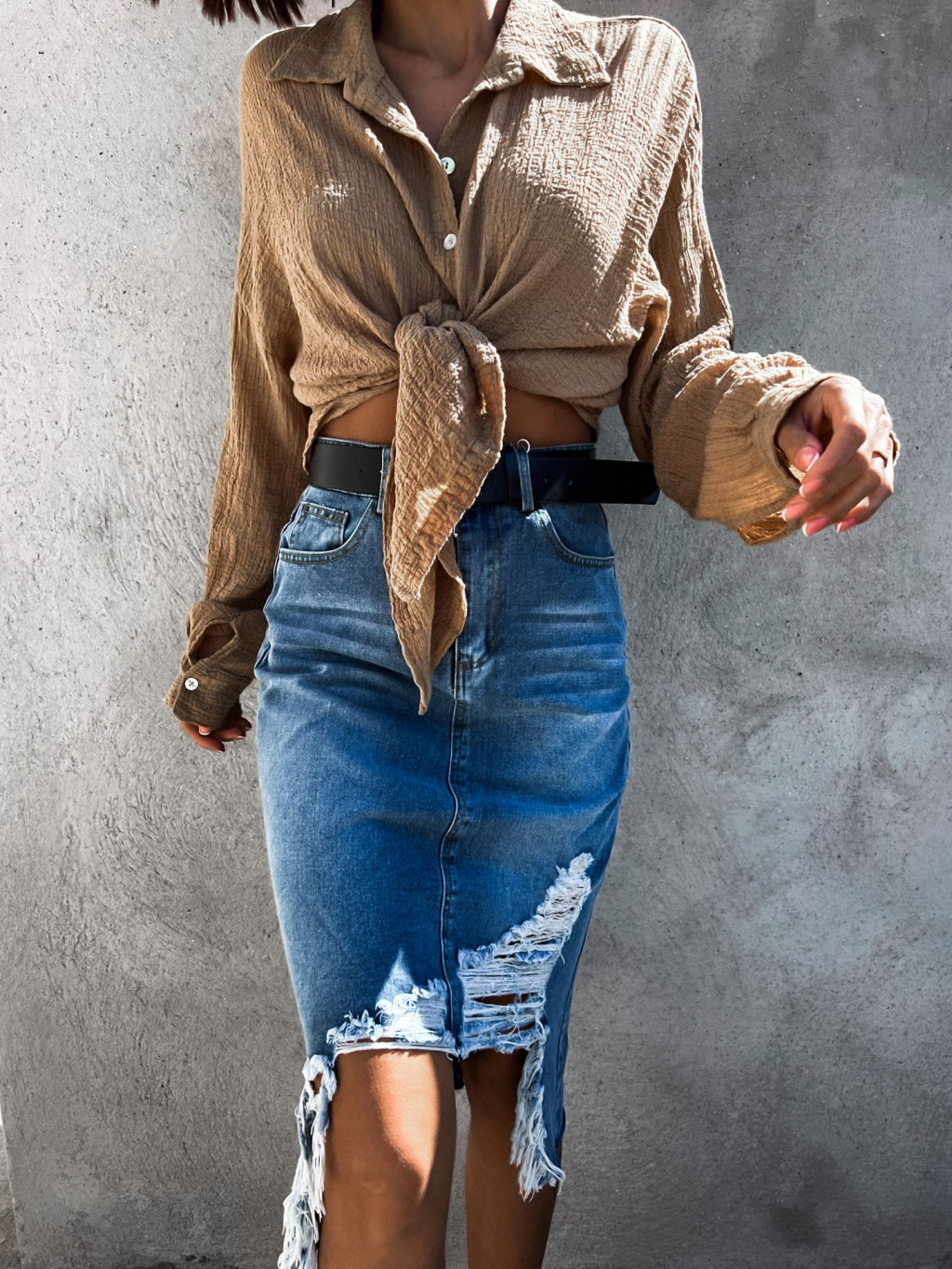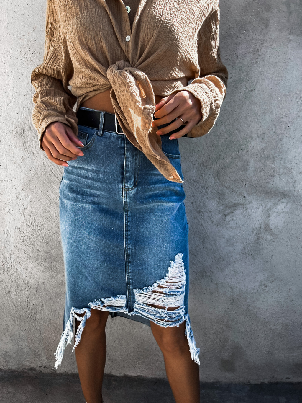 Tmavě modrá potrhaná džínová sukně ADRIENA