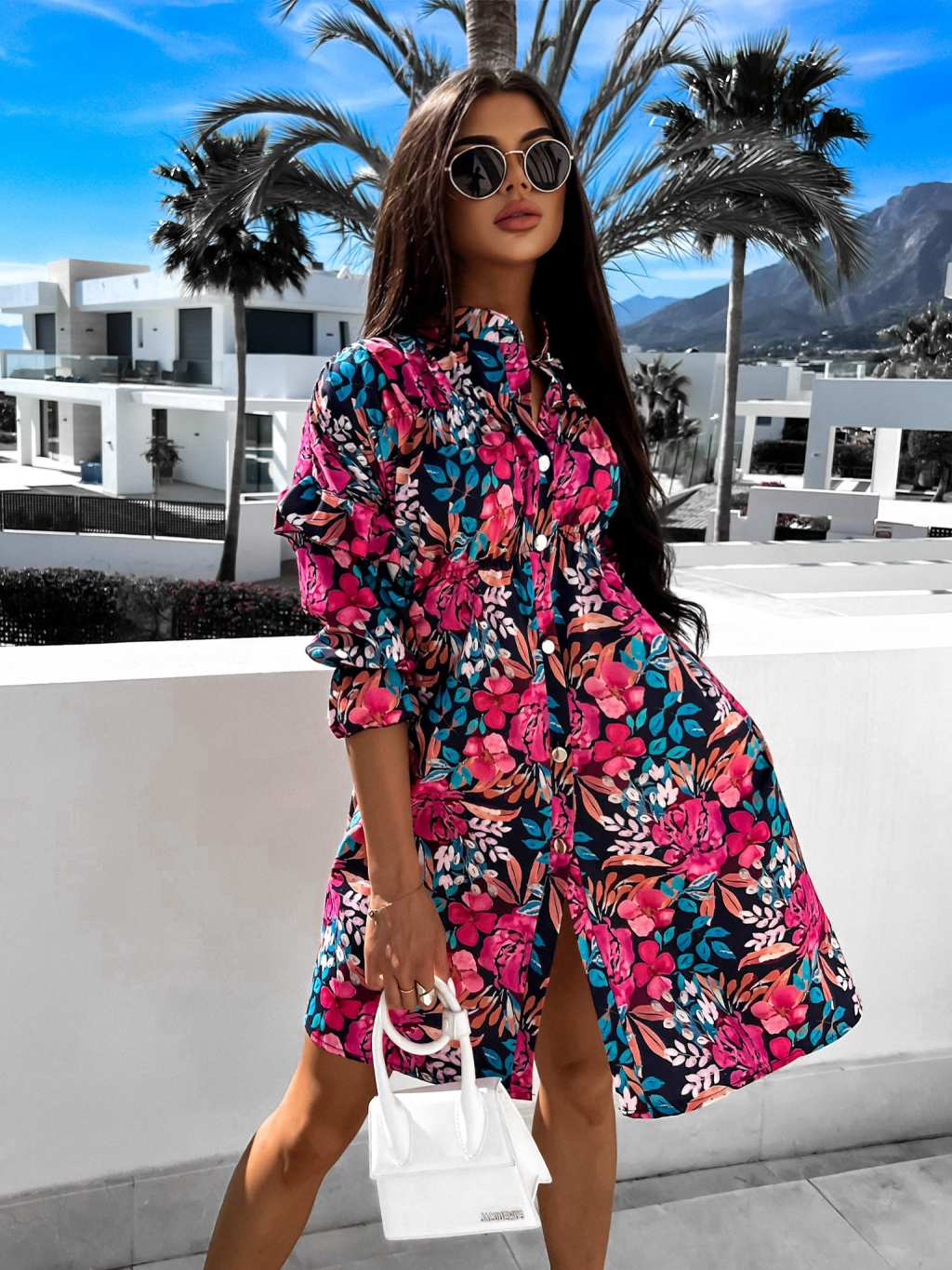 Tmavě modré elegantní šaty JOSHUAE s květinovým vzorem