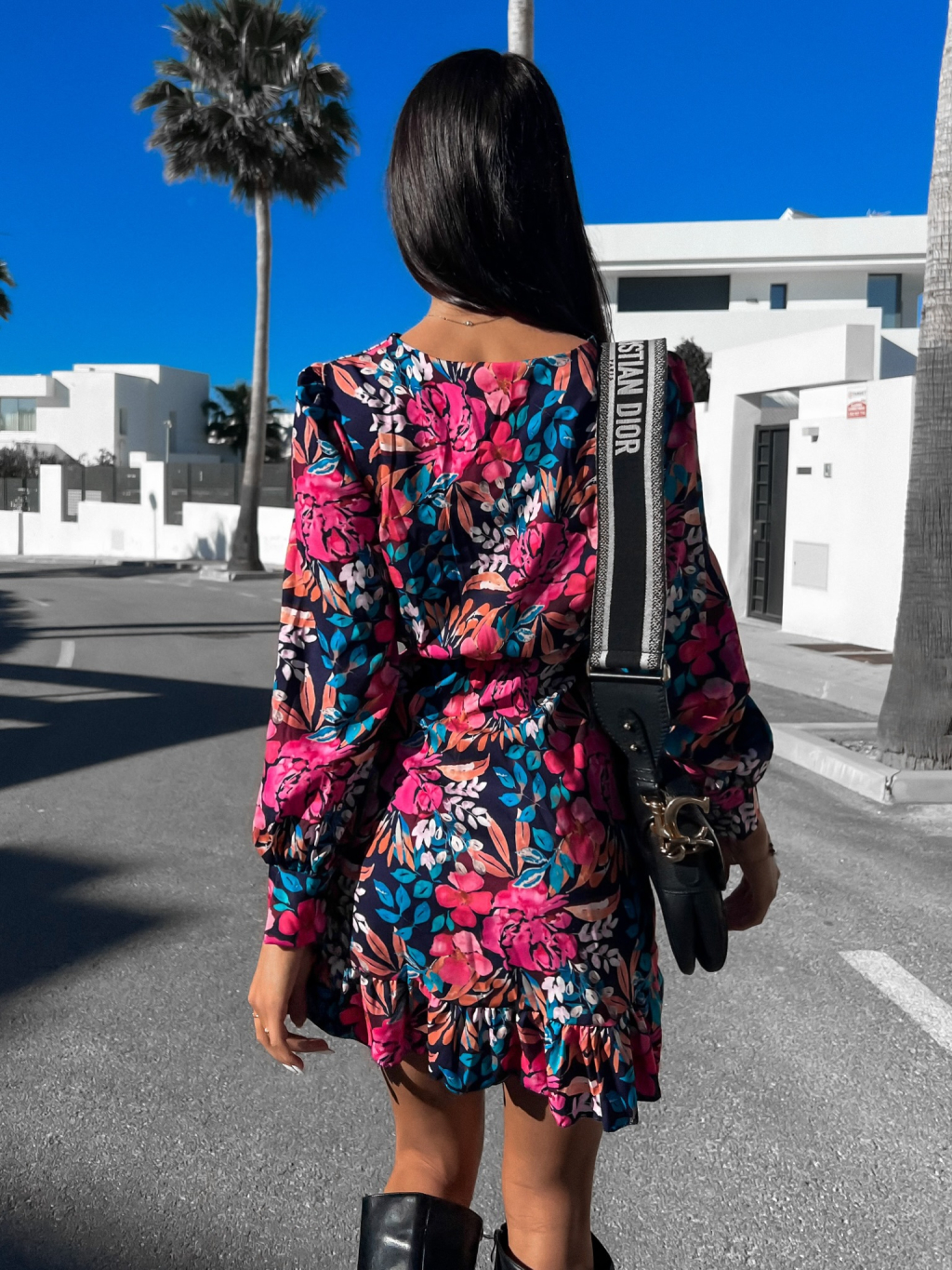 Tmavě modré elegantní šaty OTISE s květinovým vzorem