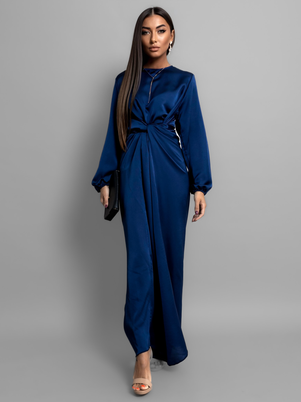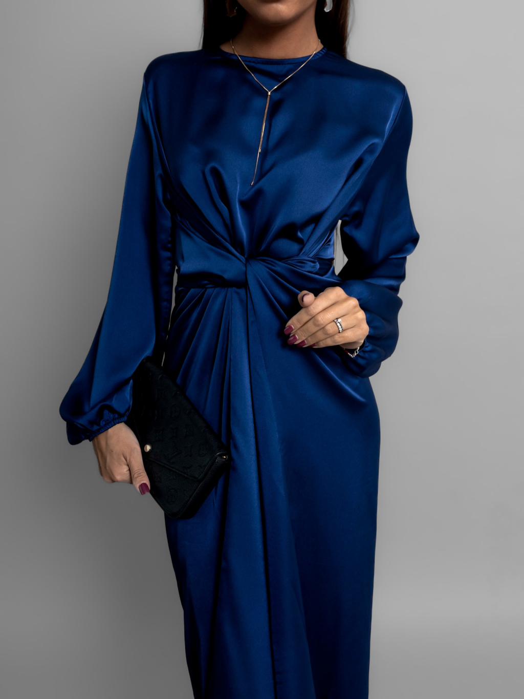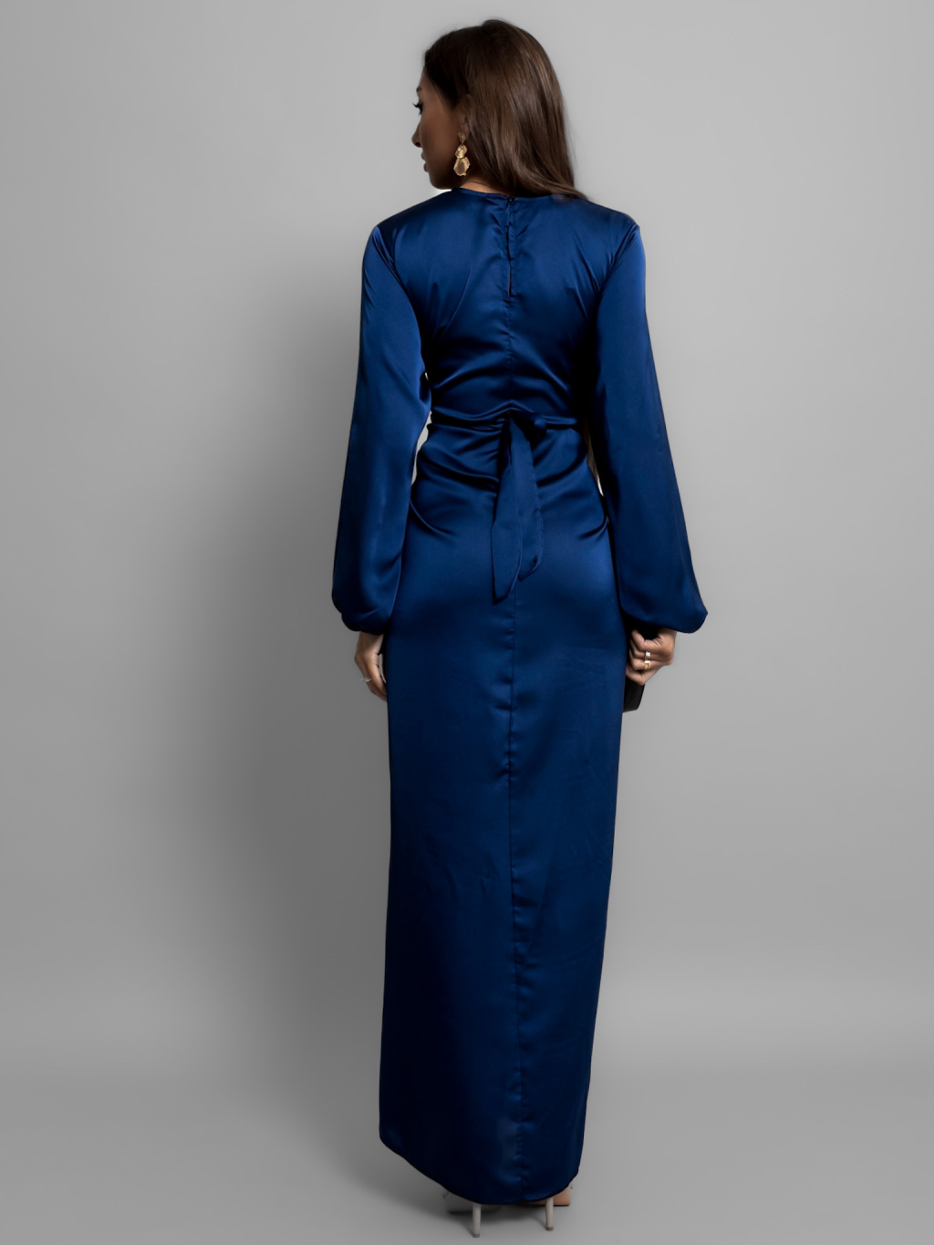 Tmavě modré saténové šaty GRACIE s vázáním