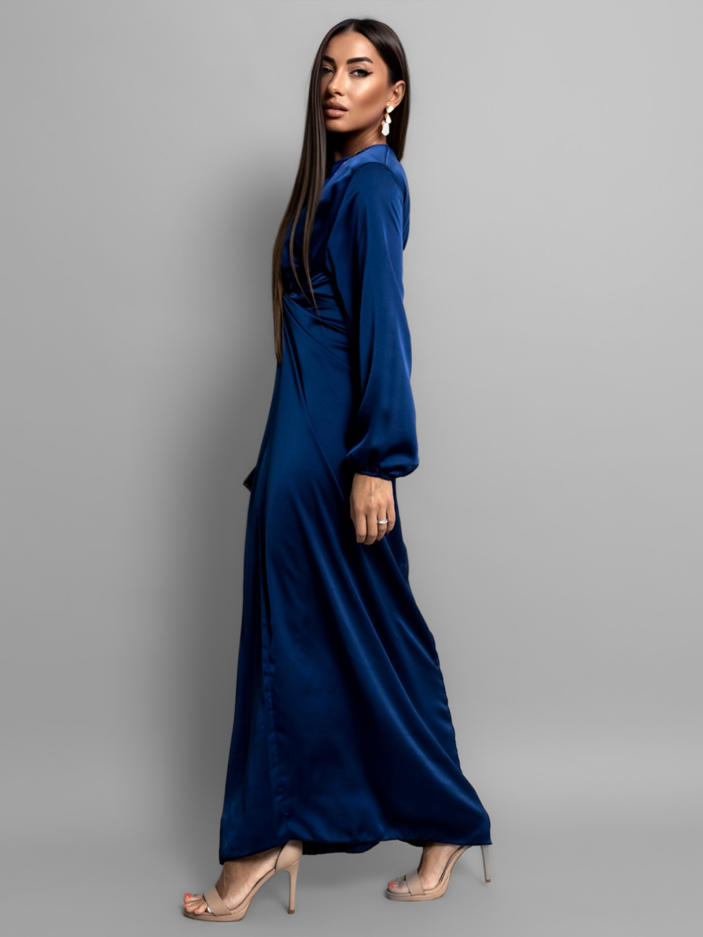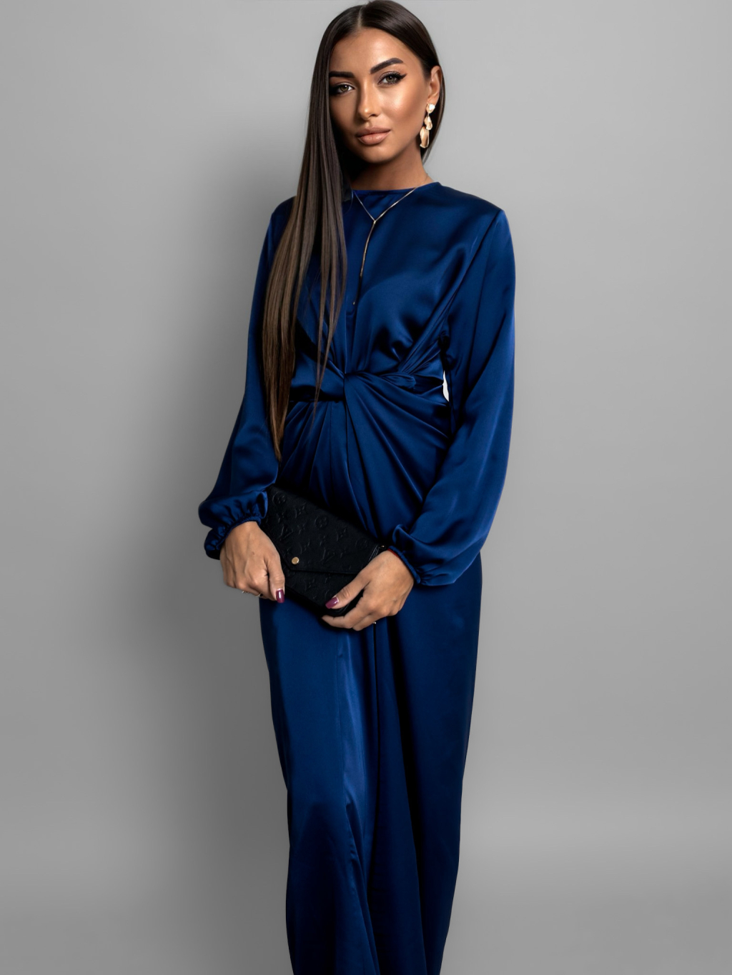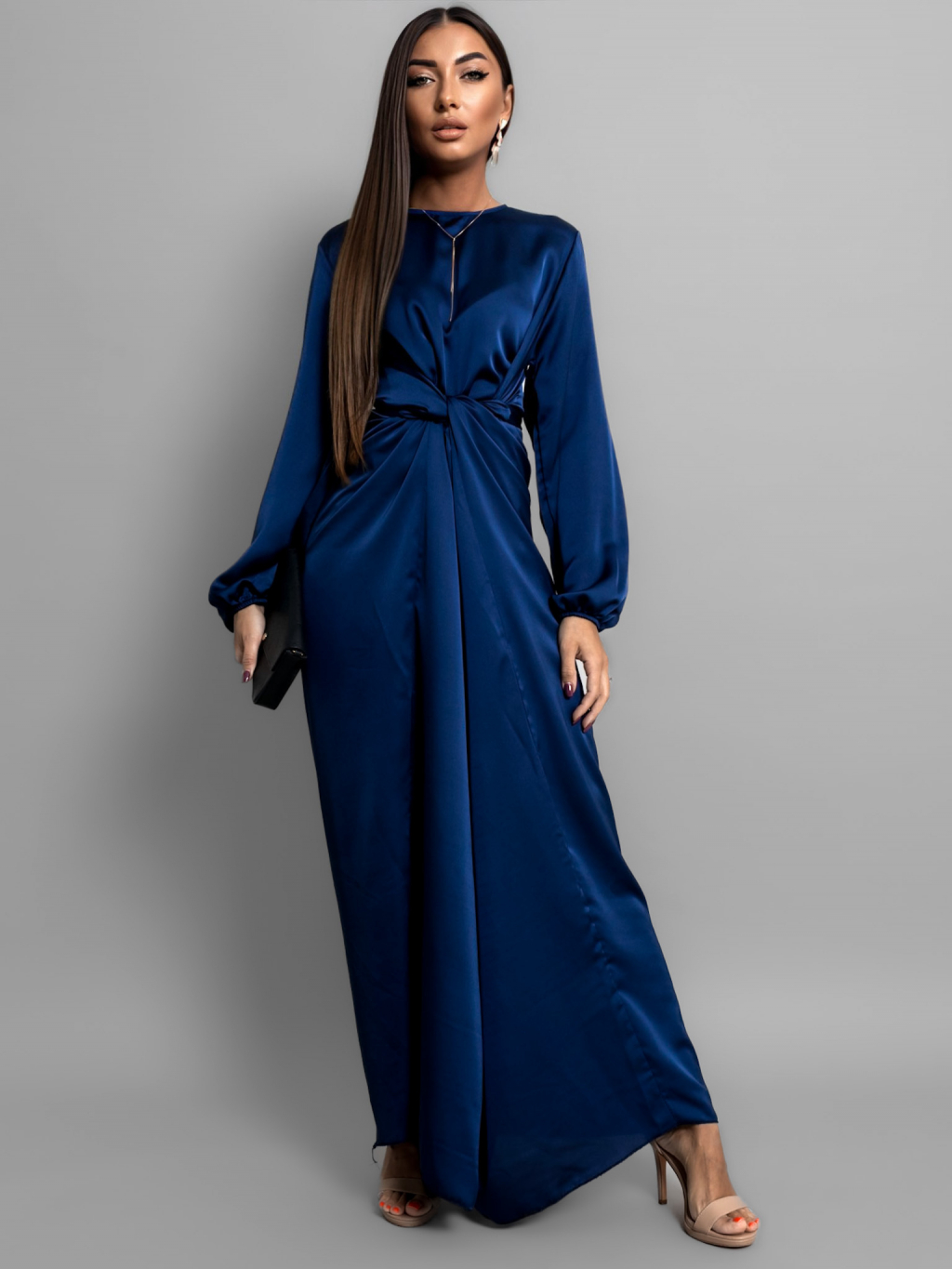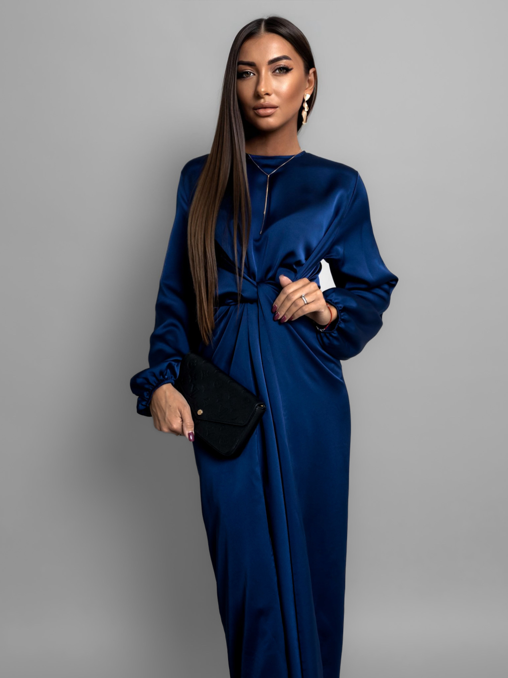 Tmavě modré saténové šaty GRACIE s vázáním