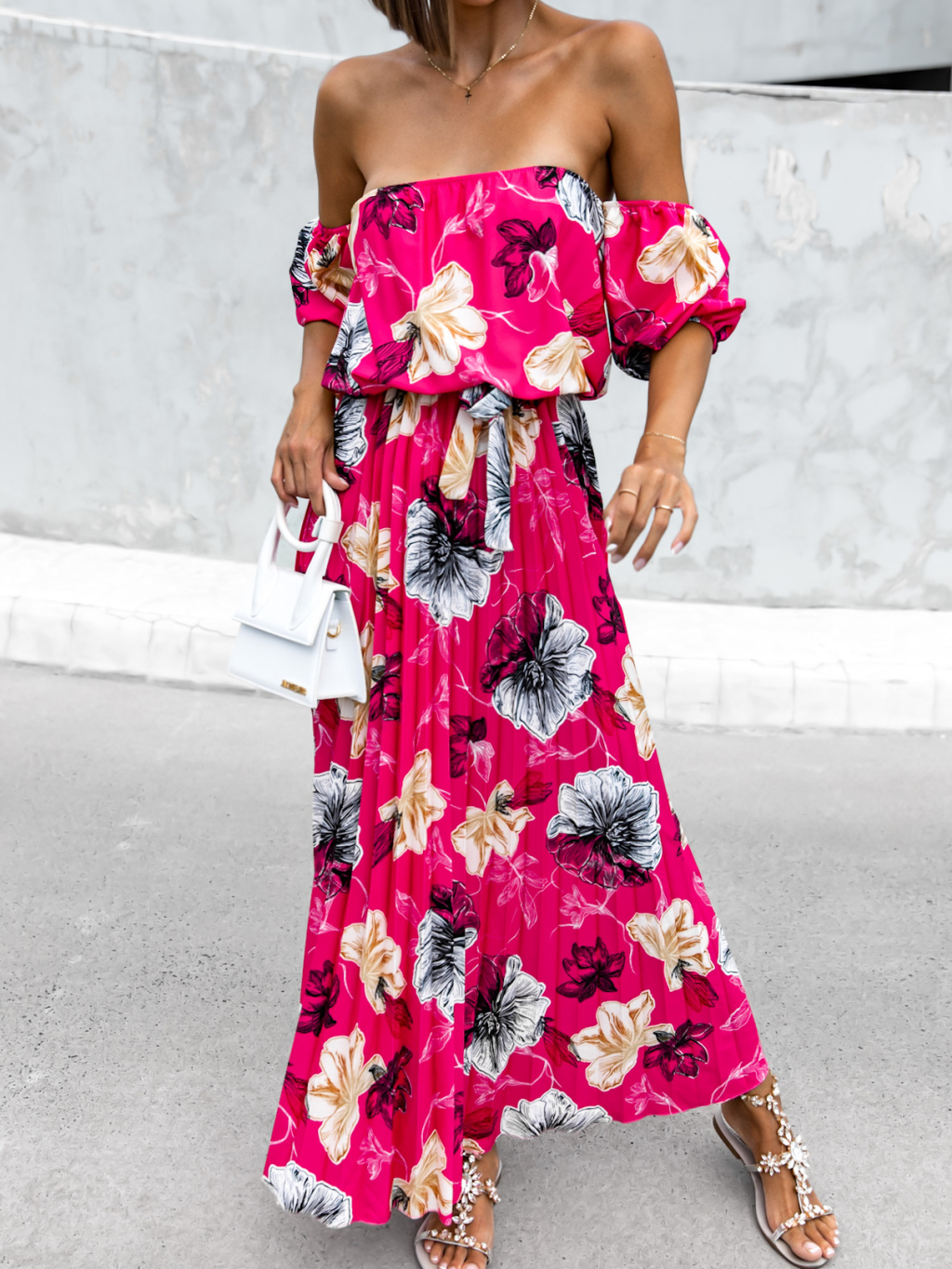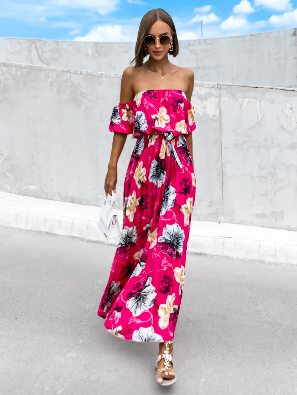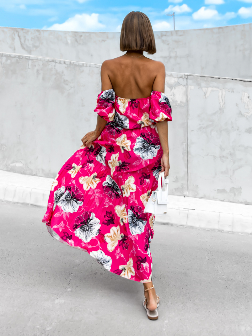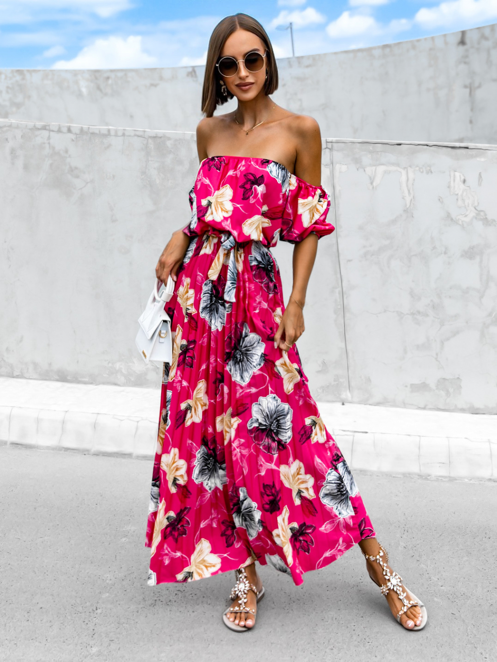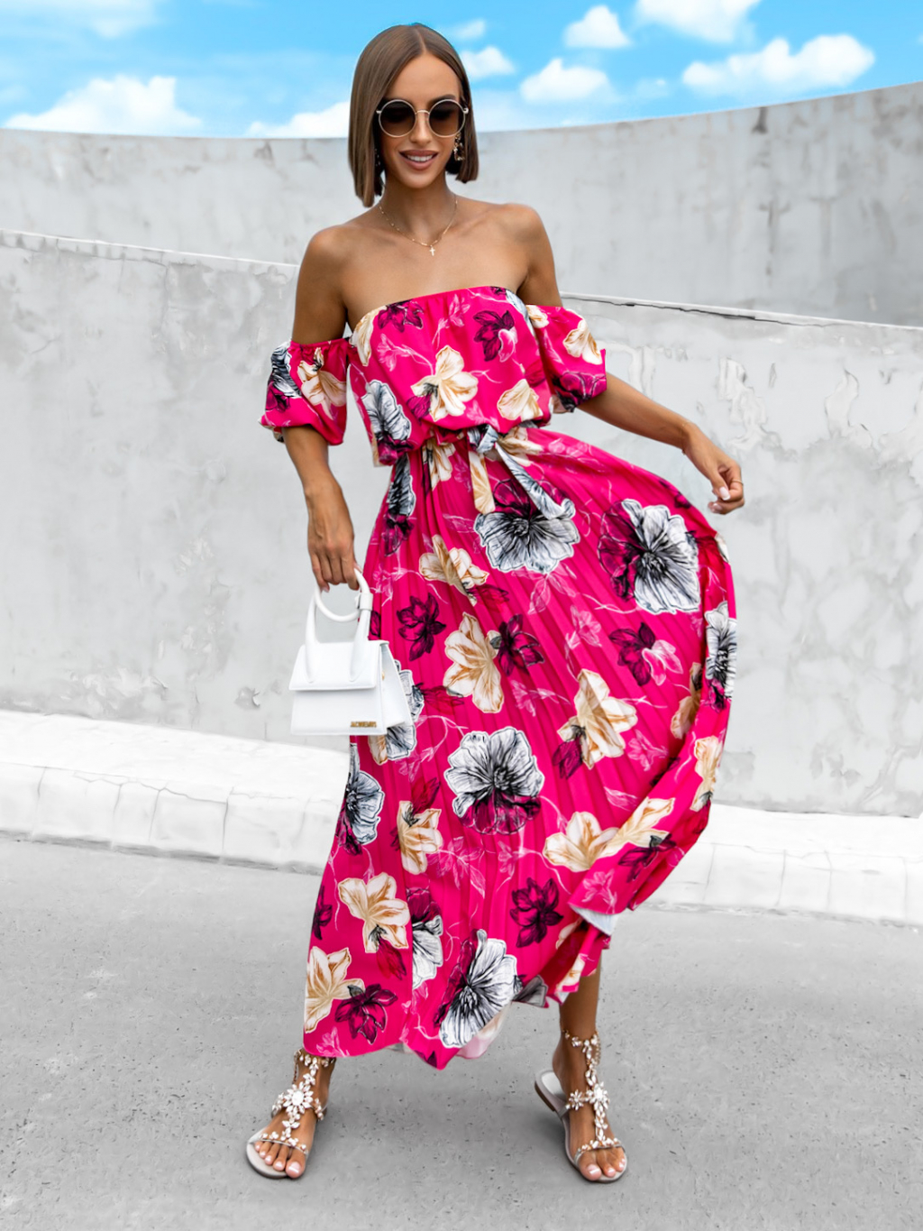 Tmavě růžové elegantní šaty AMONA s květinovým vzorem