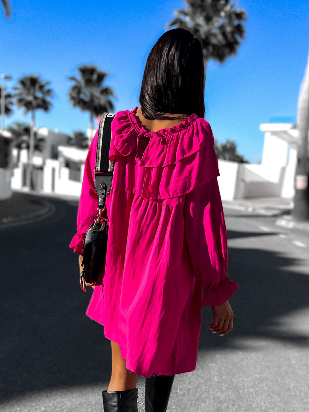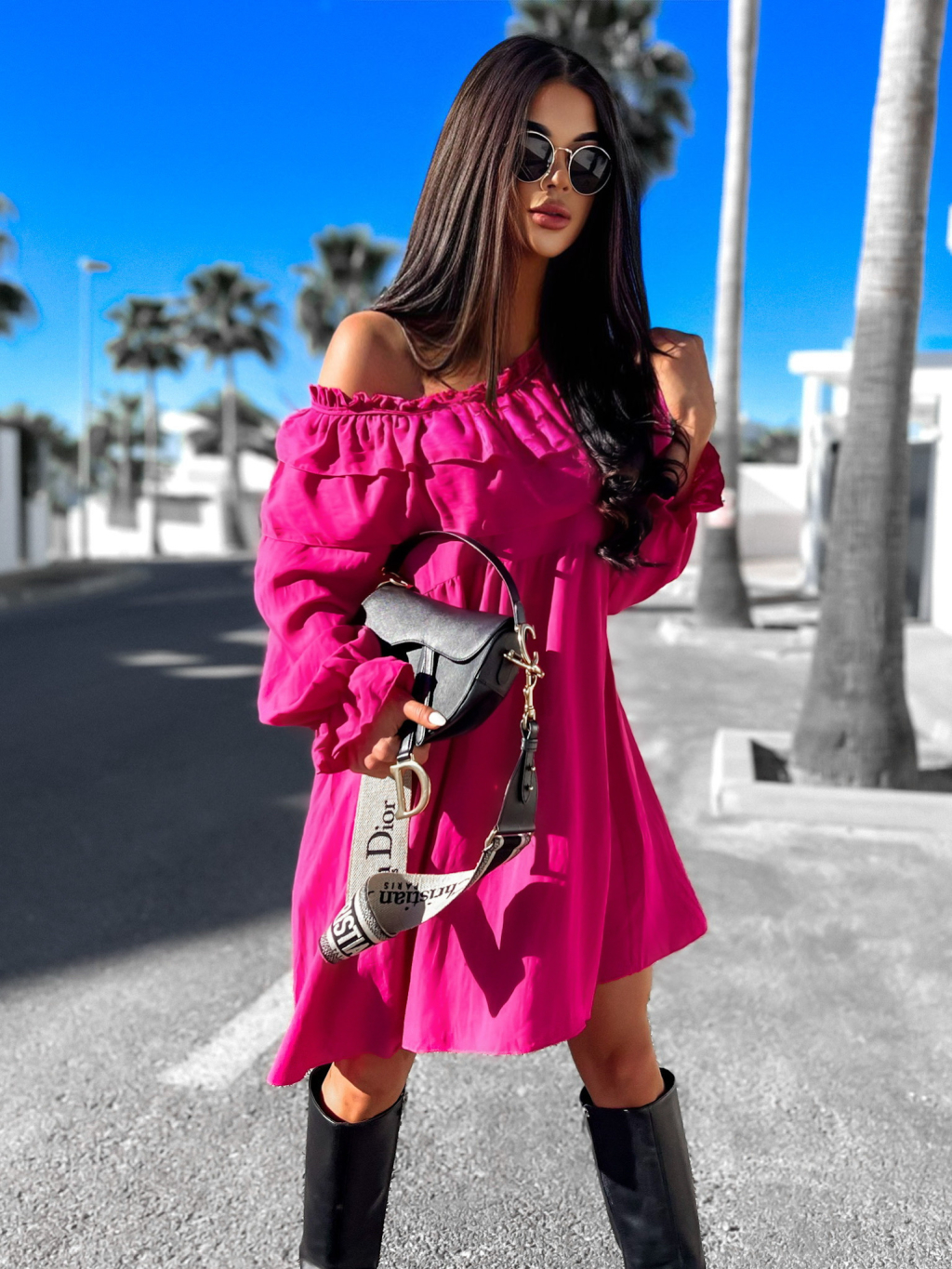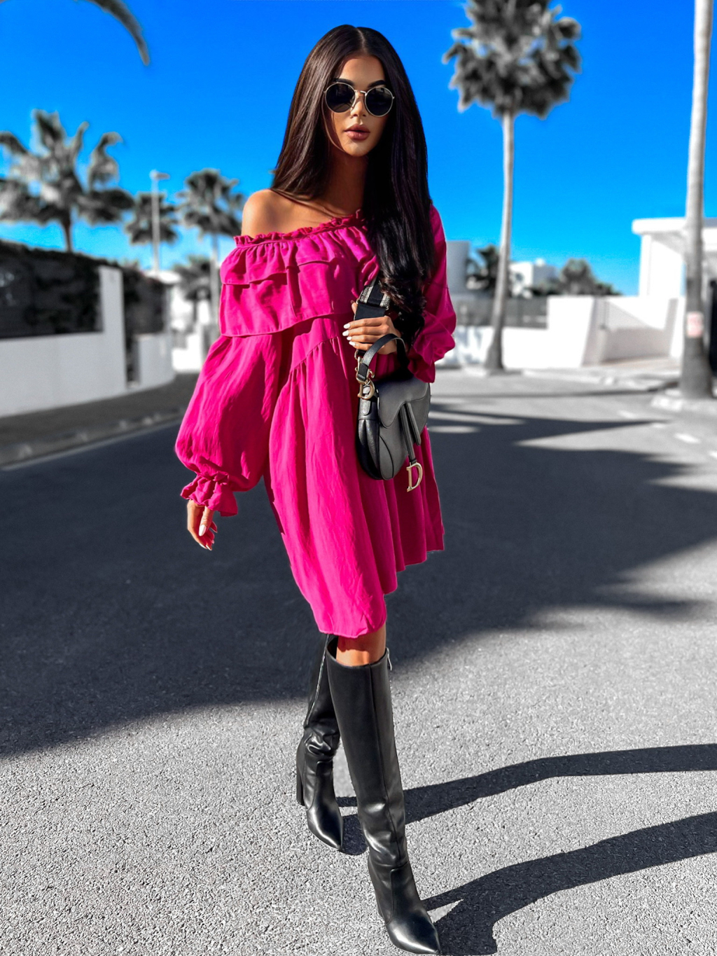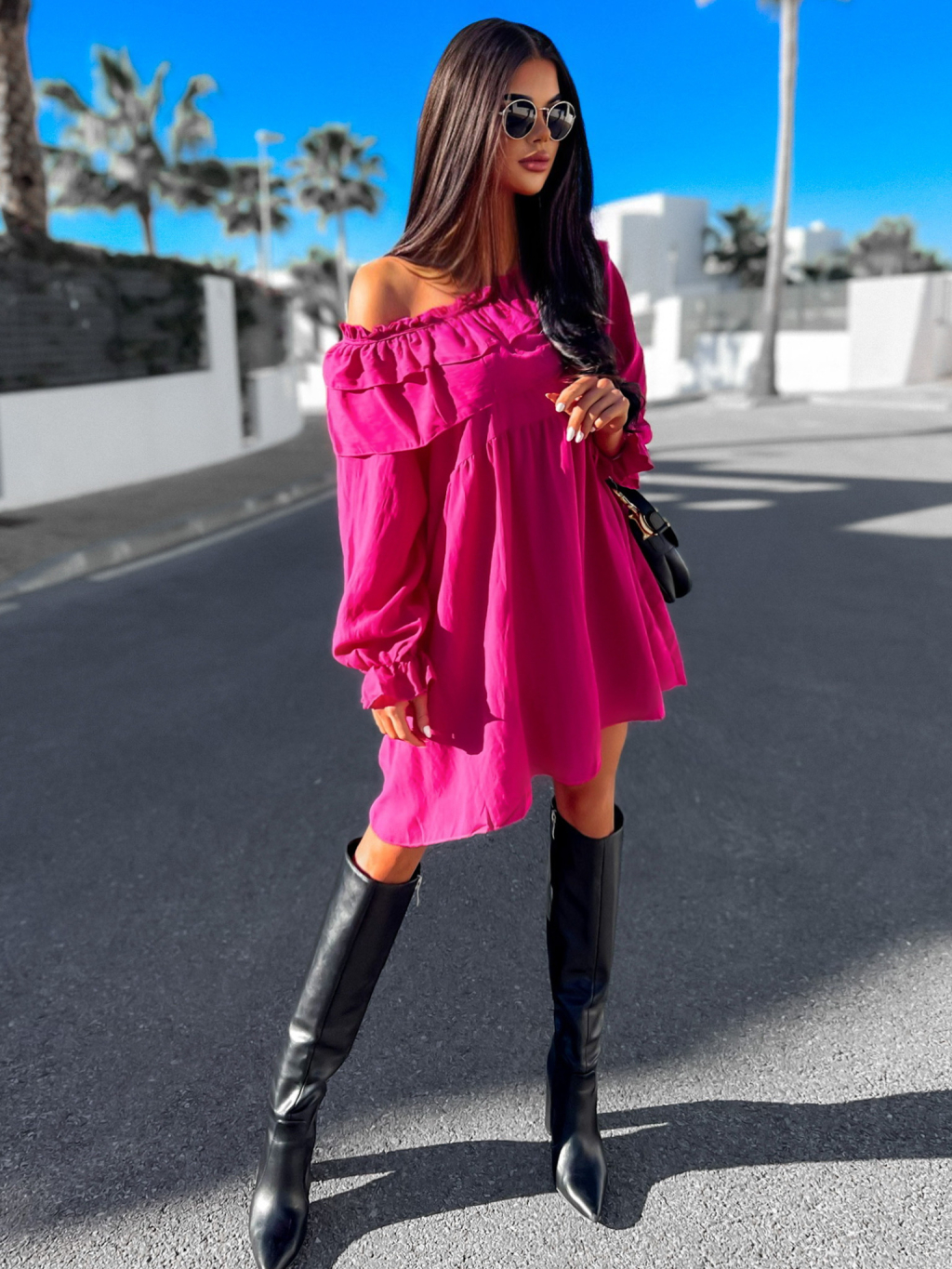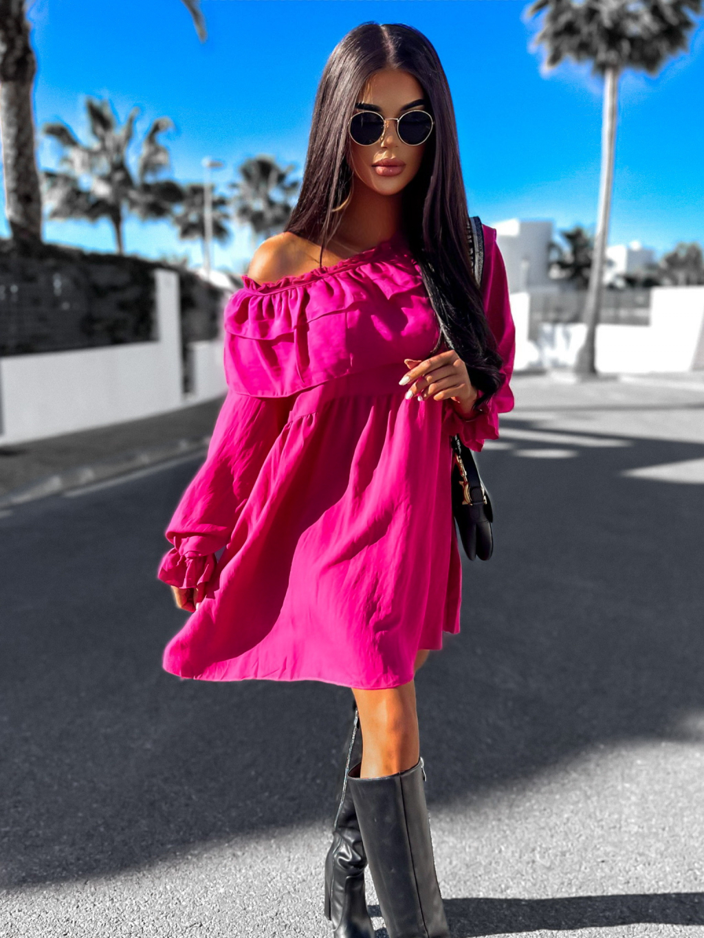 Tmavě růžové elegantní šaty HAYVIN s volánky