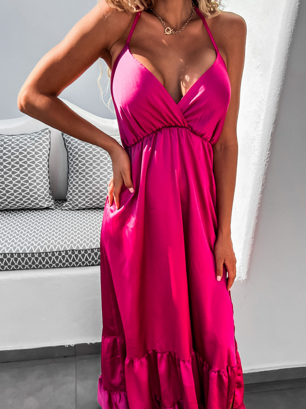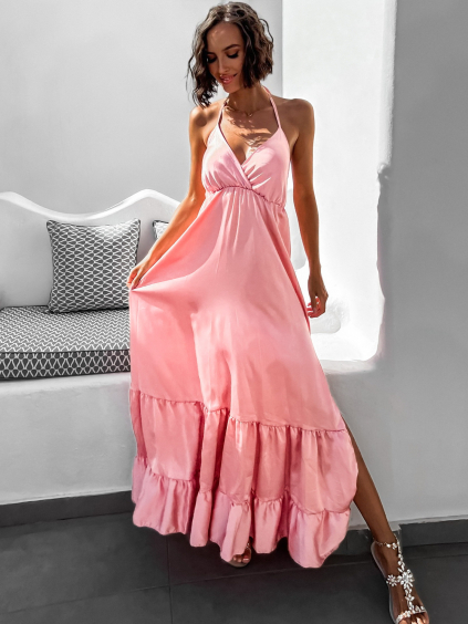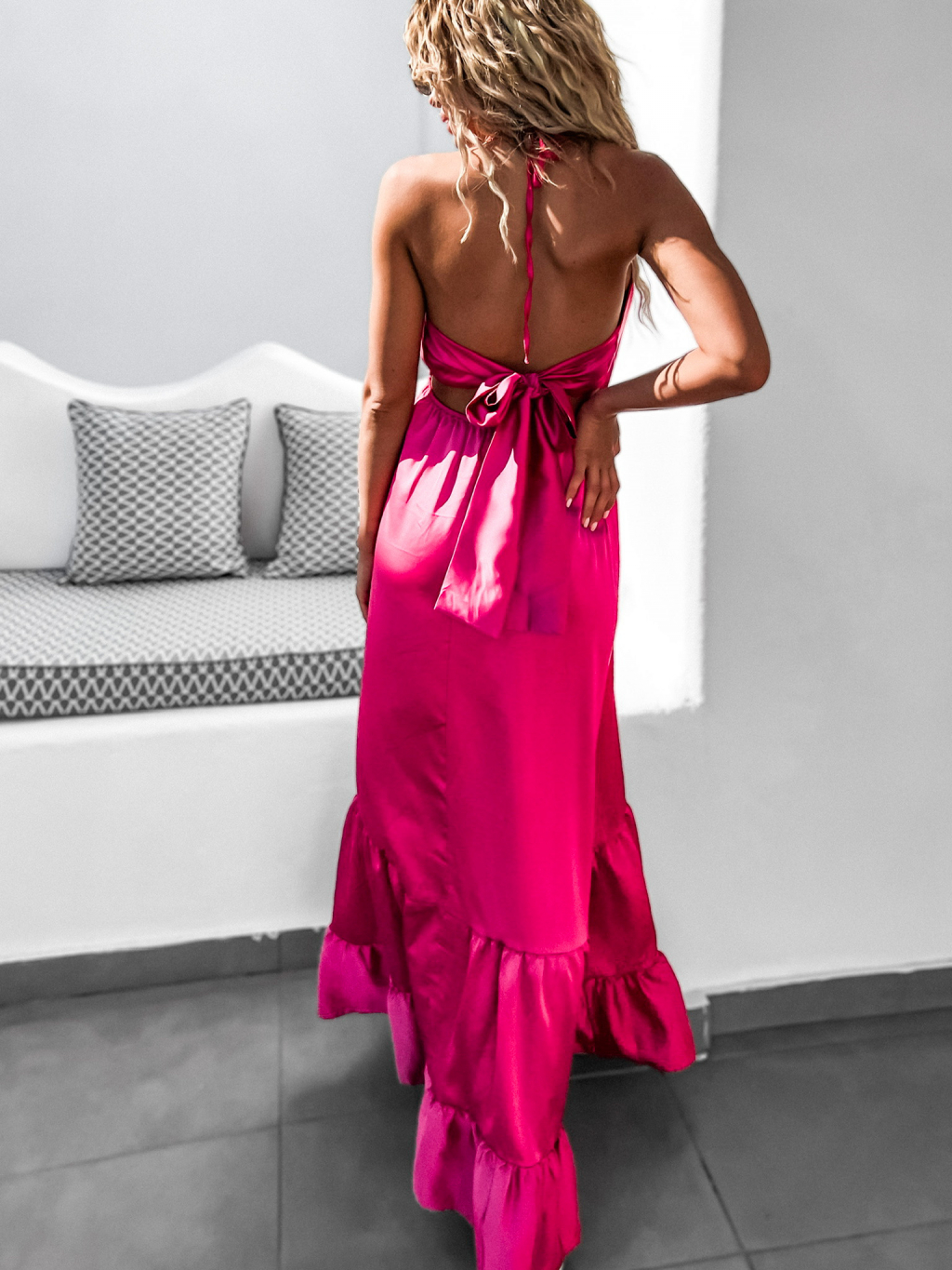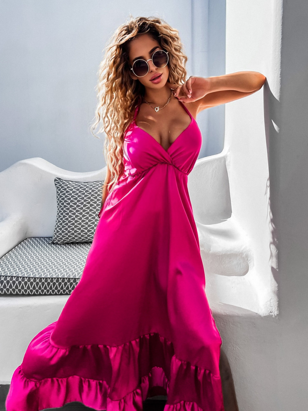 Tmavě růžové elegantní šaty MADDOX s volánky