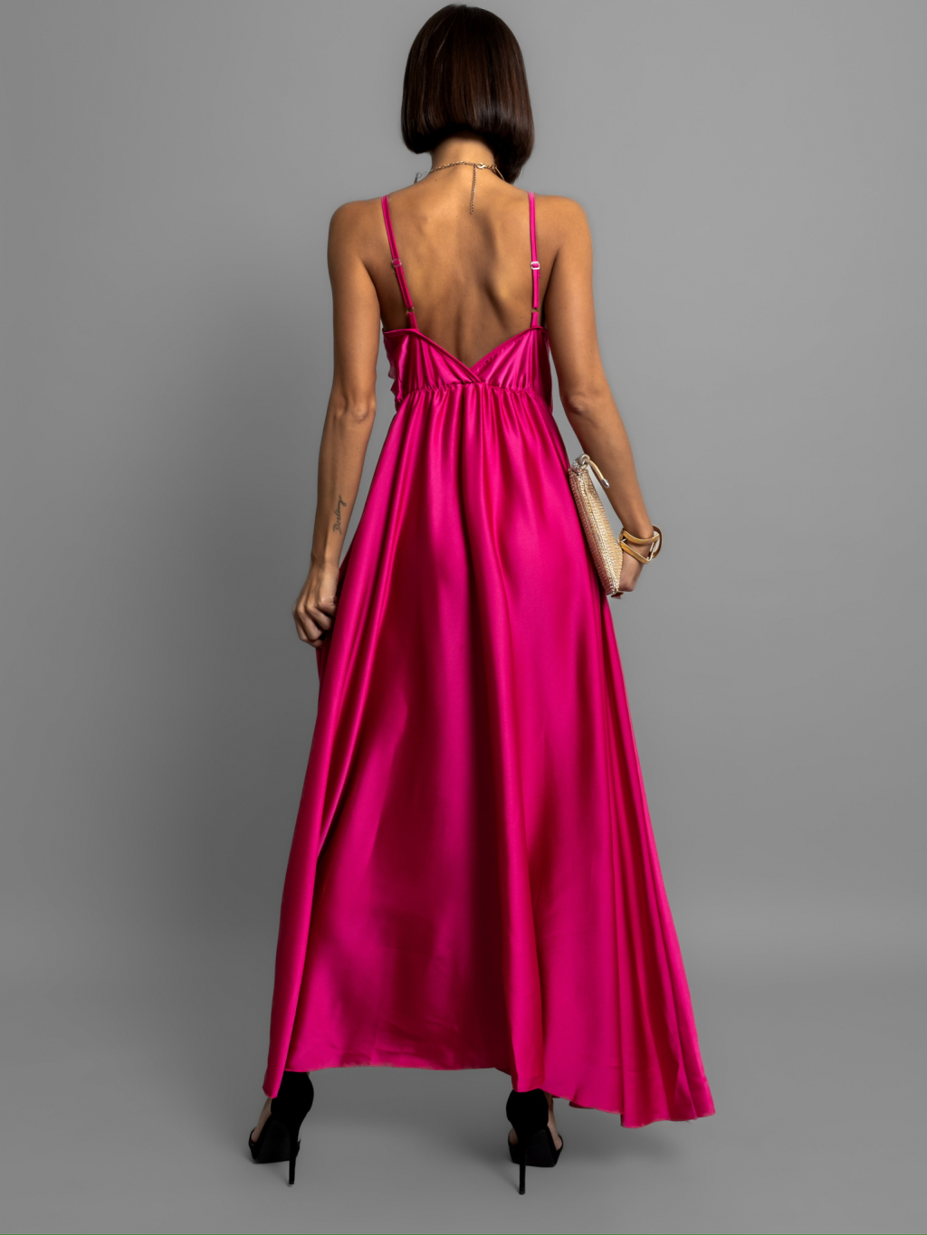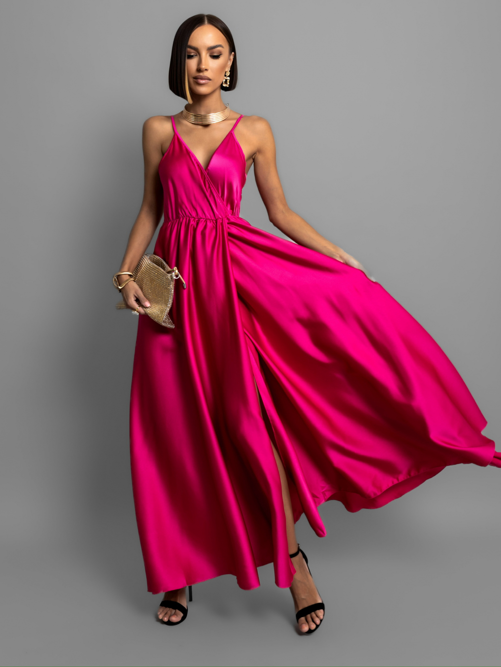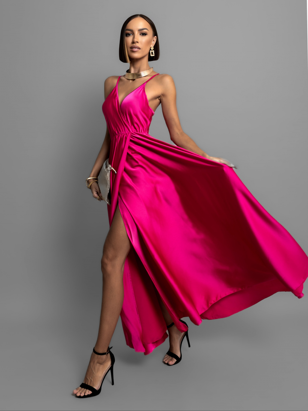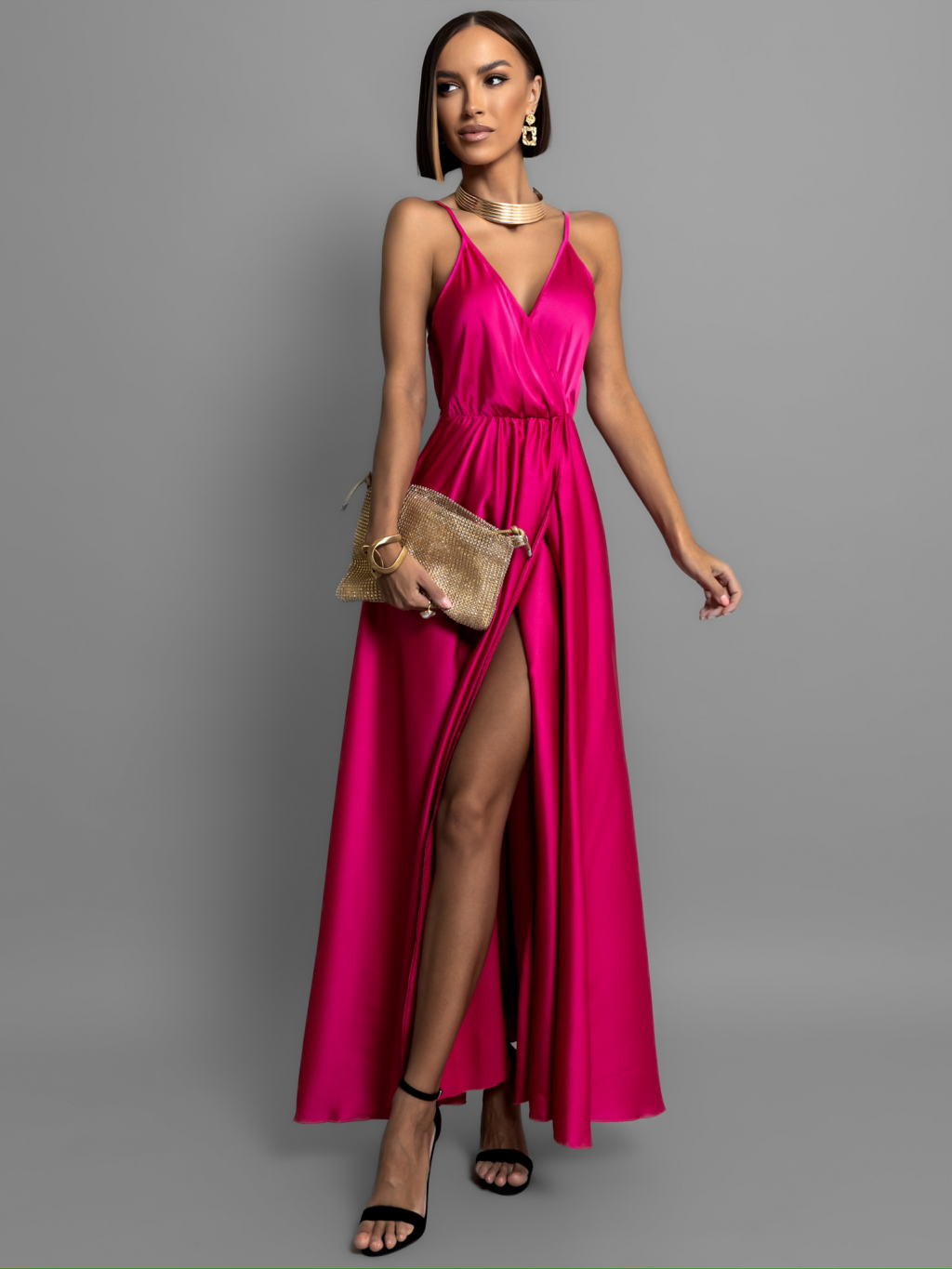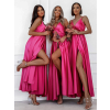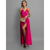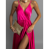 Tmavě růžové lesklé dlouhé plesové šaty CHRYSANTHE