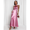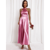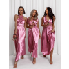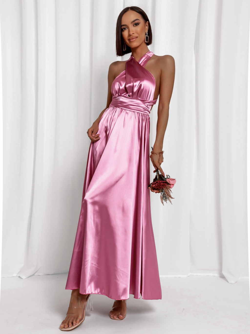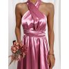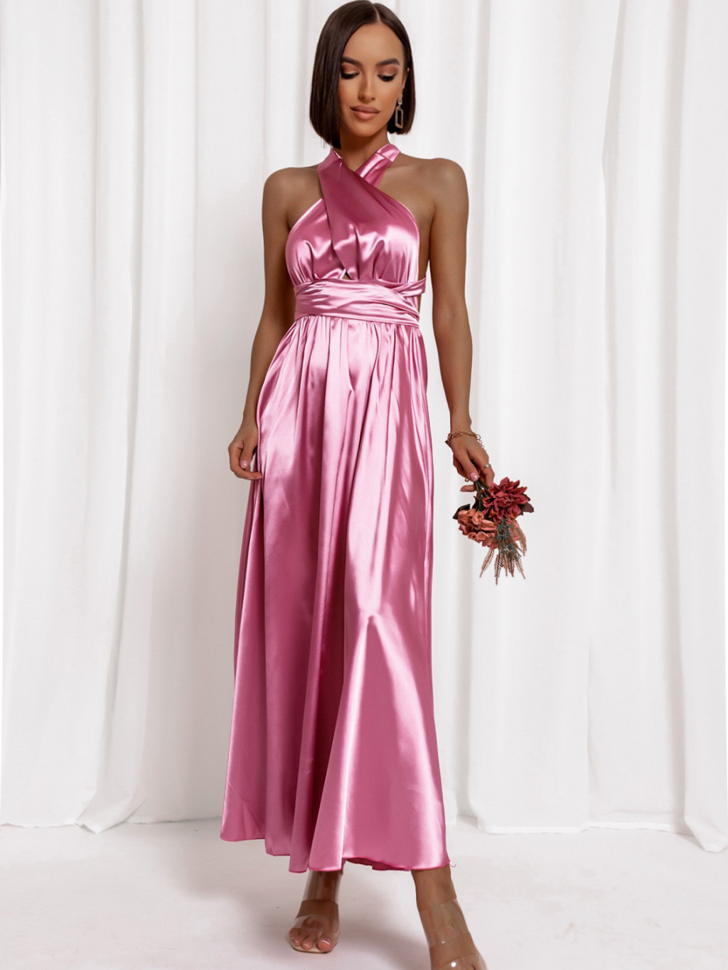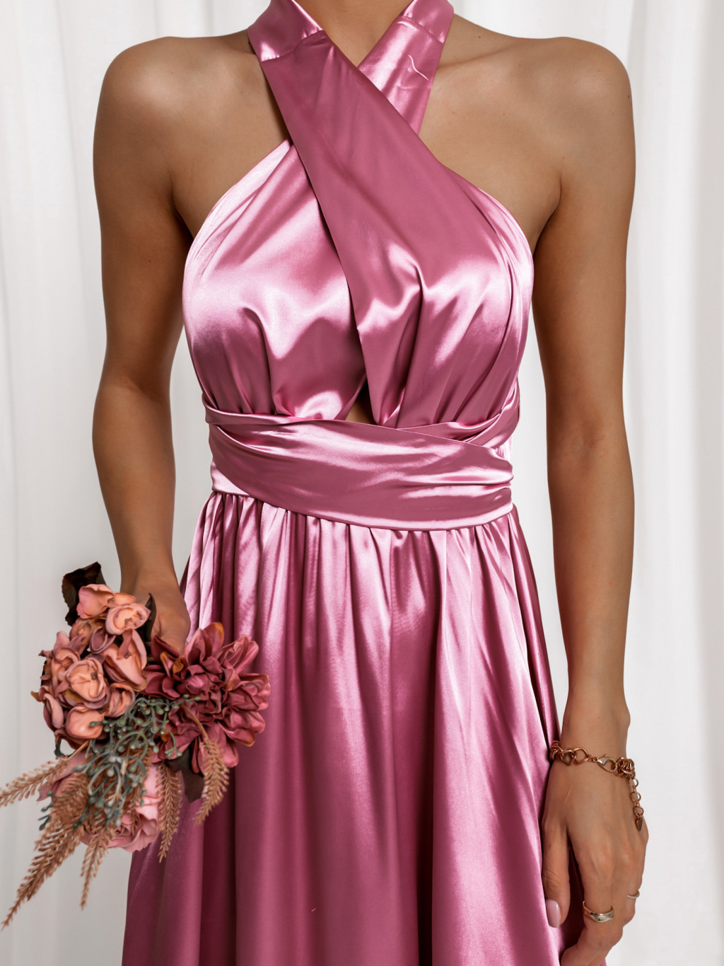 Tmavě růžové lesklé šaty VALERDY s variabilním vázáním / bez rozparku