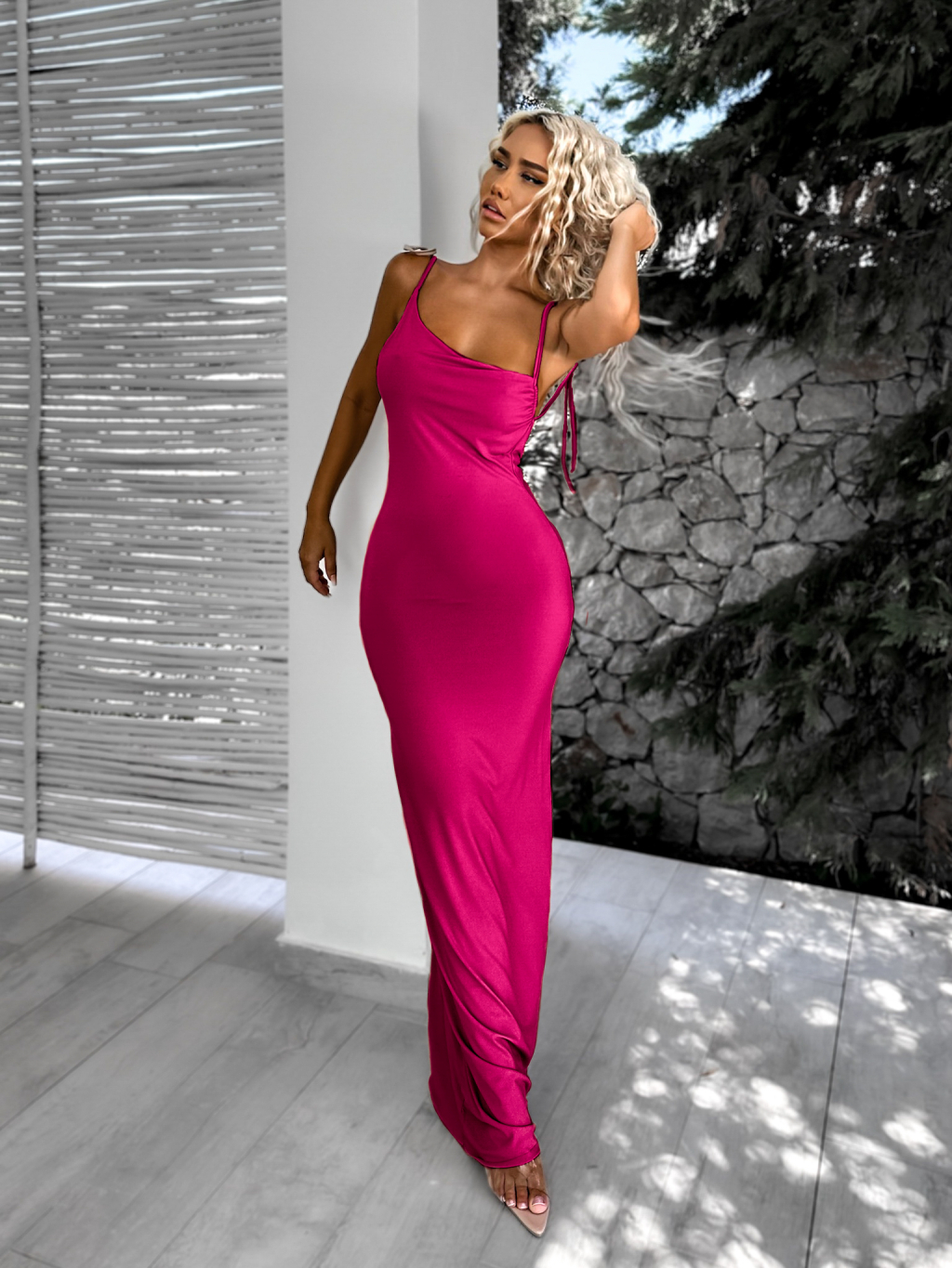Tmavě růžové šaty KONTRAME se zavazováním na ramenech