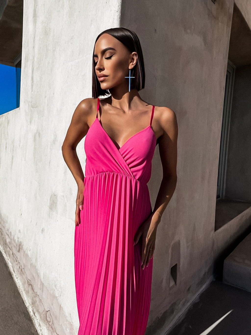 Tmavě růžové šaty SUNLOVE s plisovanou sukní