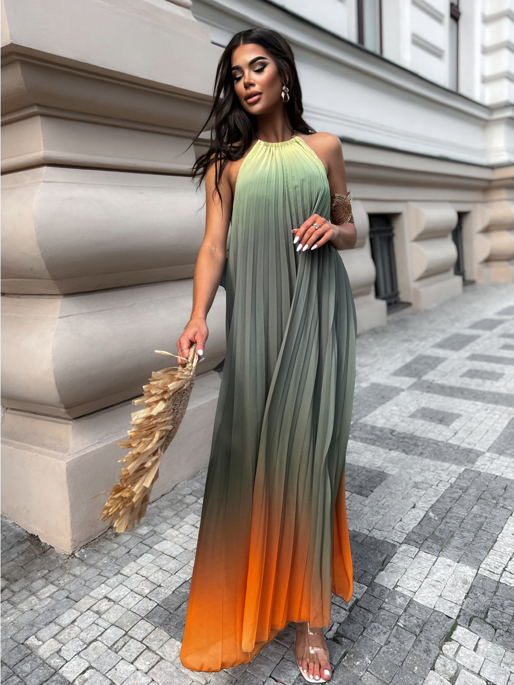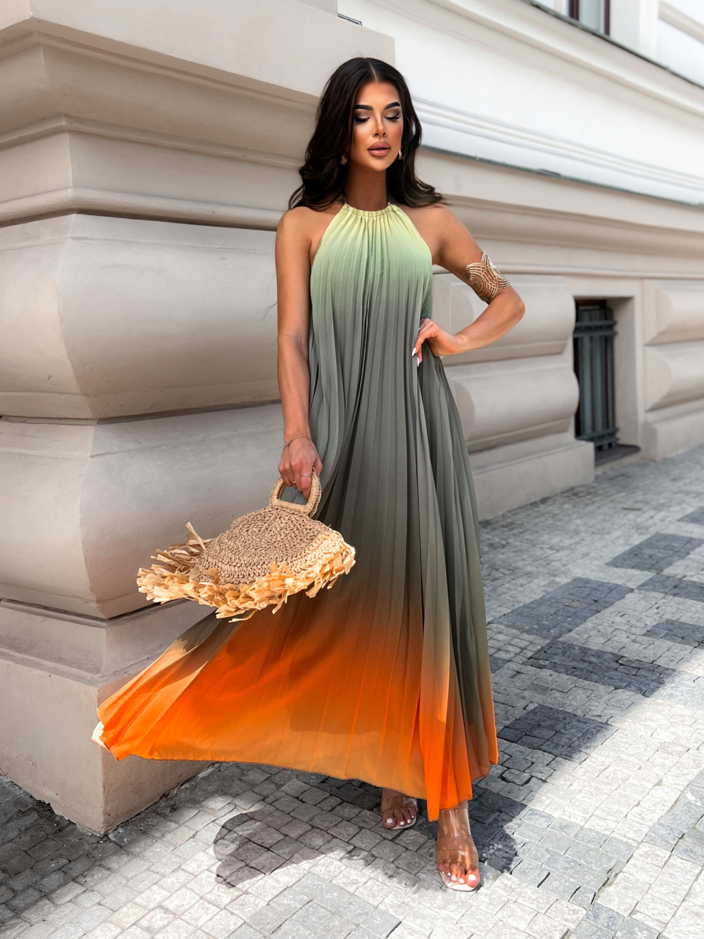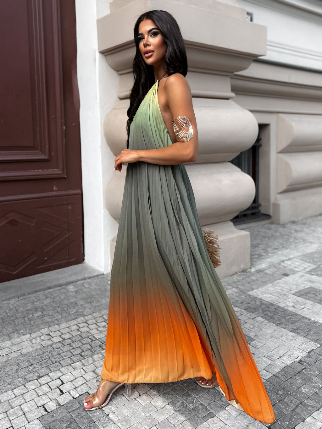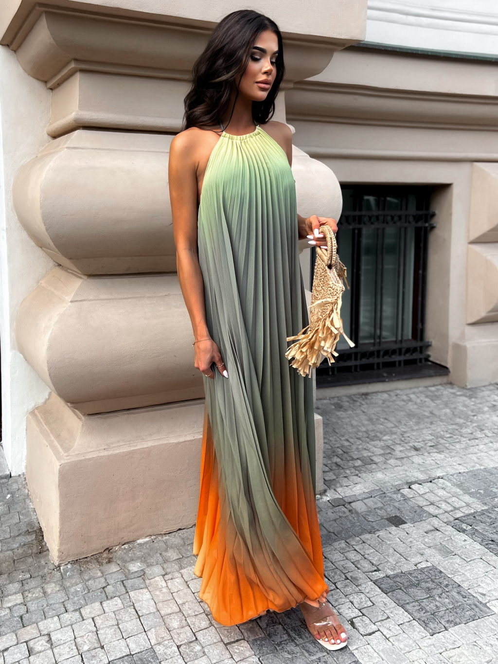 Tmavě zelené dlouhé šaty LOTUSO na zavazování