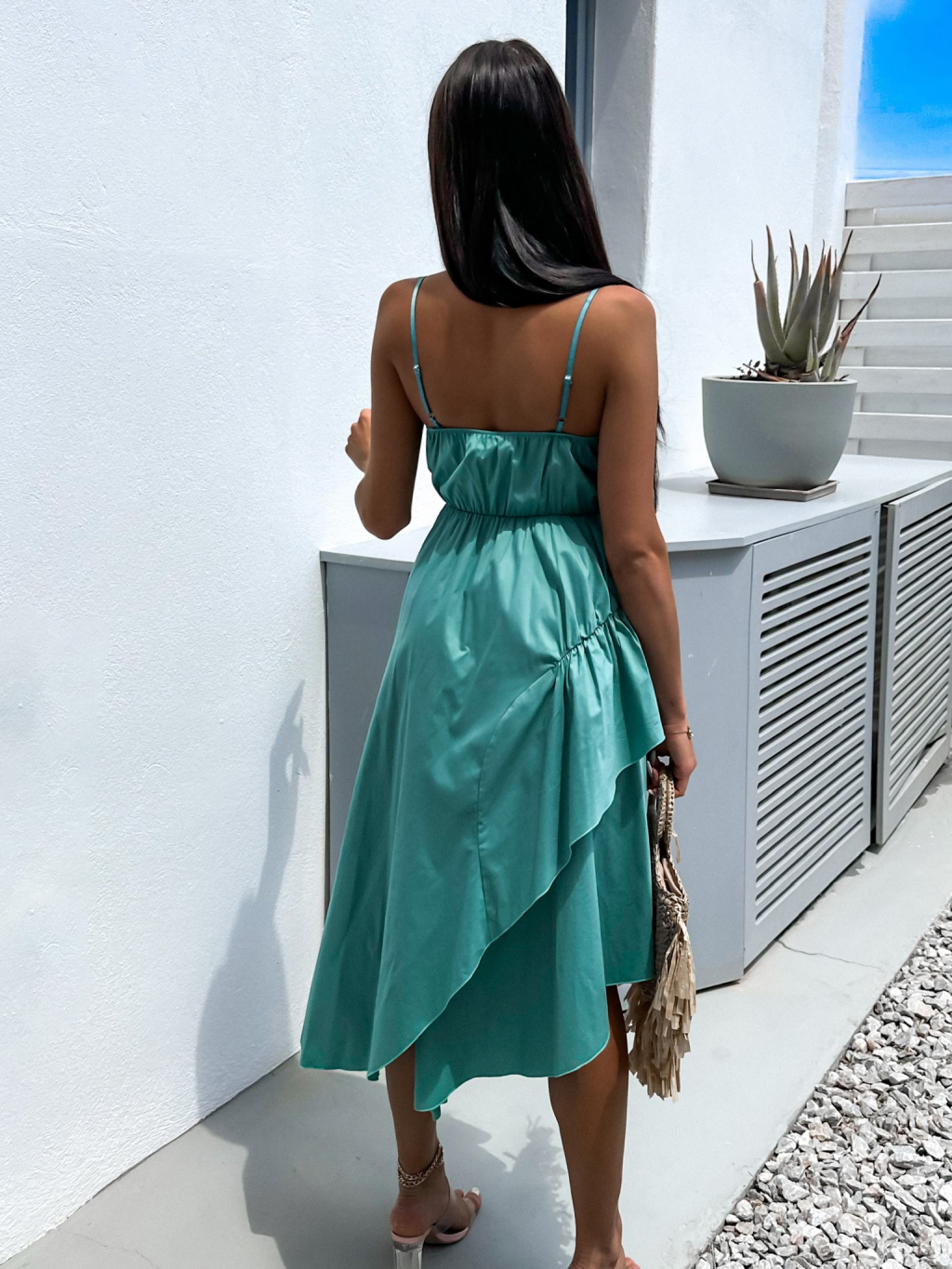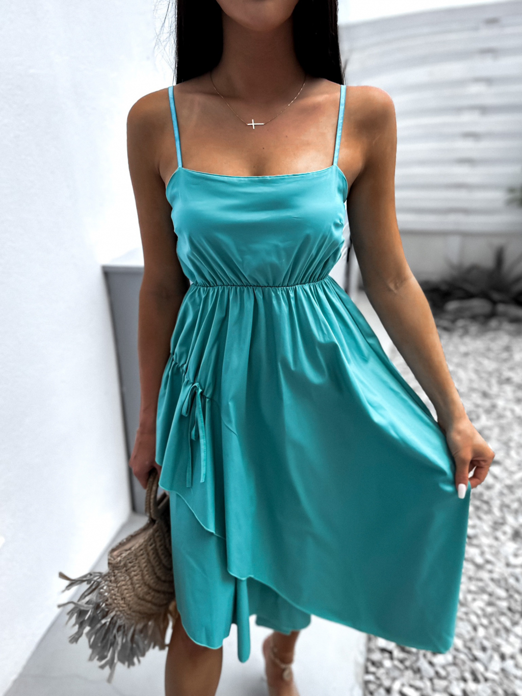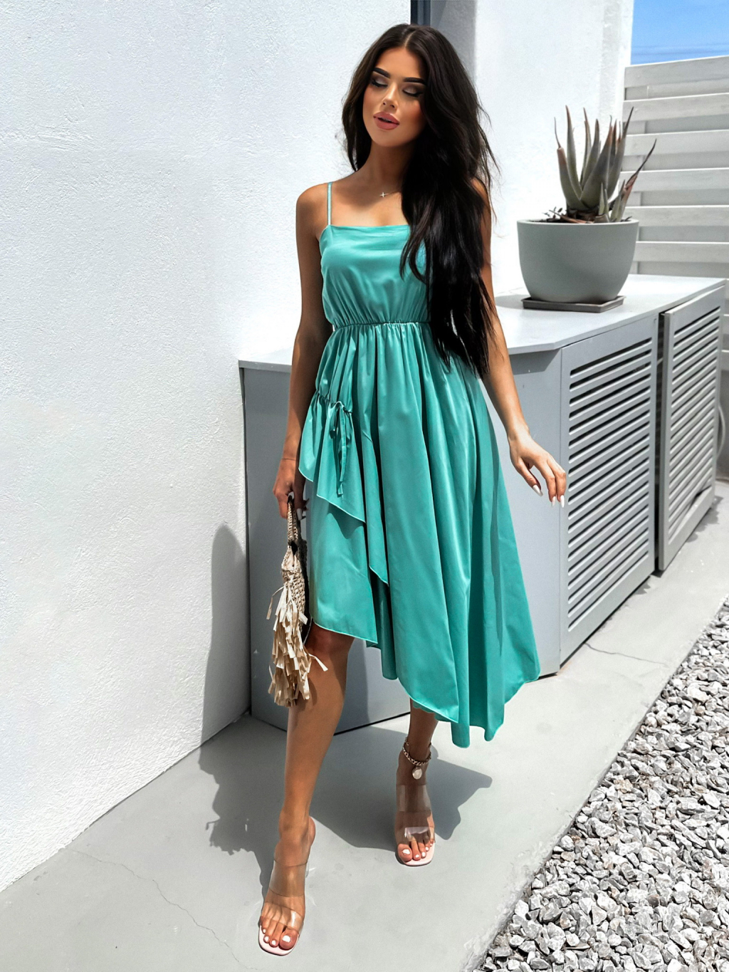 Tyrkysové asymetrické dlouhé šaty SIGNIFY