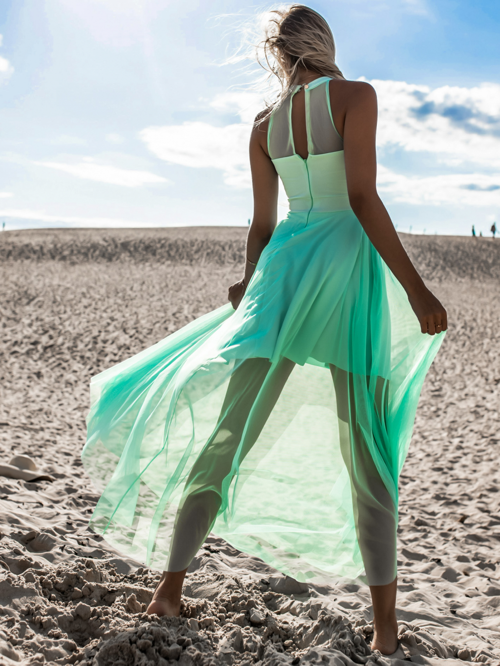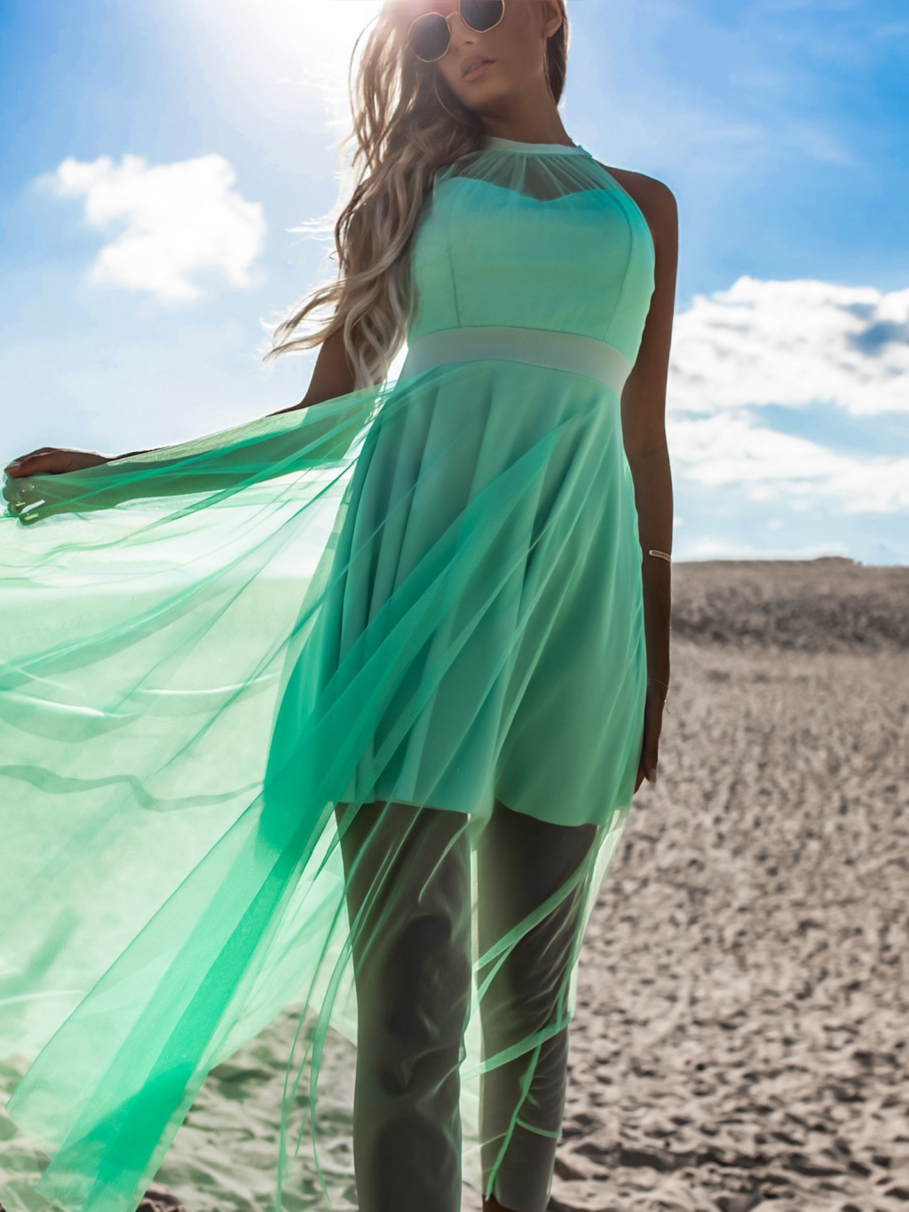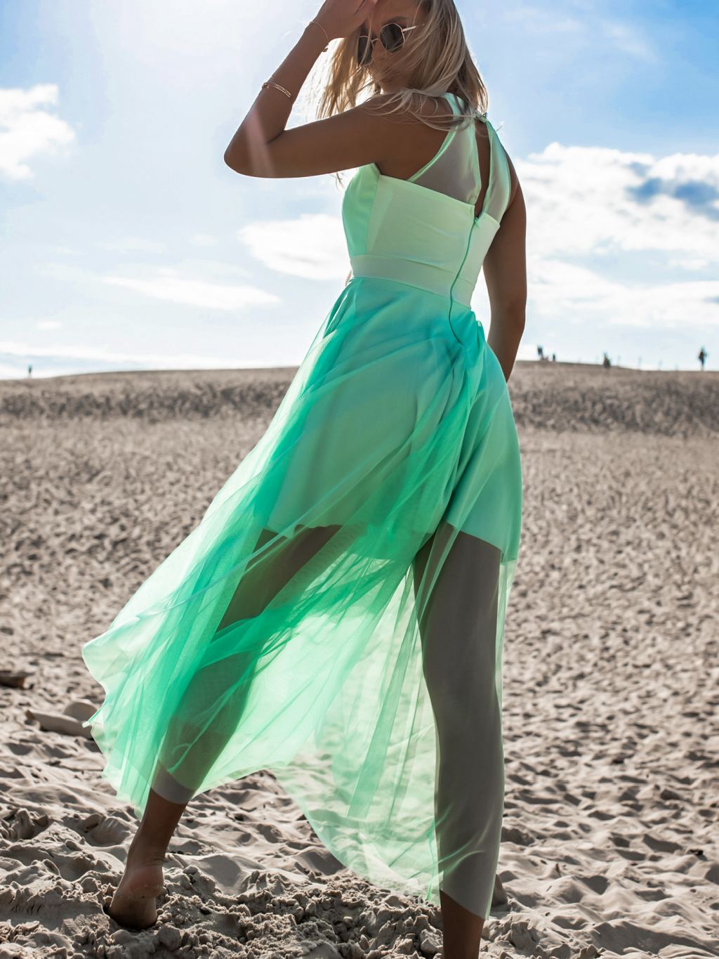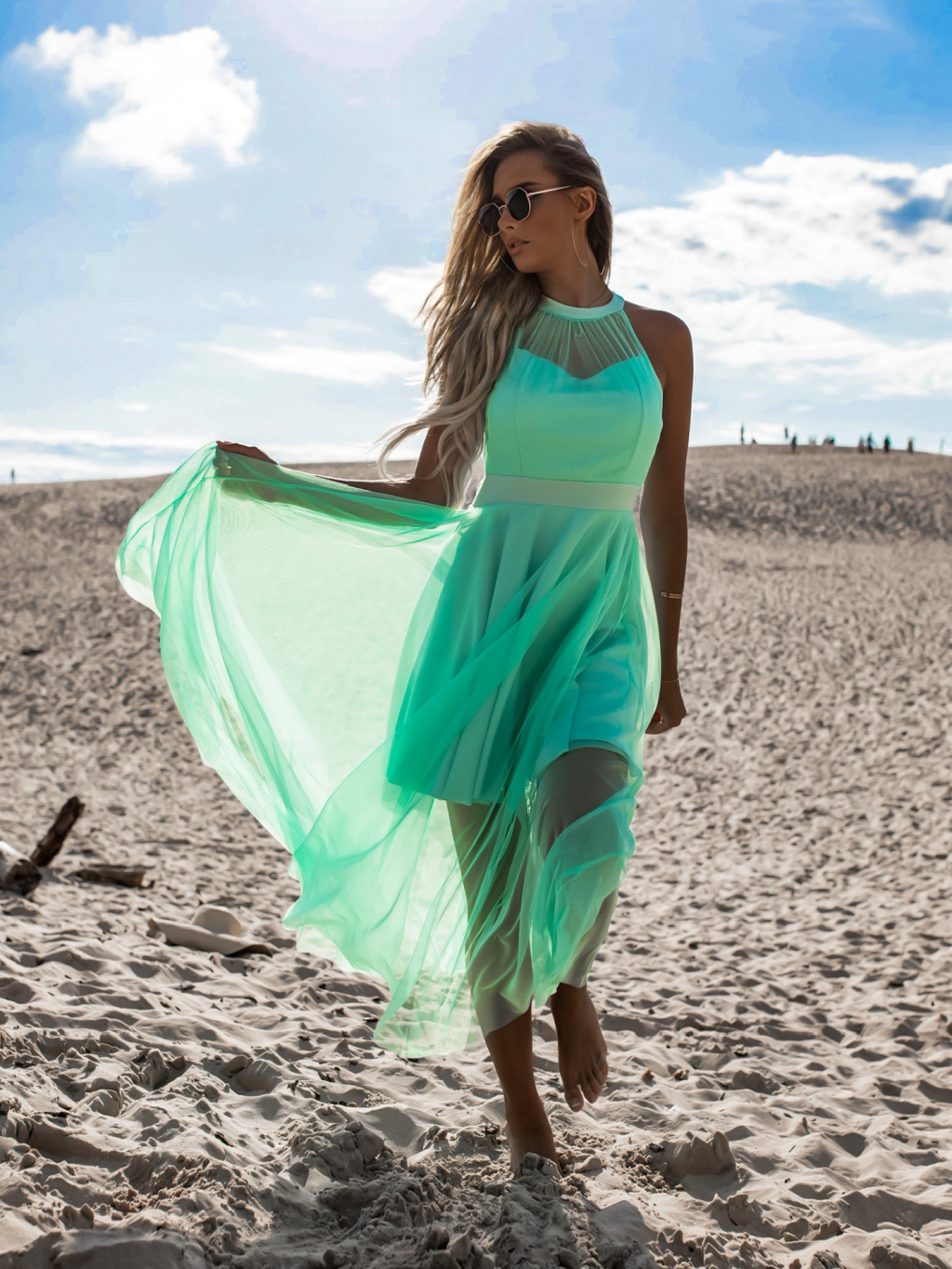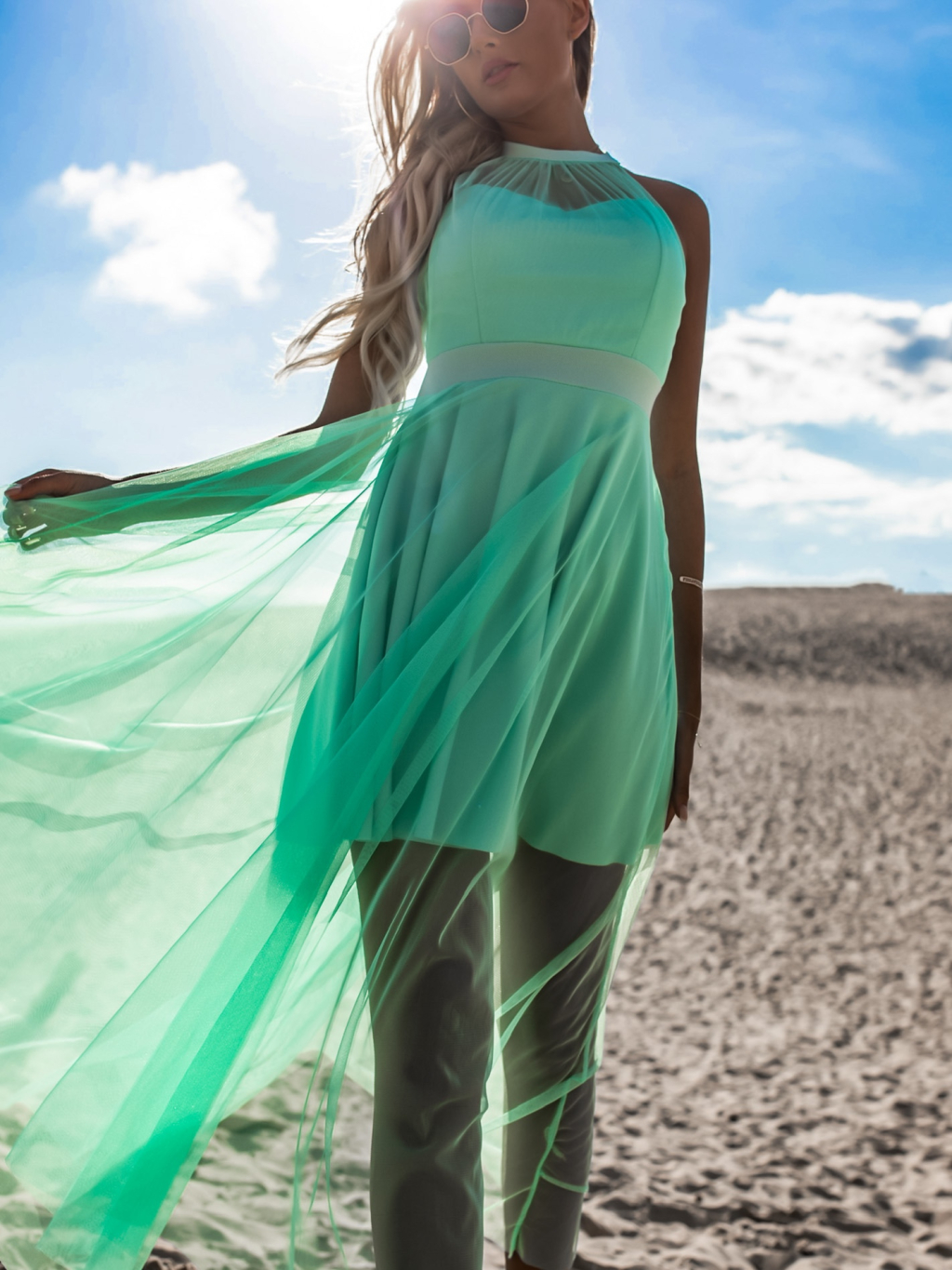 Tyrkysové dlouhé šaty CINDERELLA s tylovou sukní