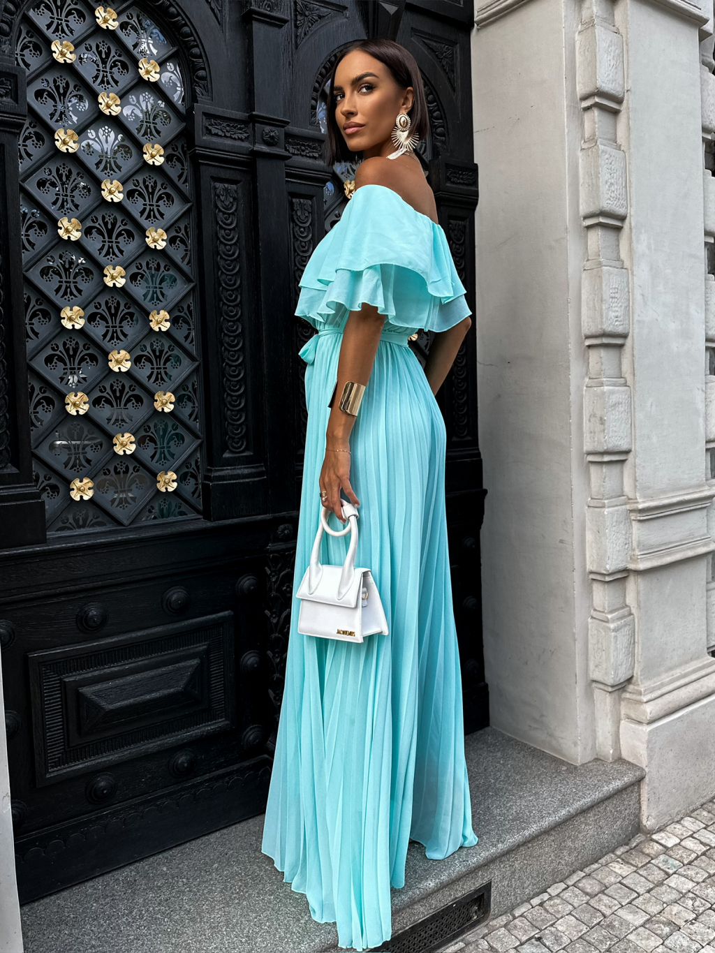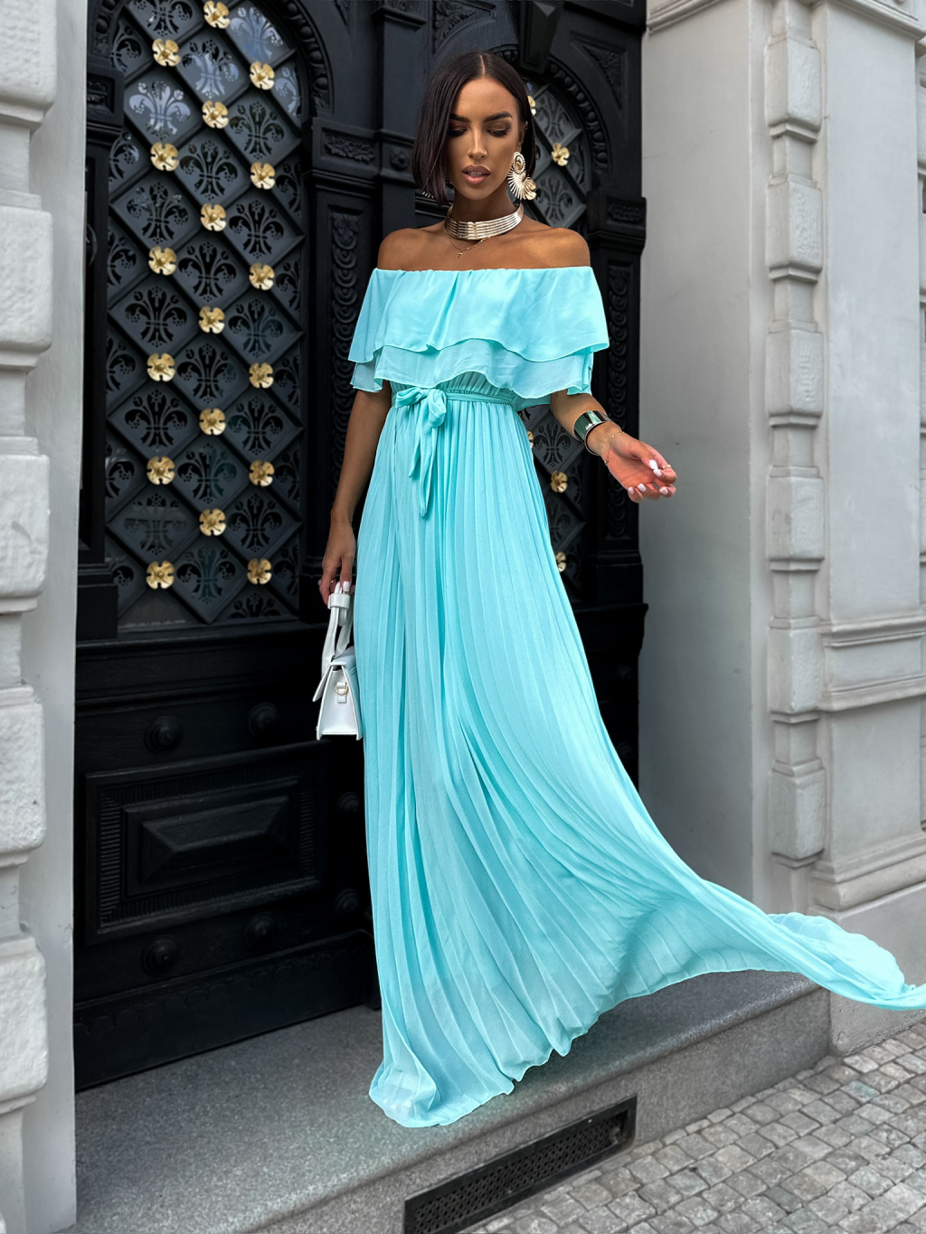 Tyrkysové dlouhé šaty GLASOUN s volánem
