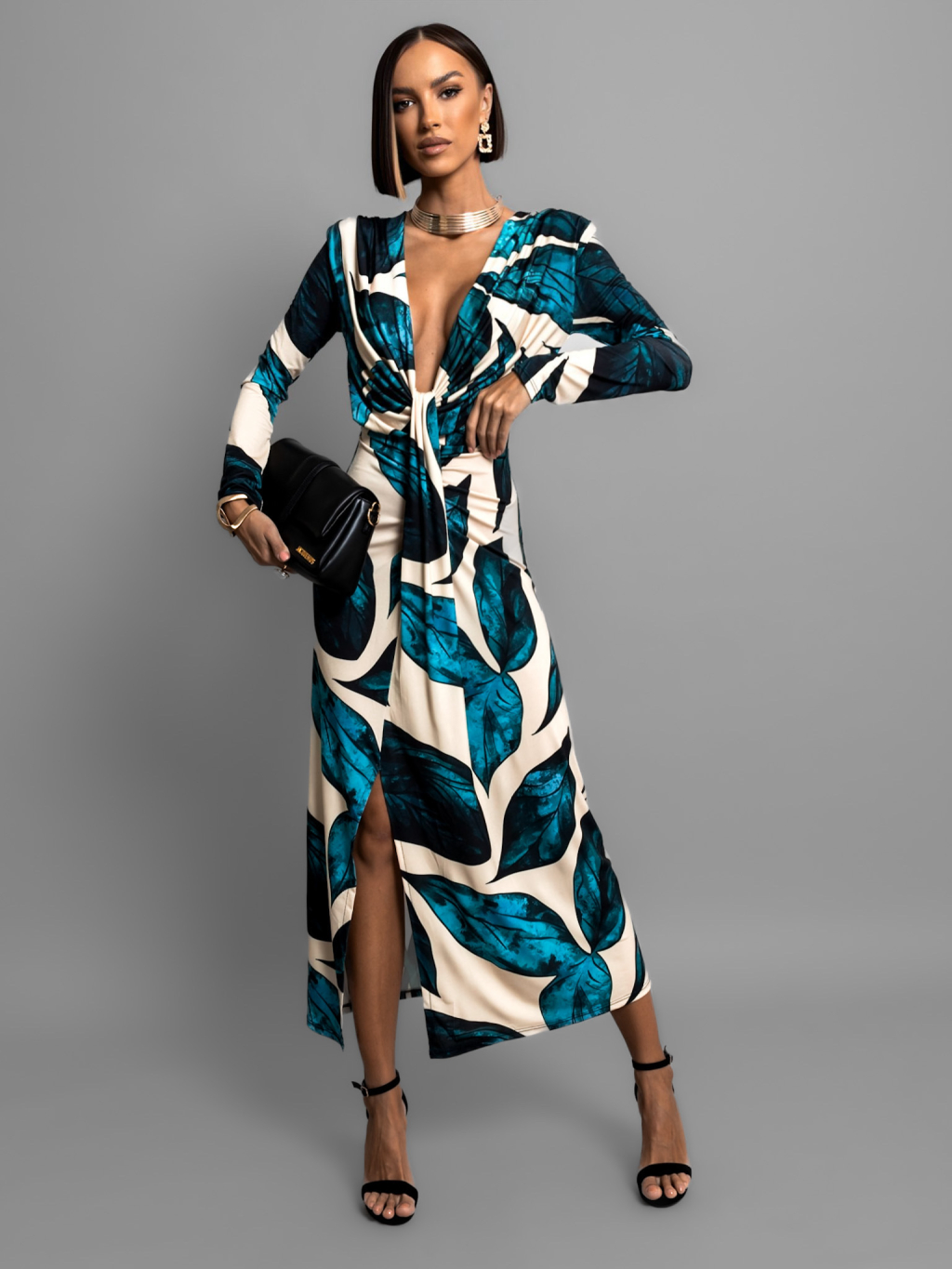 Tyrkysové elegantní šaty BOREAS s dlouhým rukávem