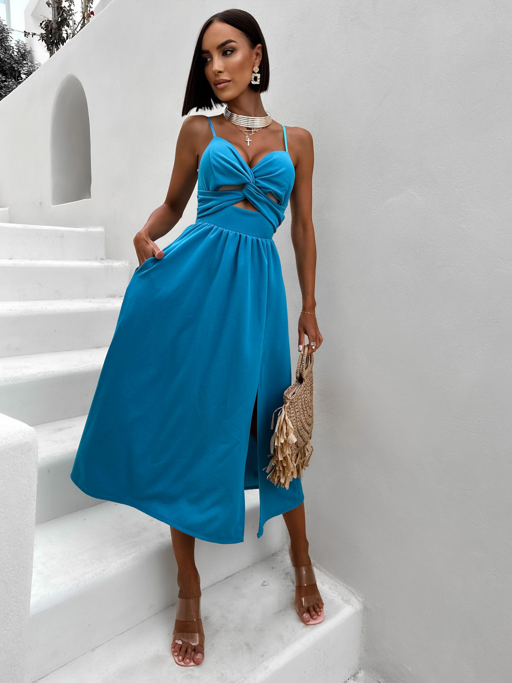 Tyrkysové elegantní šaty CALLANES s rozparkem