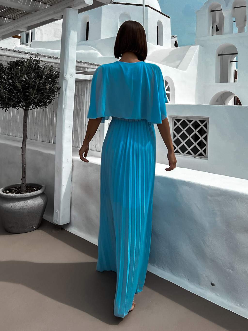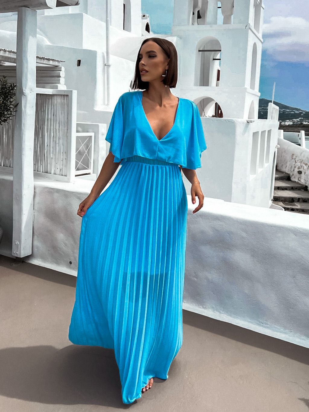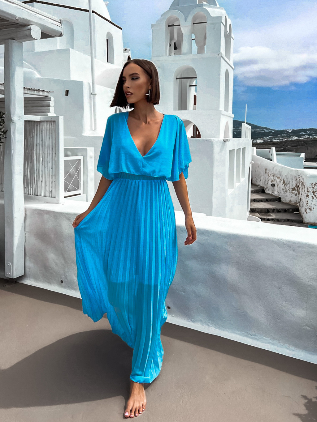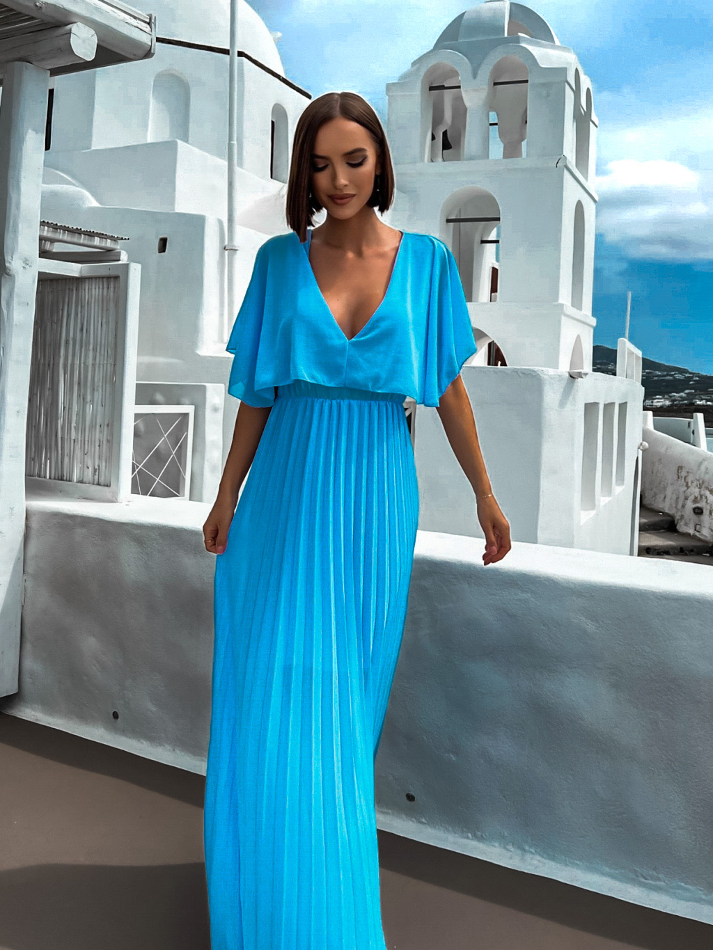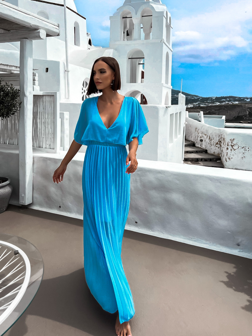 Tyrkysové elegantní šaty PARFOMELLE s výsřihem do V