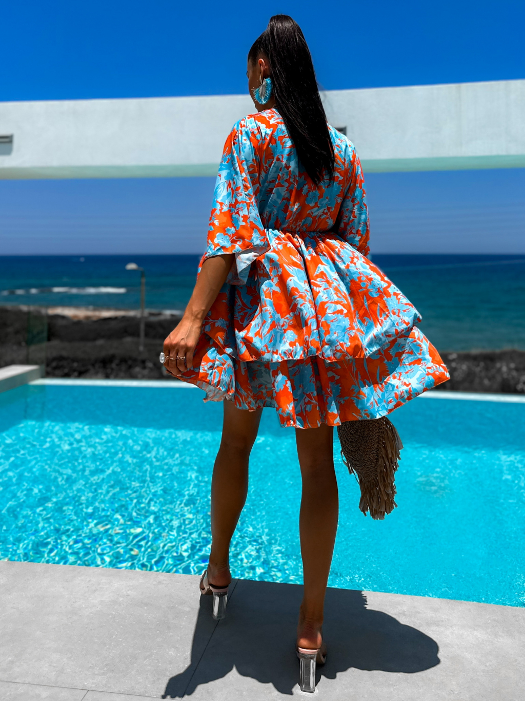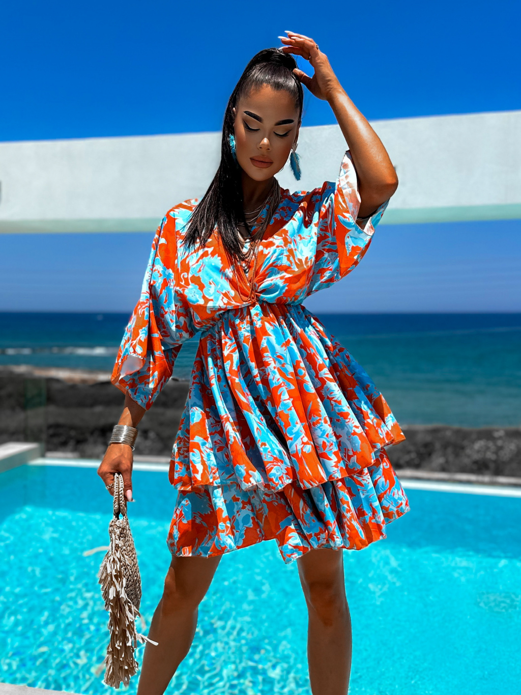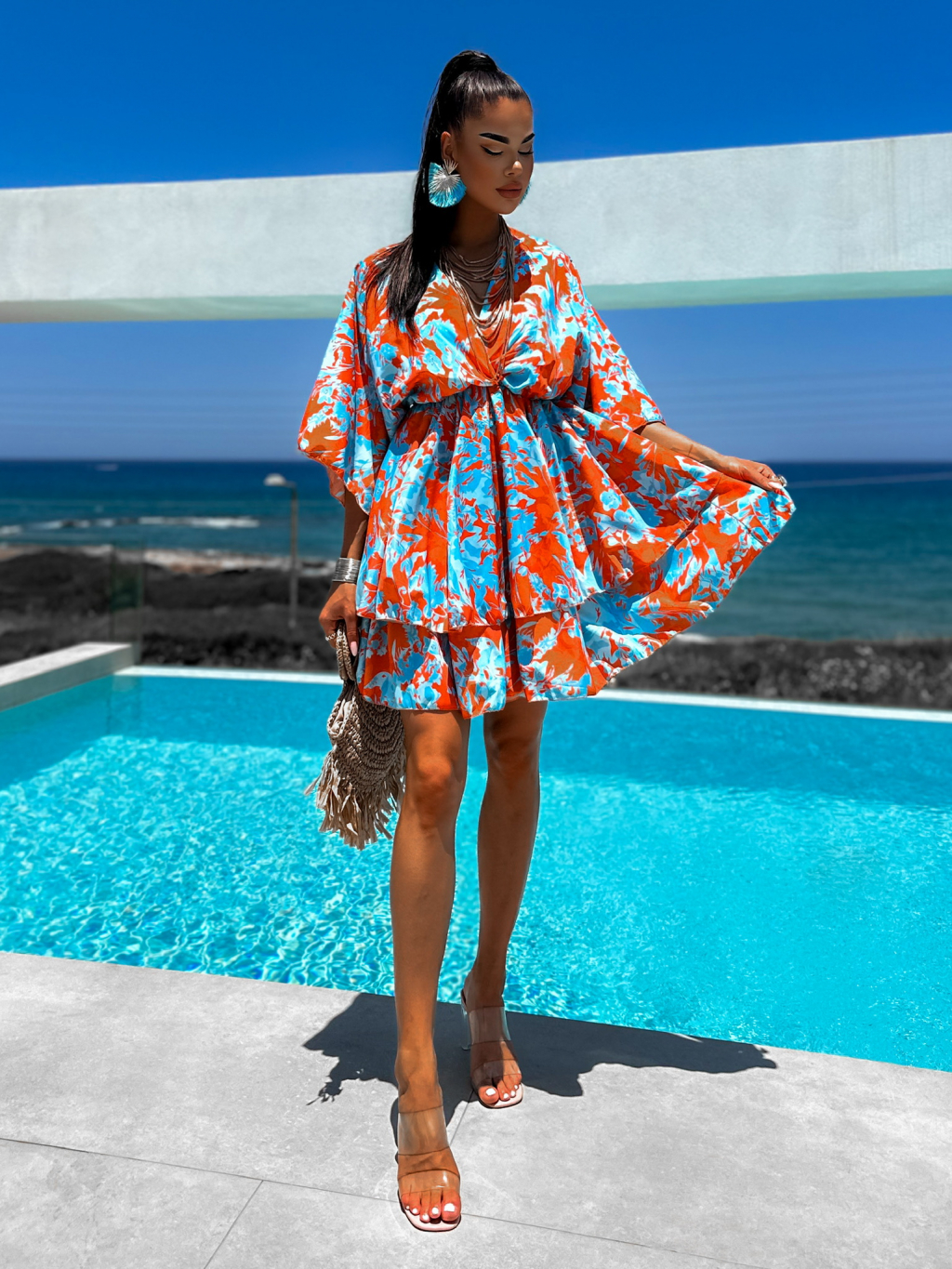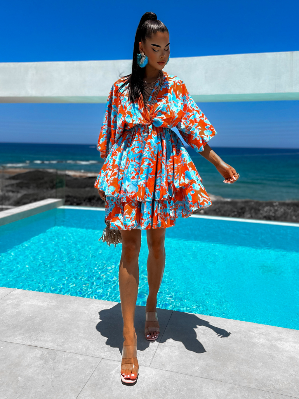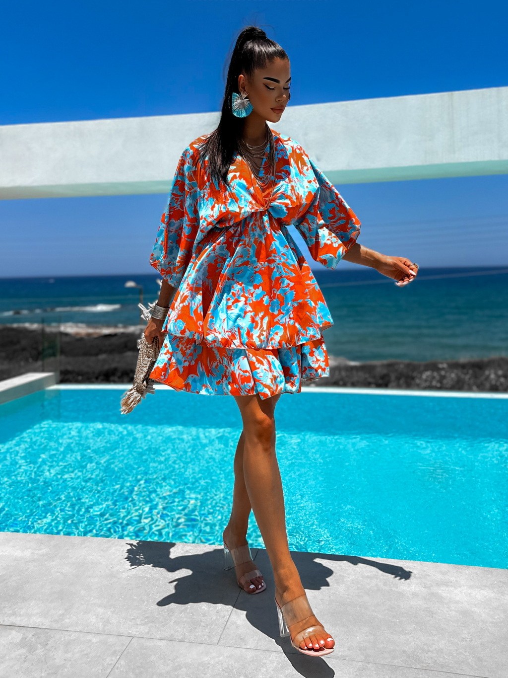 Tyrkysové elegantní šaty PHENIENI s volánky