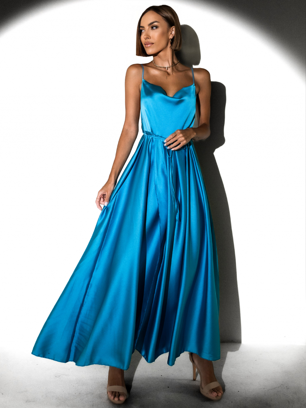 Tyrkysové elegantní šaty YASMINE s rozparkem