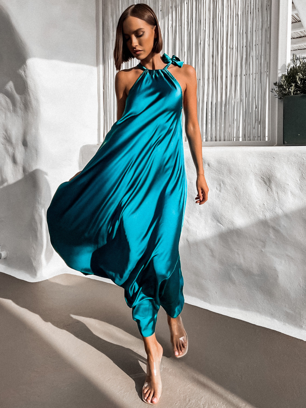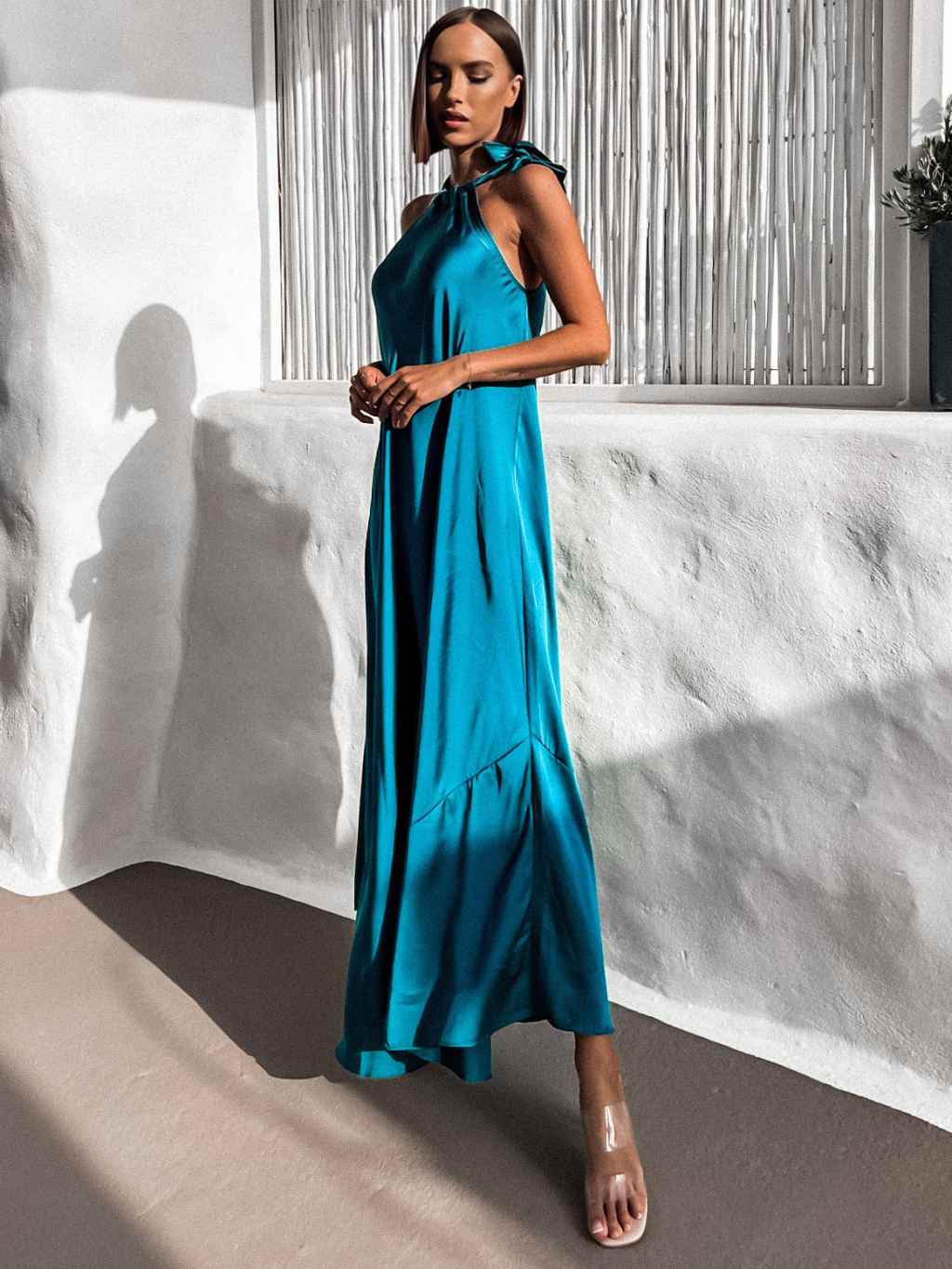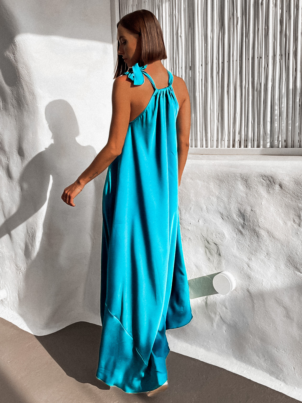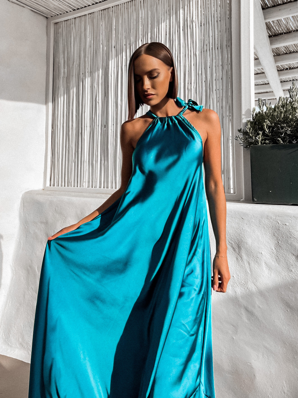 Tyrkysové lesklé elegantní šaty CORALLINE