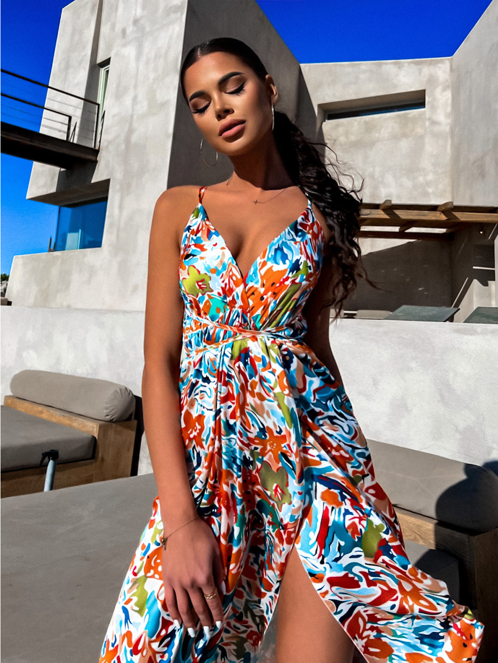 Vícebarevné elegantní šaty ARTISTIC s rozparkem
