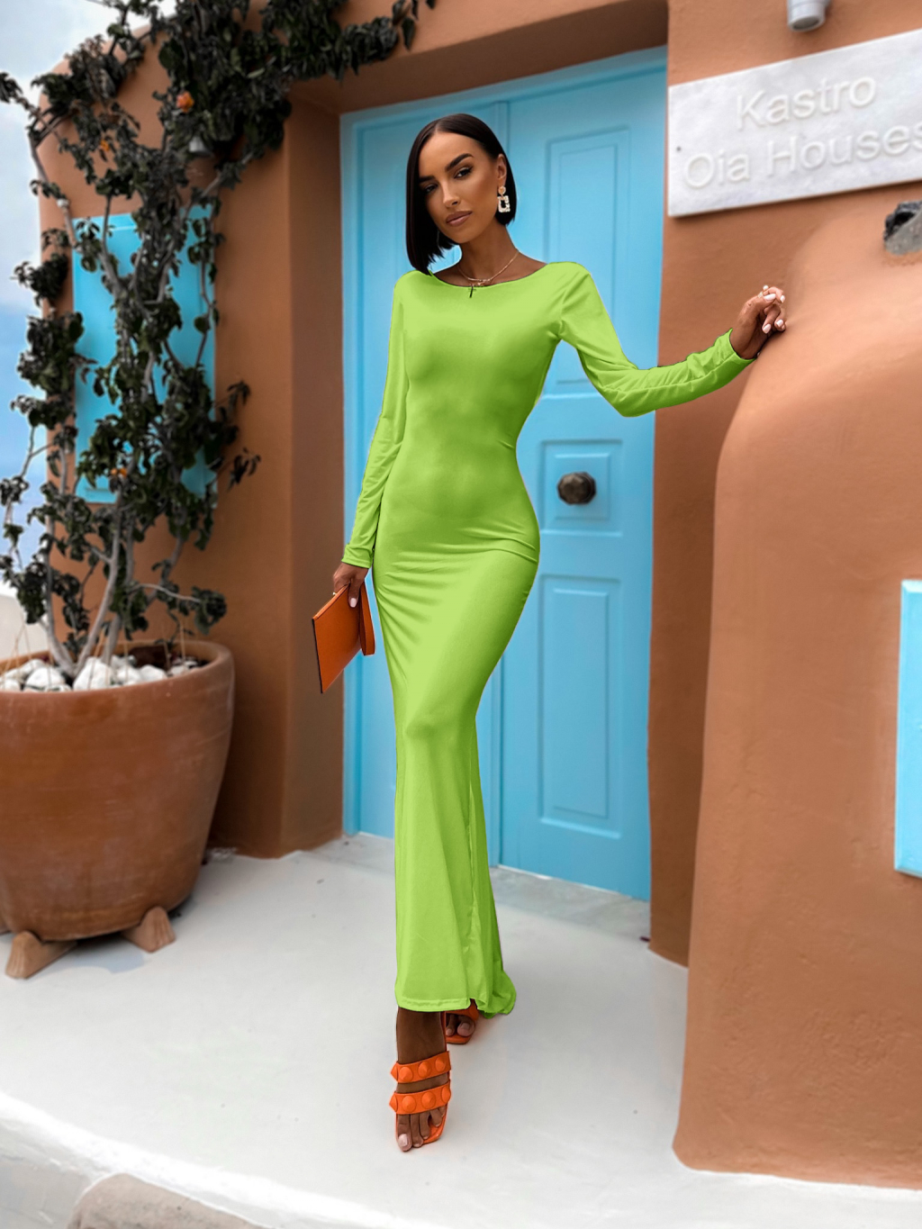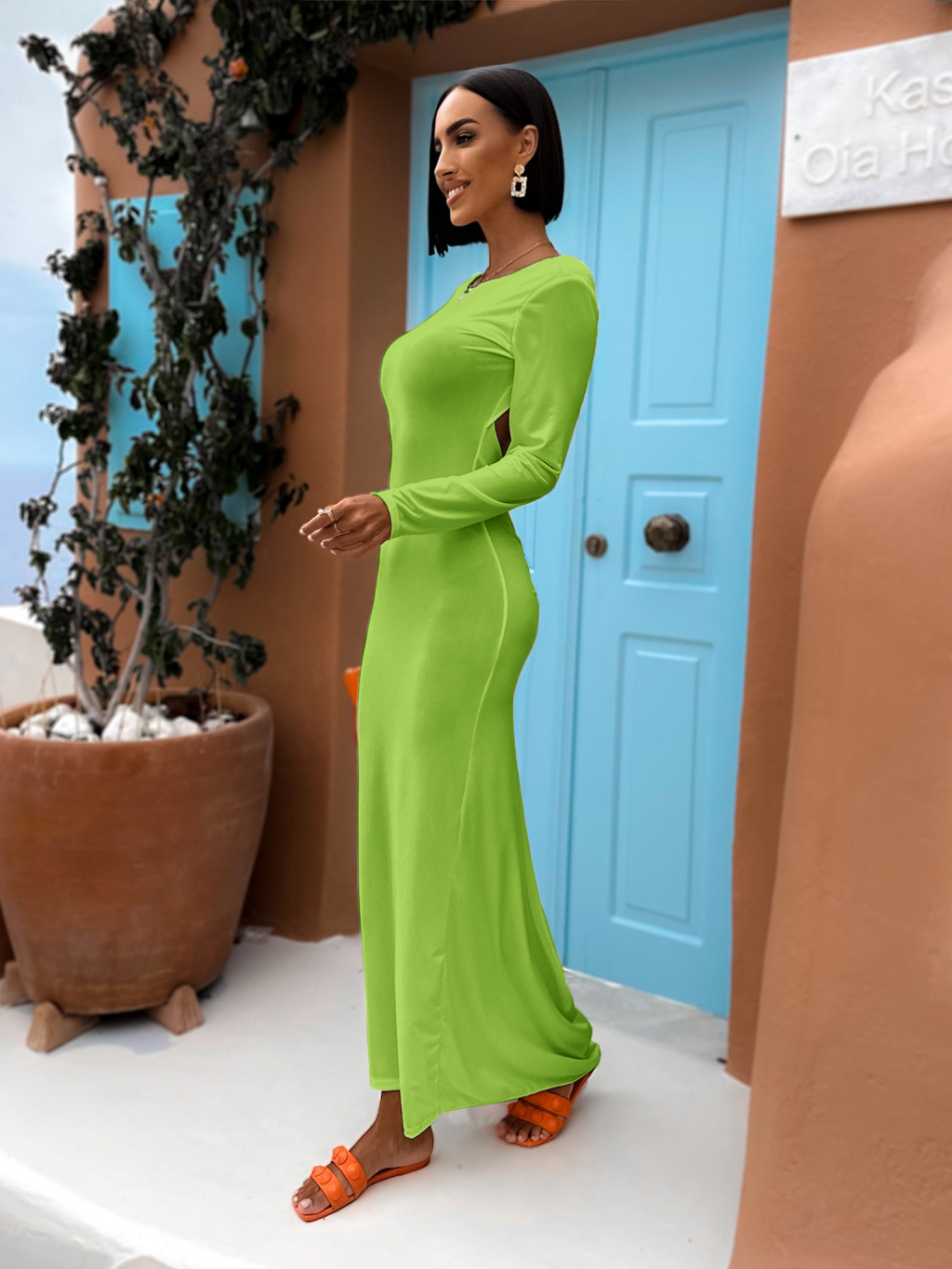 Zelené dlouhé elegantní šaty NINTENI s průstřihem na zádech