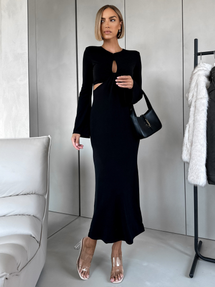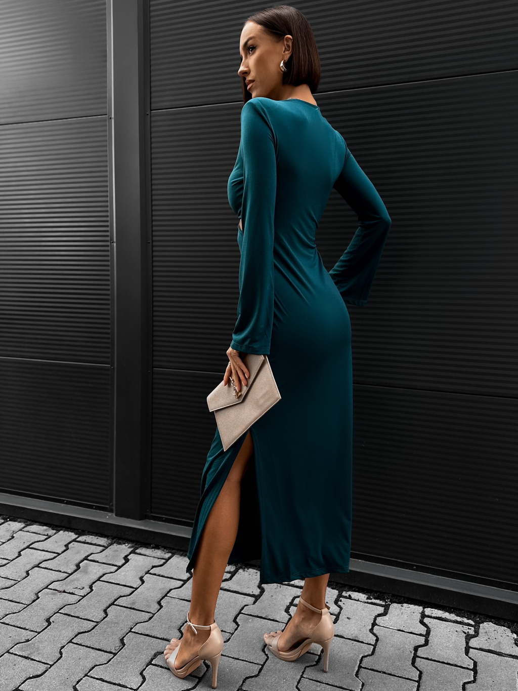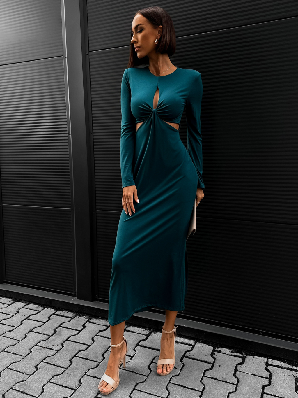 Zelené dlouhé šaty AMYNYT s průstřihy