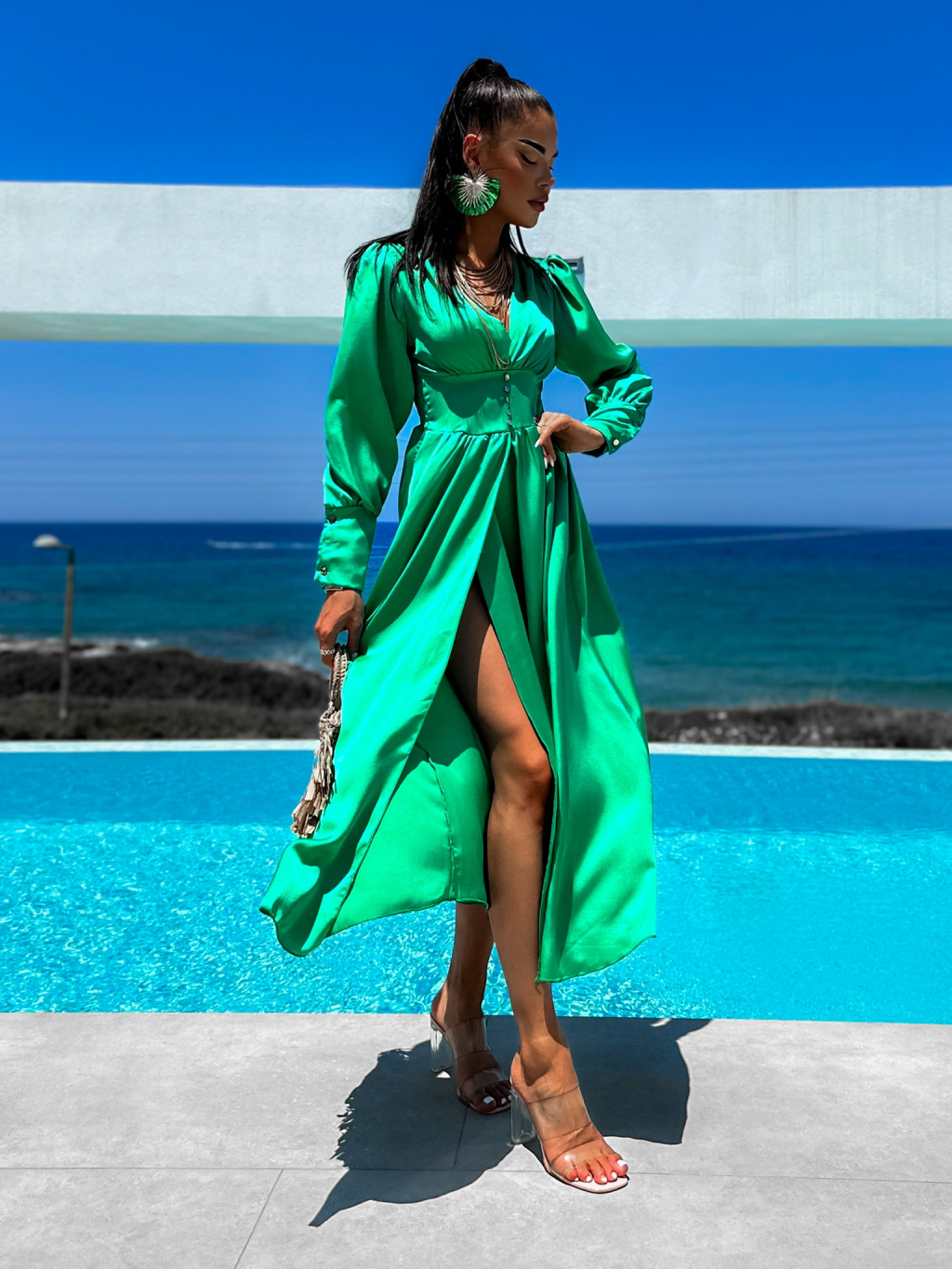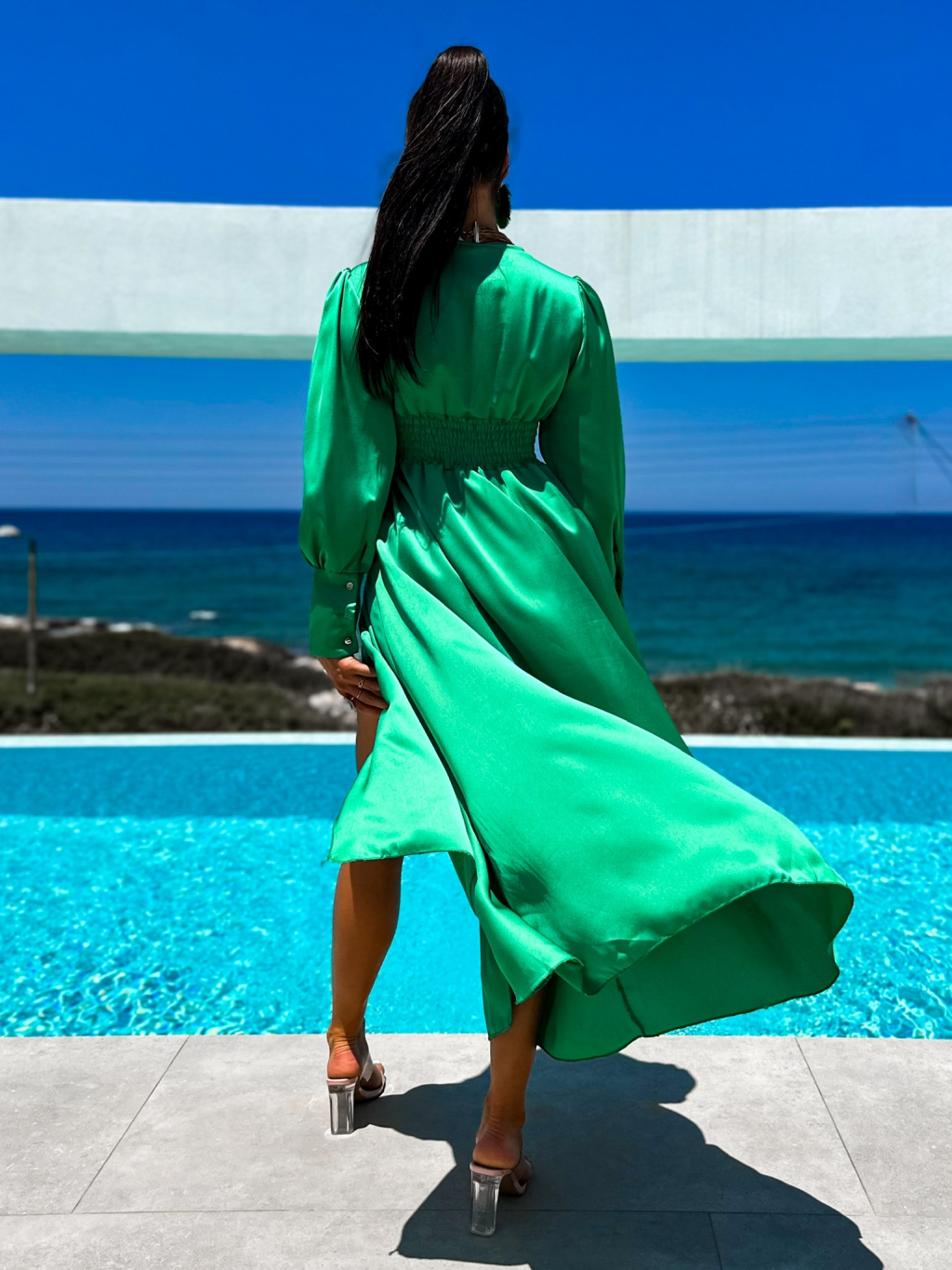Zelené dlouhé šaty FALLENS s dlouhým rukávem