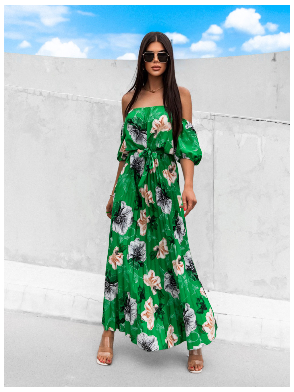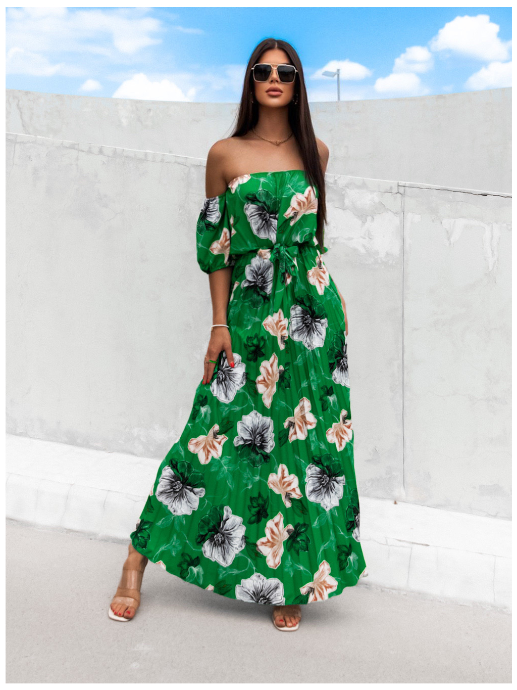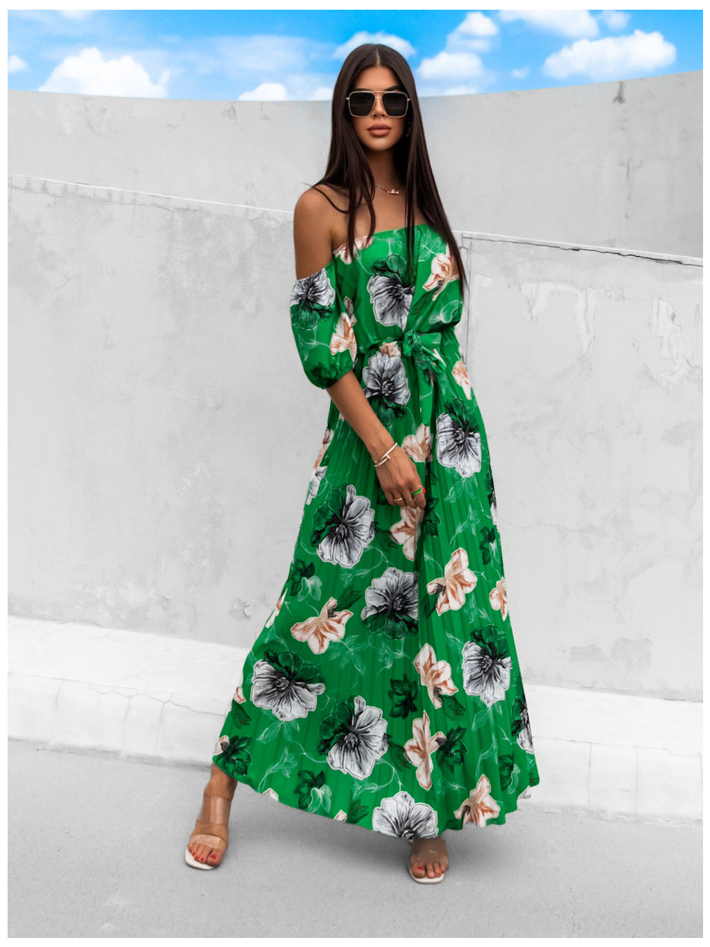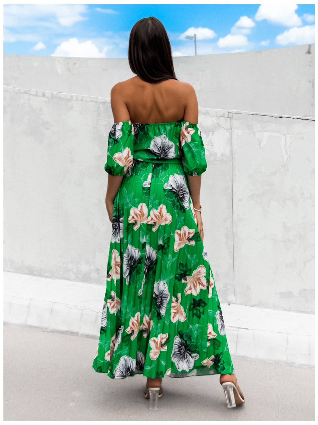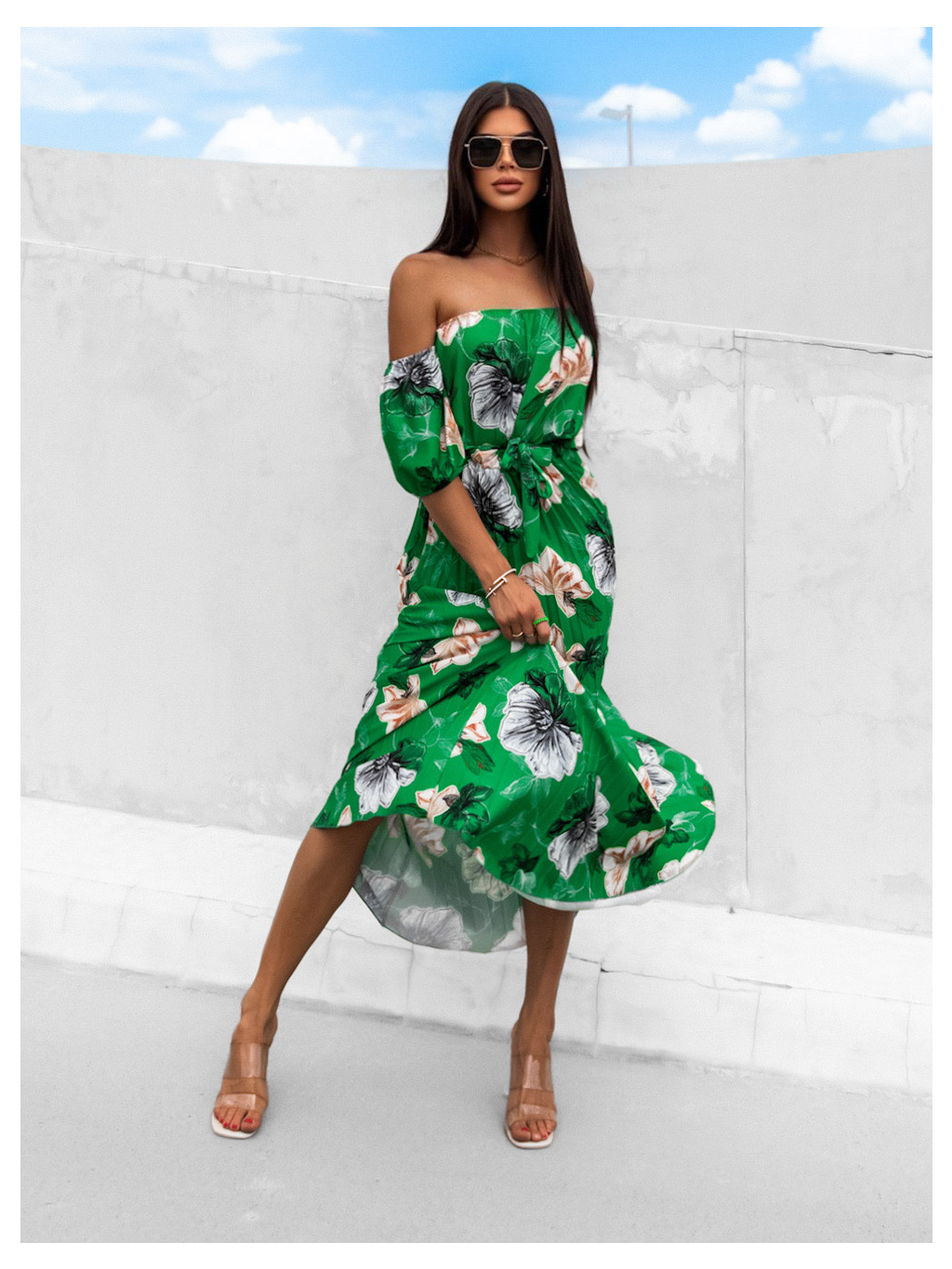 Zelené elegantní šaty AMONA s květinovým vzorem