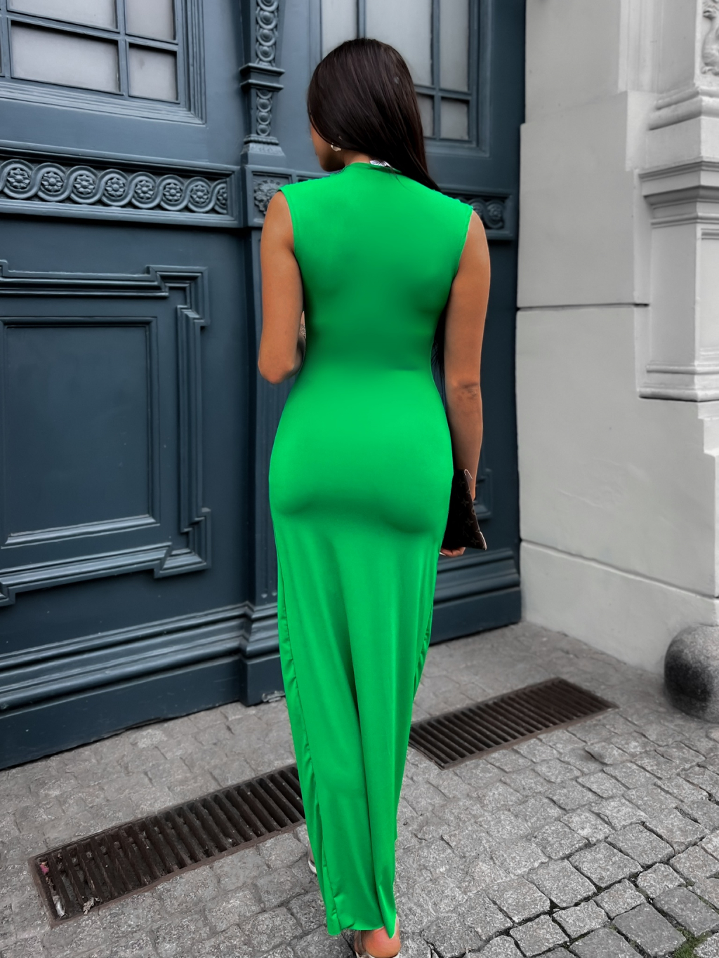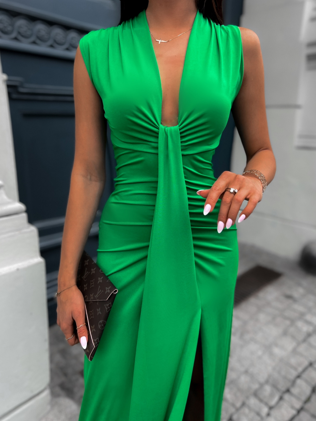Zelené jednoduché šaty ALOUSE s výstřihem do V
