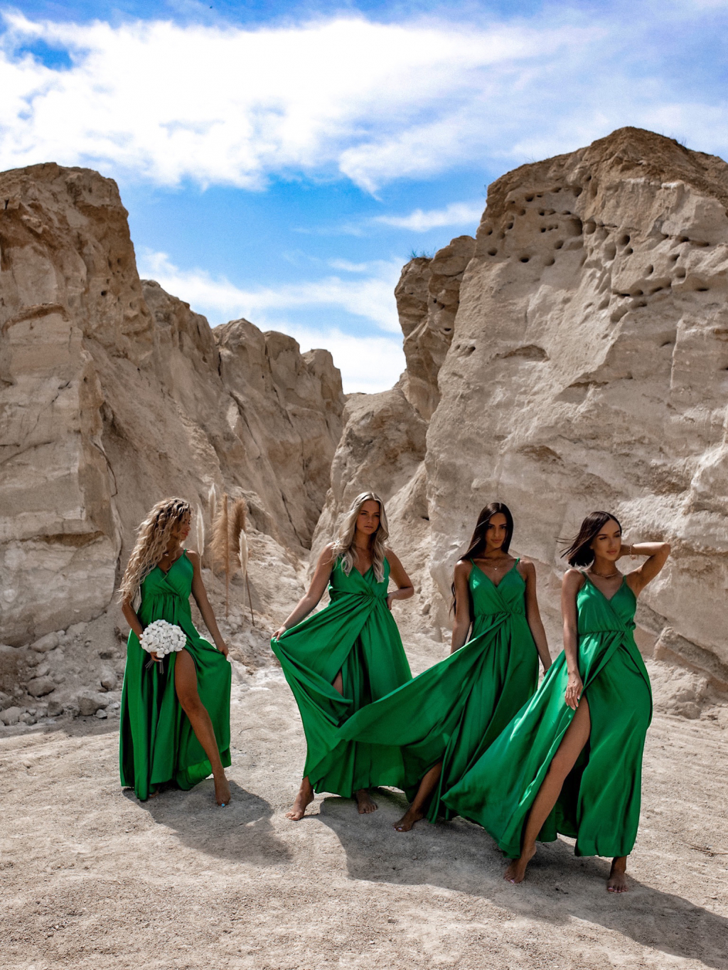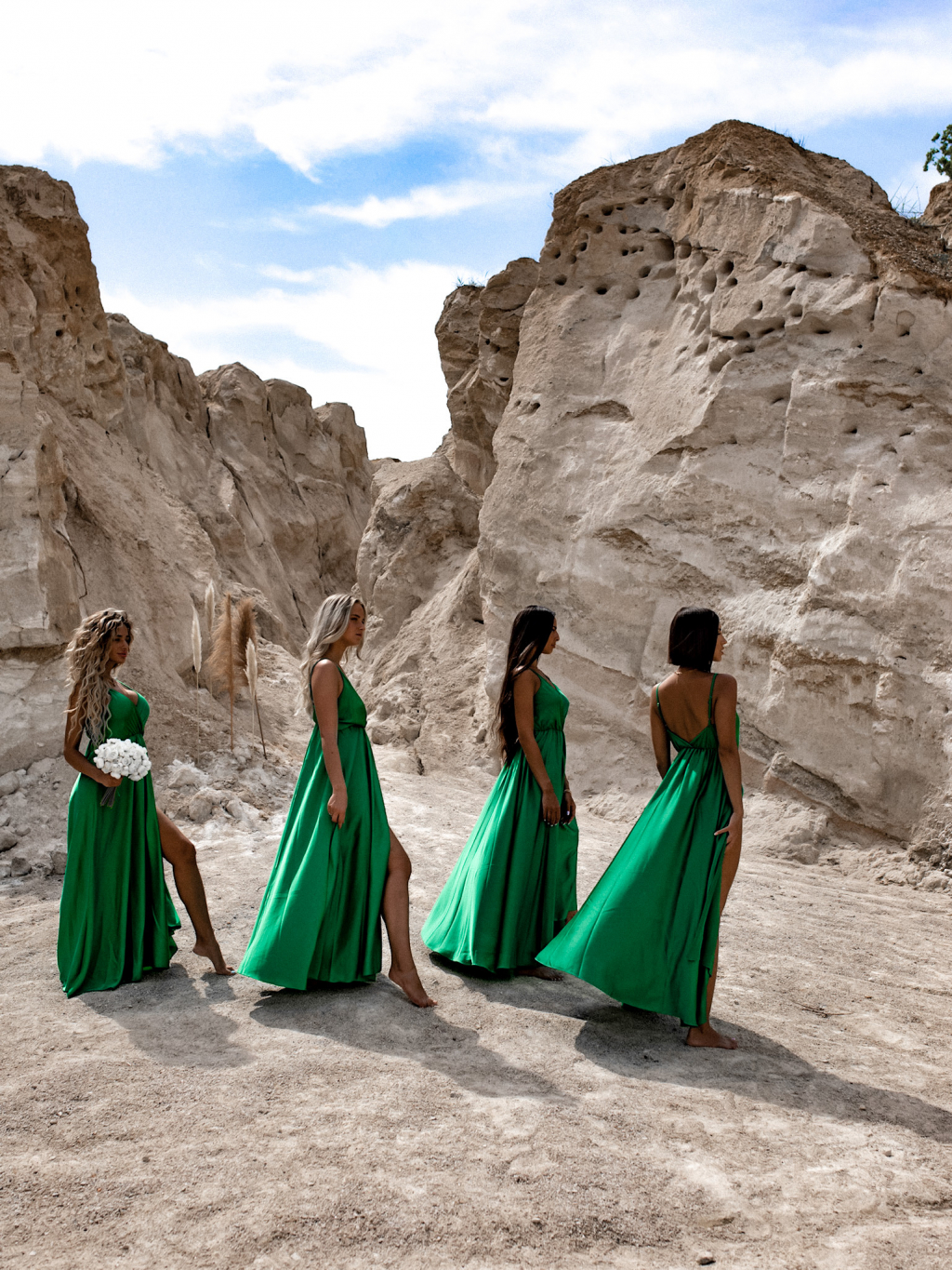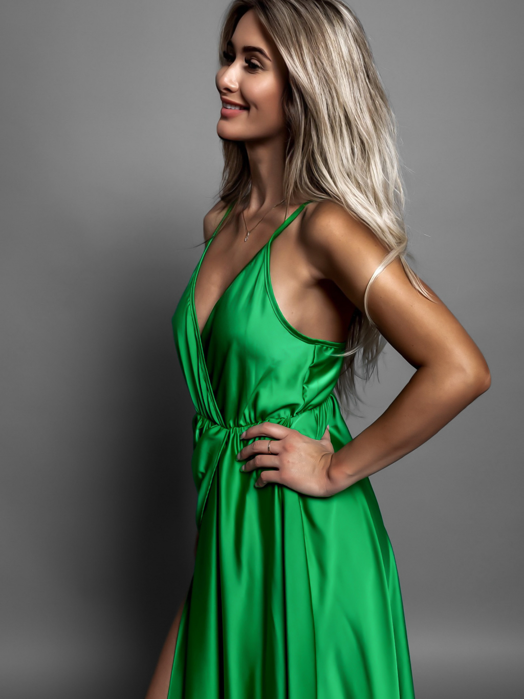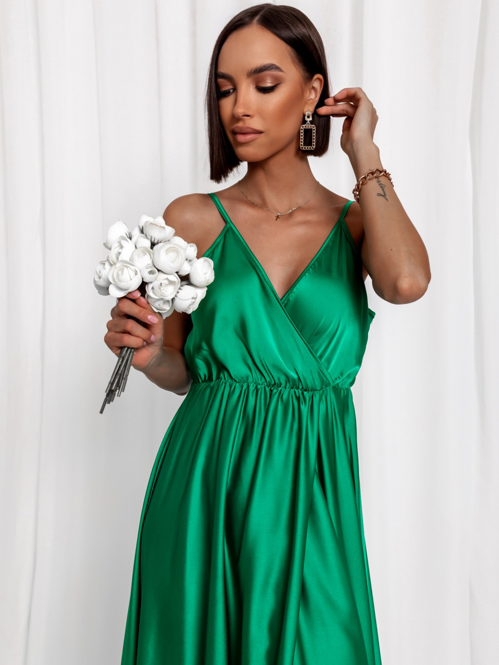 Zelené lesklé dlouhé plesové šaty CHRYSANTHE