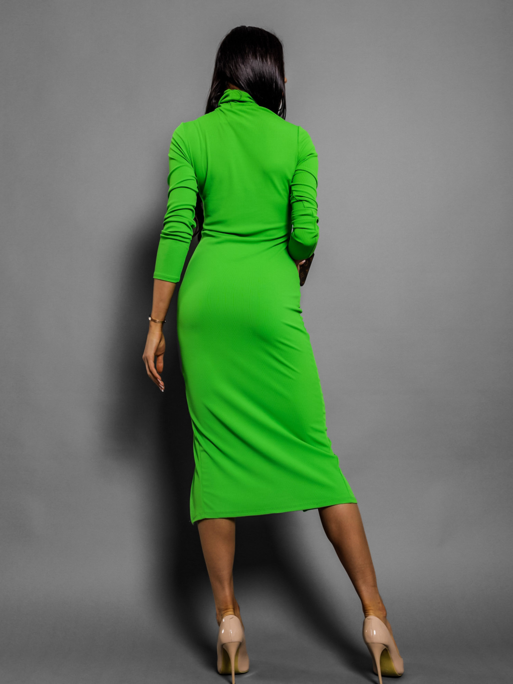 Zelené žebrované šaty NOVEL s průstřihem a dlouhými rukávy